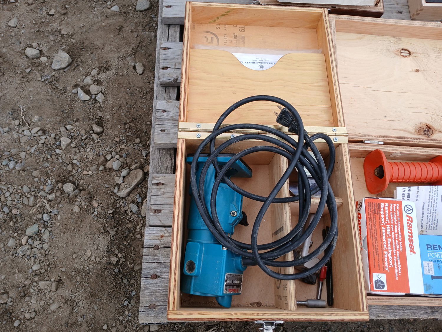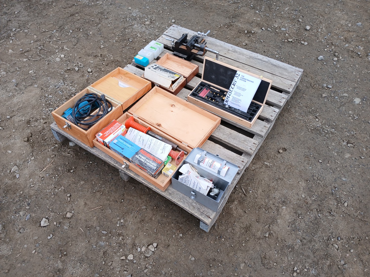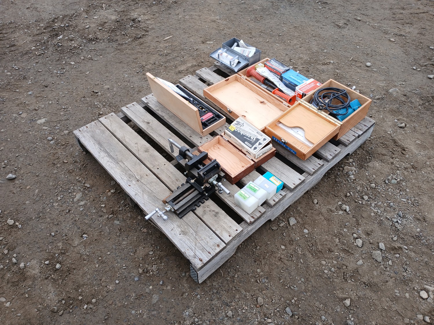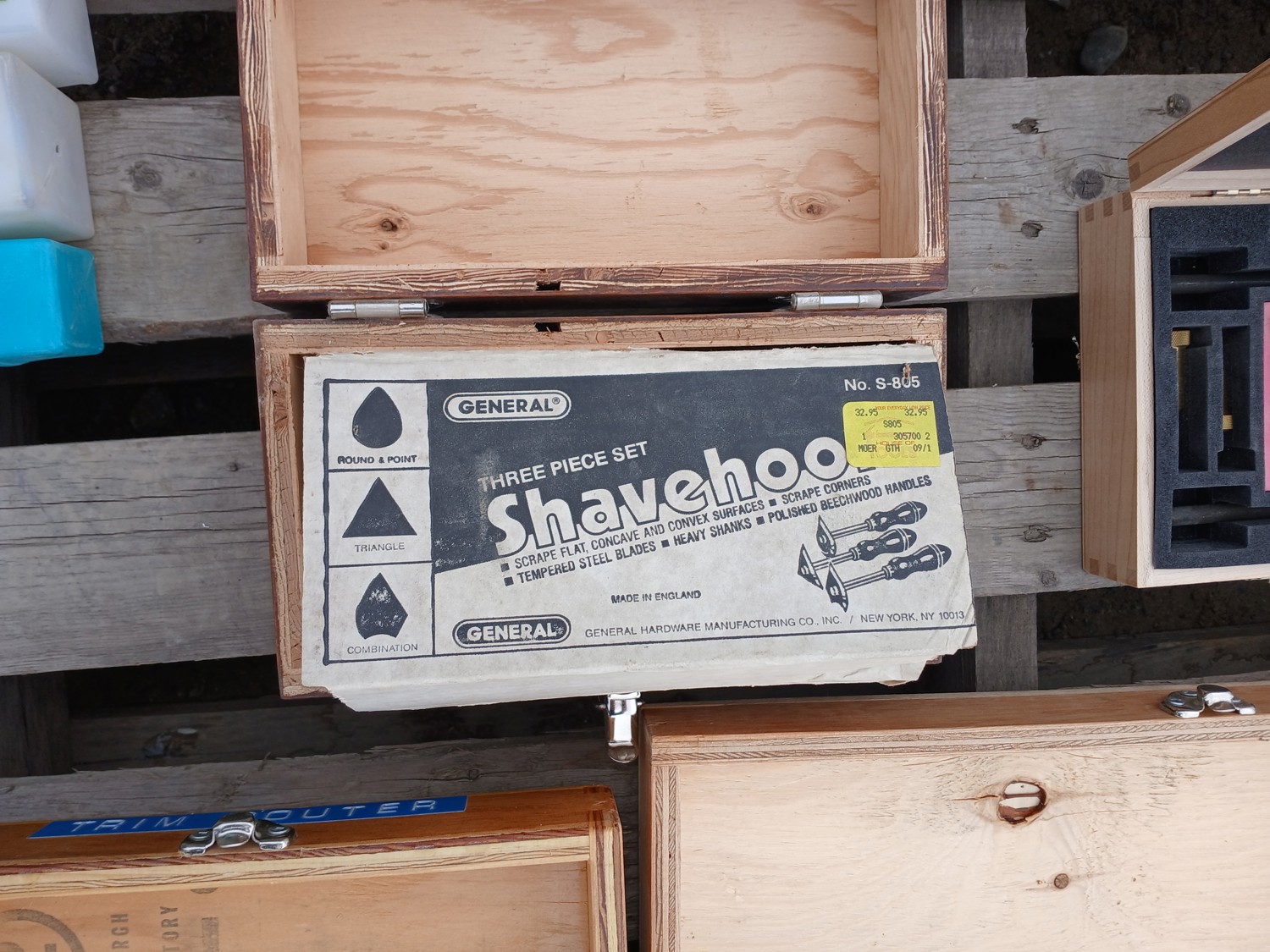 (1) 3 piece Shaver Hook set, (1) Makita 3700B Laminate Trimmer. , with numerous bits, (1) Vice, (1) Job saving tool, (1) Veritas cabinet making kit, (1) 2piece Remington power hammer set, (1) Flaring tool set.