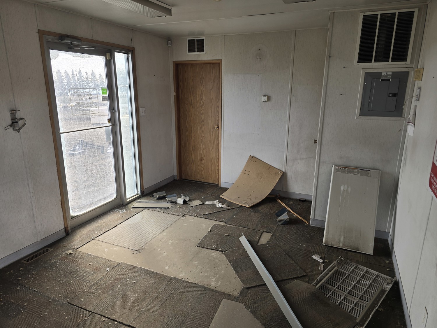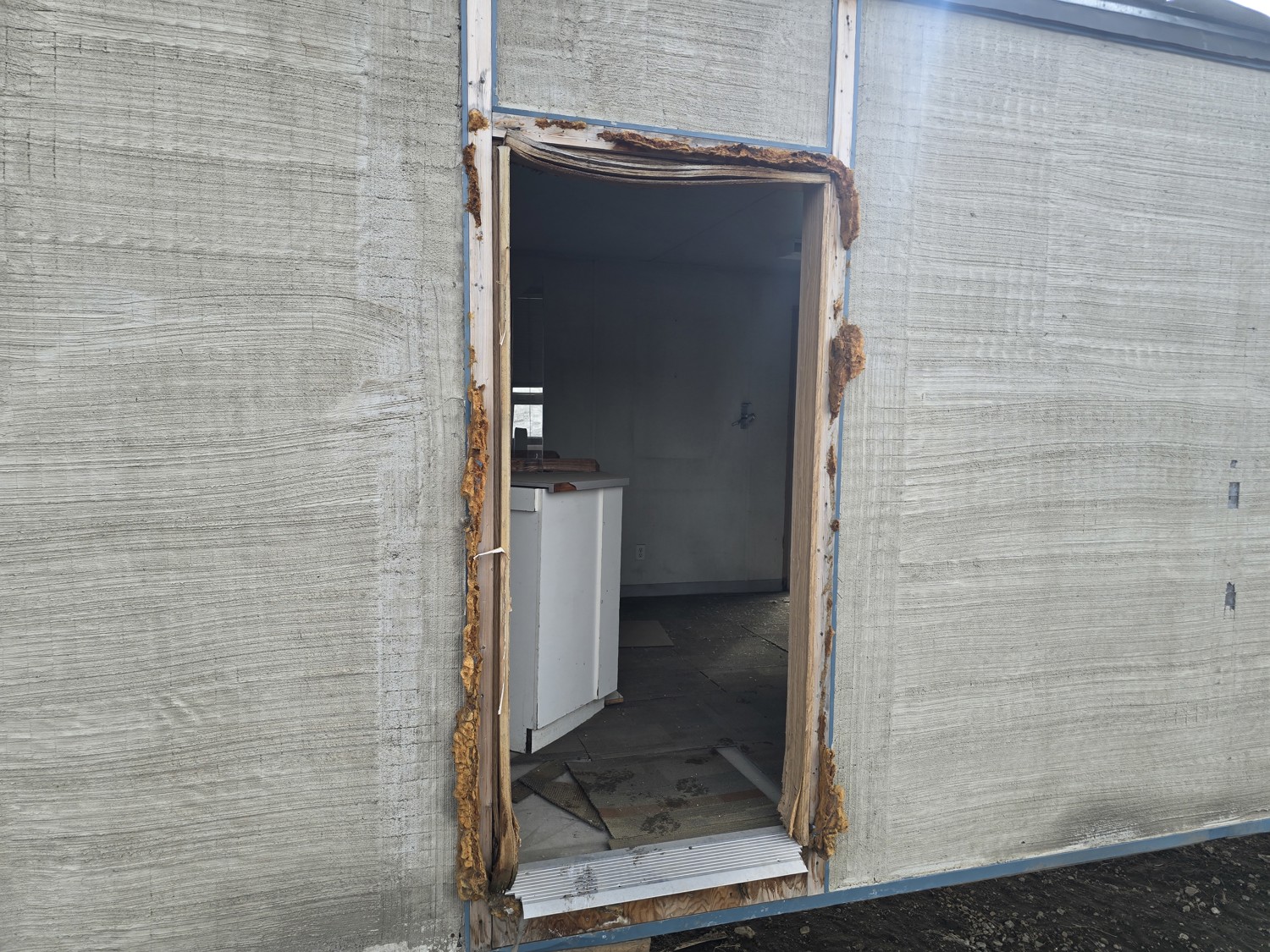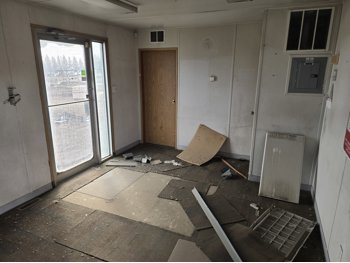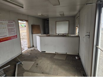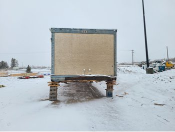The office trailer is currently on a rented trailer; the buyer will be responsible for the trailer rental costs from April 22 until final delivery.