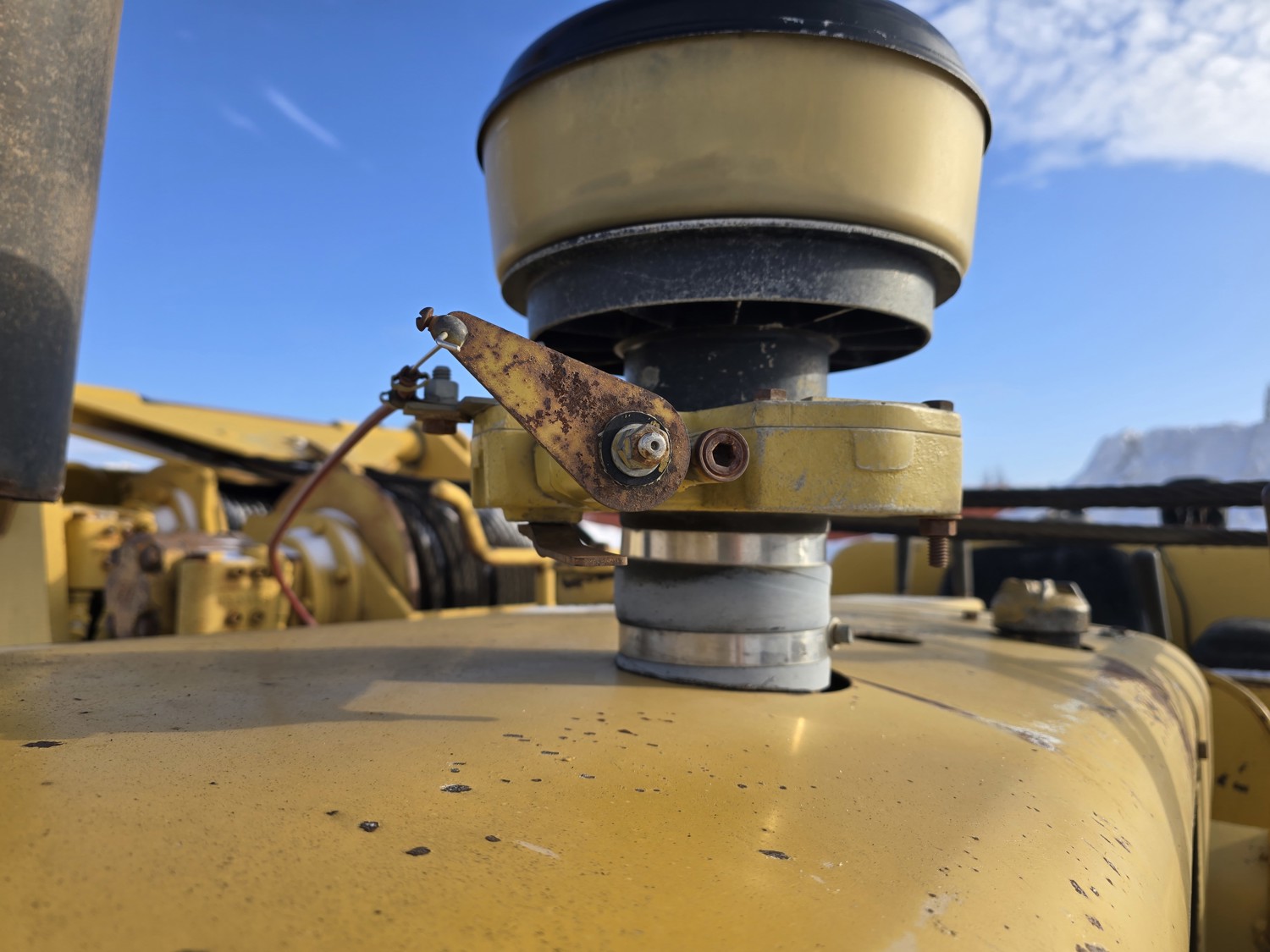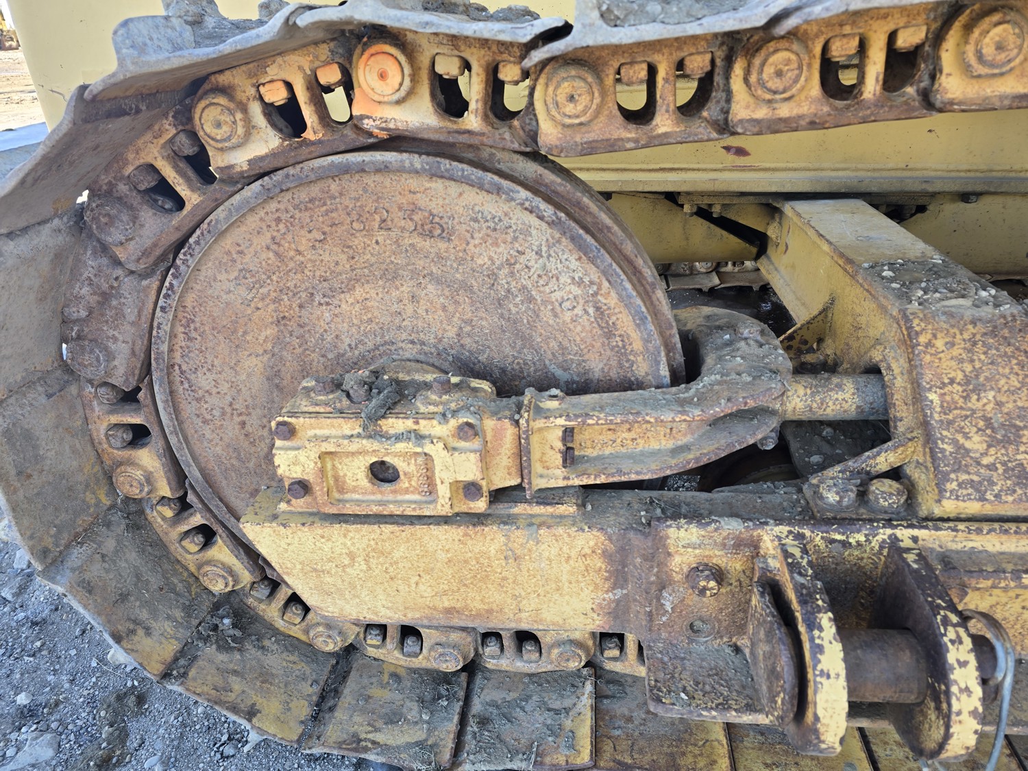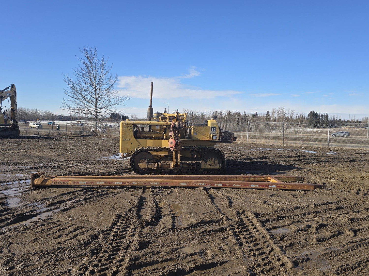 Open station, D333 diesel engine, positive air shutoff, 5 speed manual transmission, differential steering, Pull Master winch, 23 ft 6 inch boom, 18 inch track pads, single grousers, ice cleats