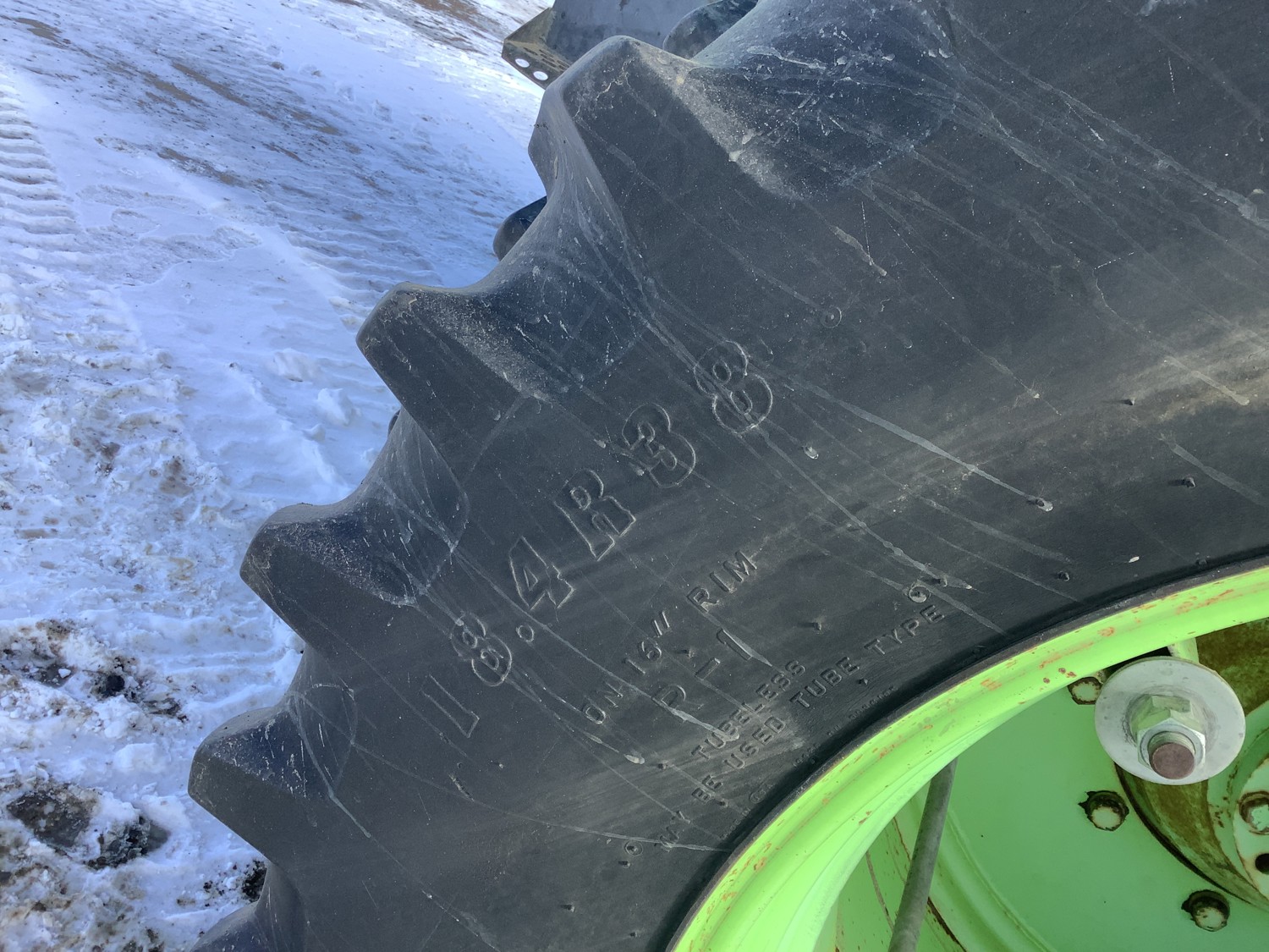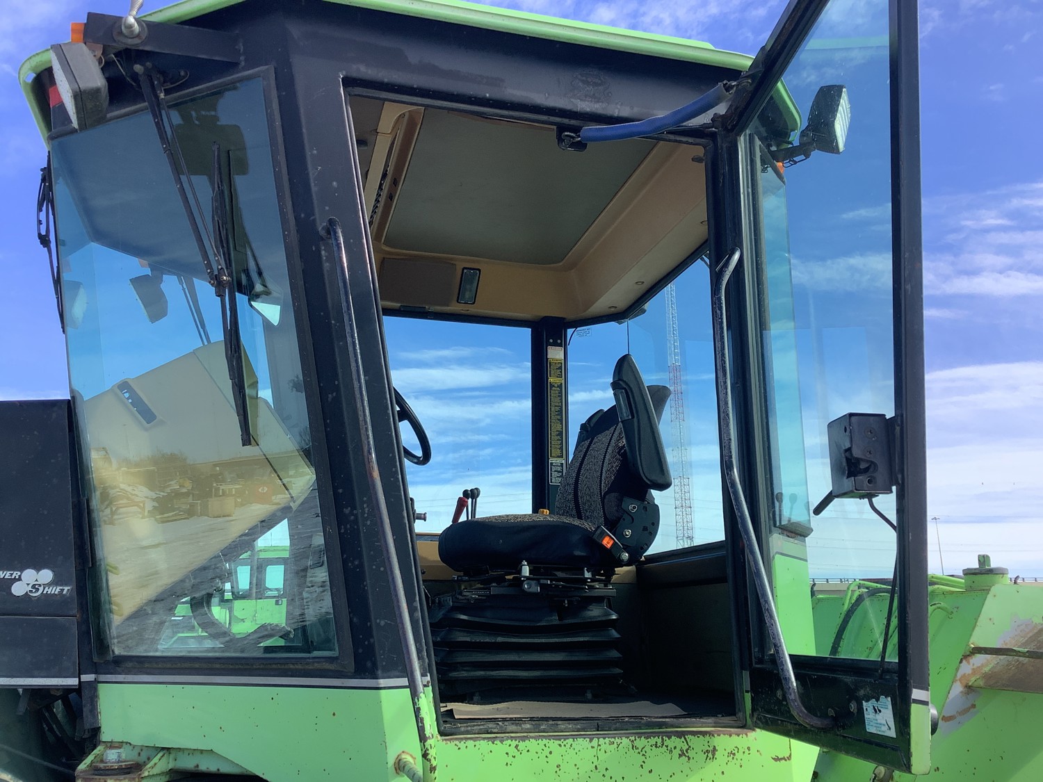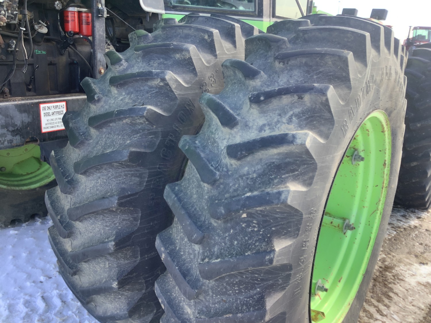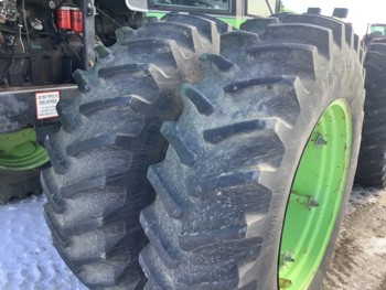 Cummins 8.3 L 6 cylinder engine, 12 speed power shift transmission, cab, A/C, radio, 1000 PTO, 3 rear hydraulic outlets, 18.4X38 tires, factory duals
