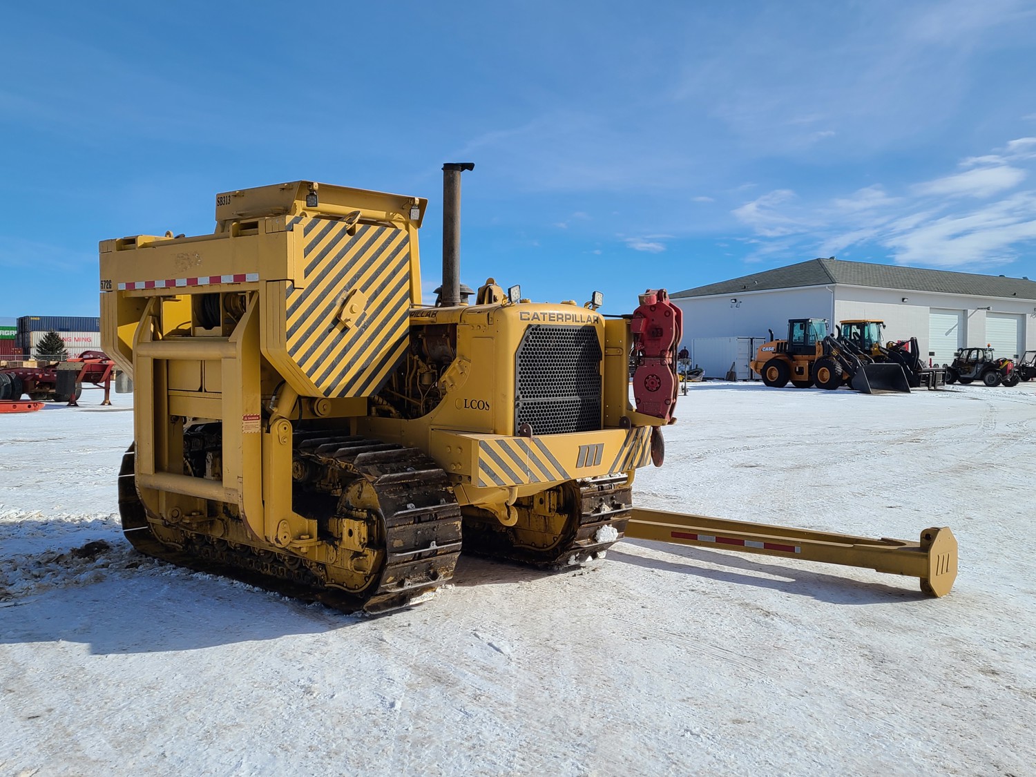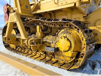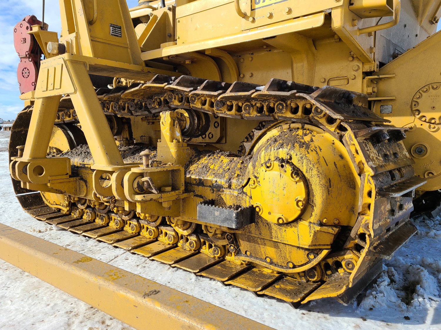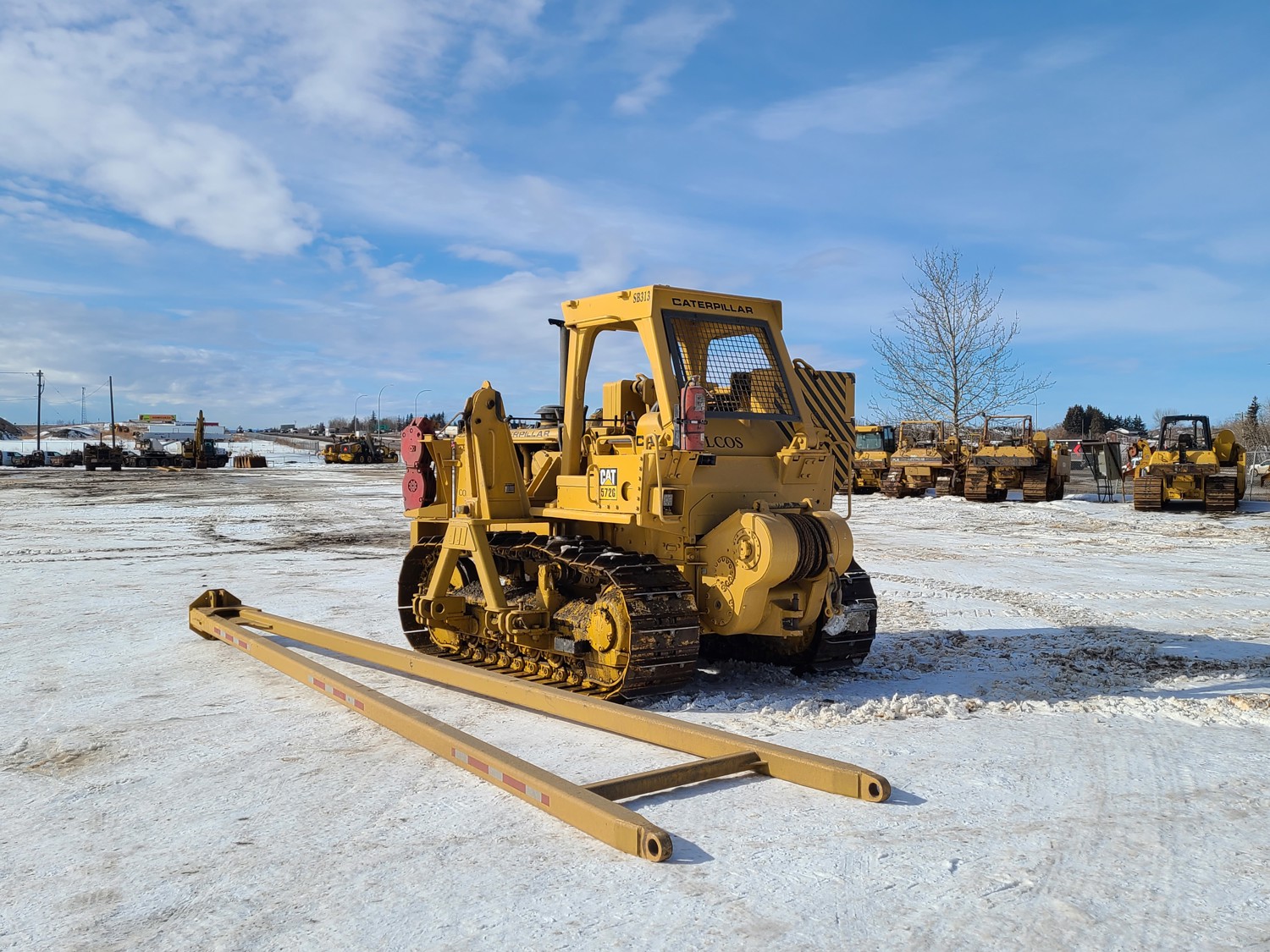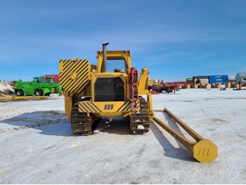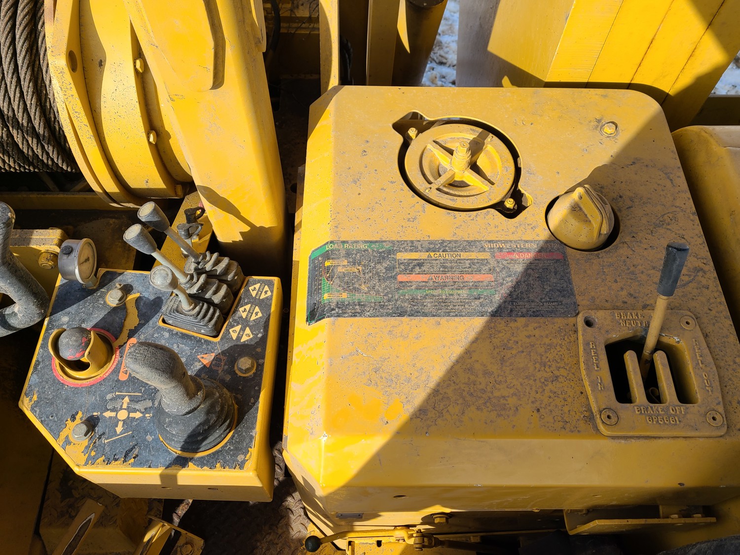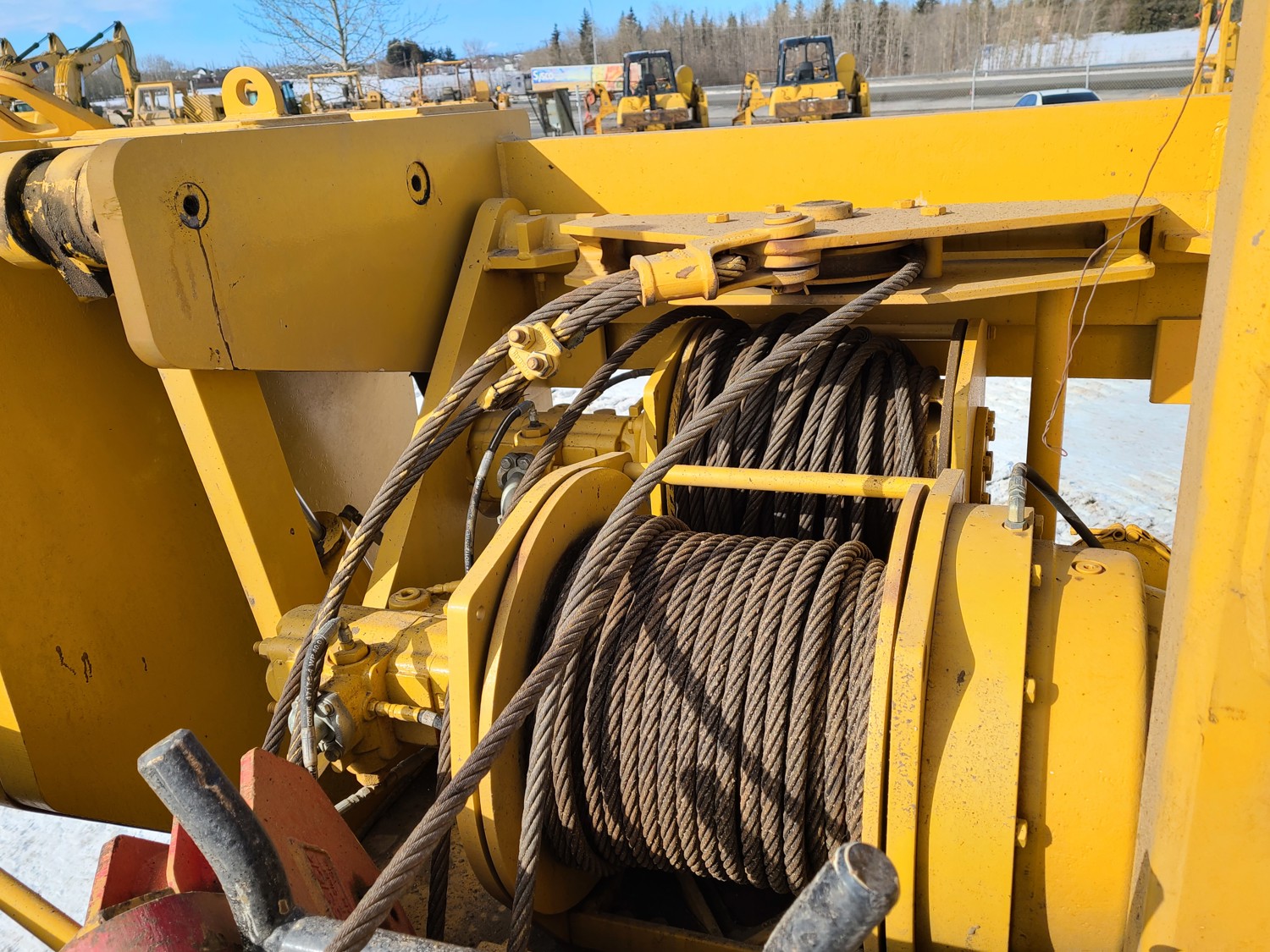 Open station, 3306 diesel engine, positive air shutoff, electric circulating block heater, 3 speed power shift transmission, differential steering, 28.5 ft boom, Braden winch, 26 inch track pads, single grousers, ice cleats