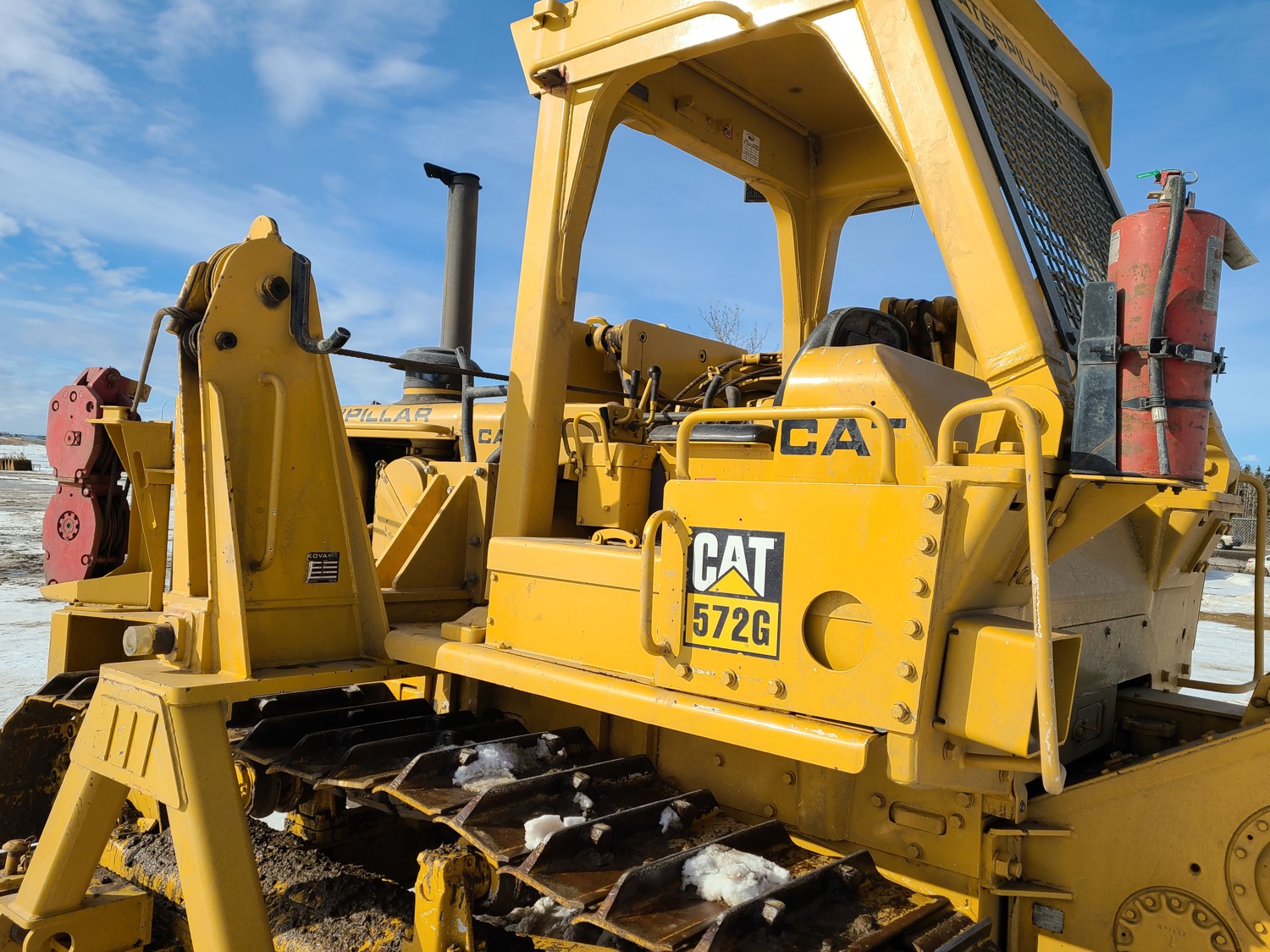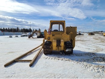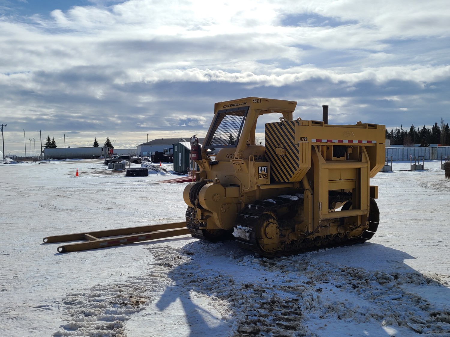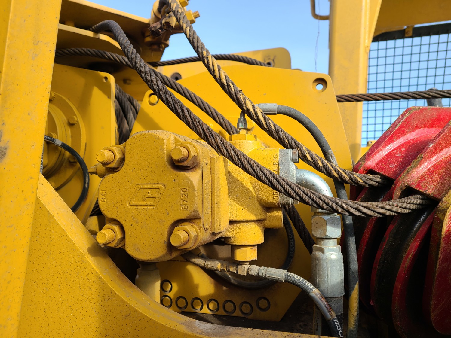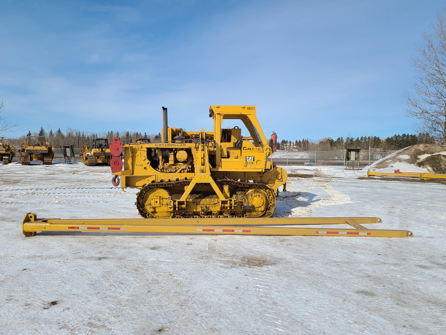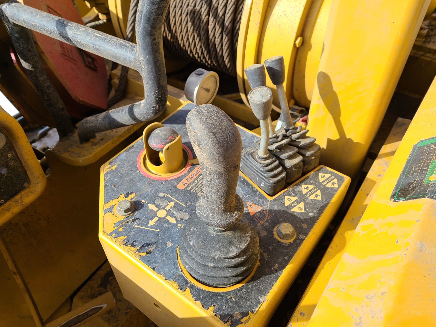 Open station, 3306 diesel engine, positive air shutoff, electric circulating block heater, 3 speed power shift transmission, differential steering, 28.5 ft boom, Braden winch, 26 inch track pads, single grousers, ice cleats