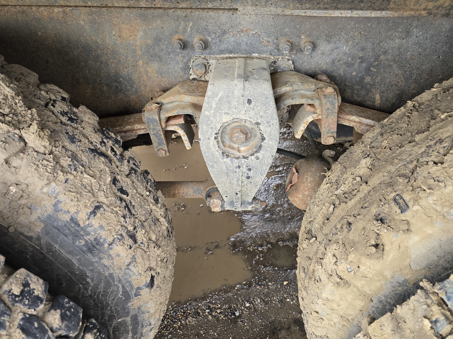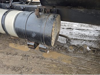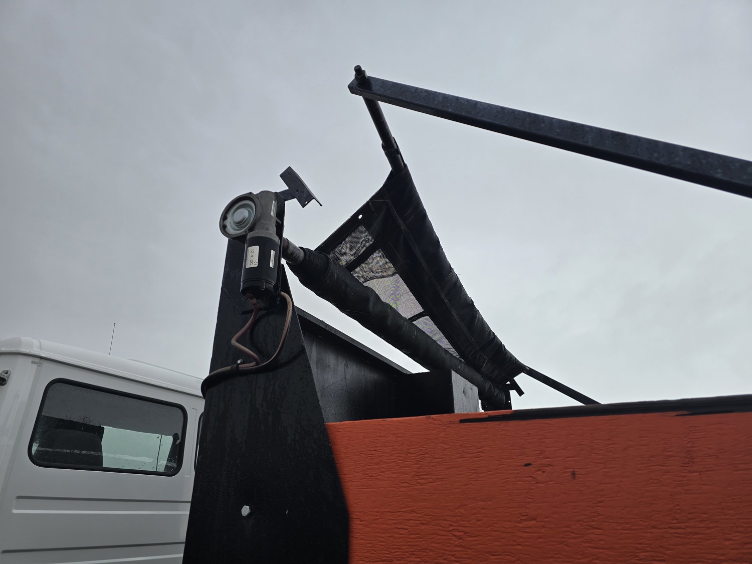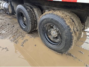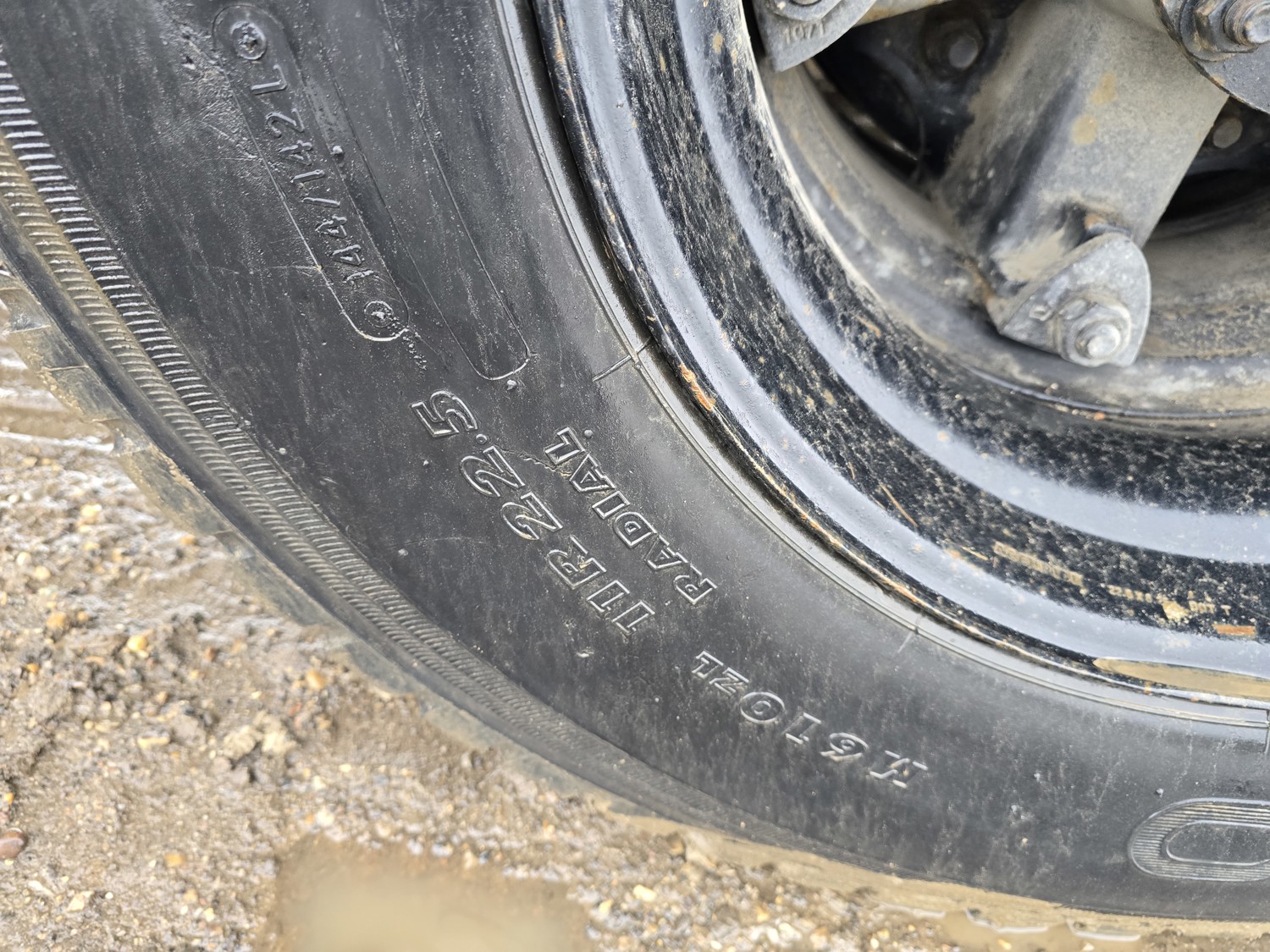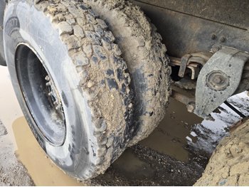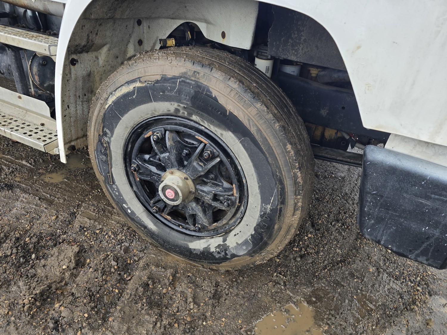 Caterpillar C-12 14.6 L 6 cylinder diesel engine, engine block heater, Eaton Fuller 8-LL 8 speed manual transmission, cruise control, radio, 15 ft box, electric tarp, trailer air supply valve, PTO pump, spring suspension, 12,000 lb front axle, 40,000 lb rear axles, diff lock, 228 inch WB, 11R22.5 tires