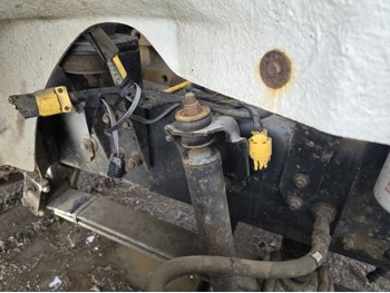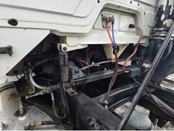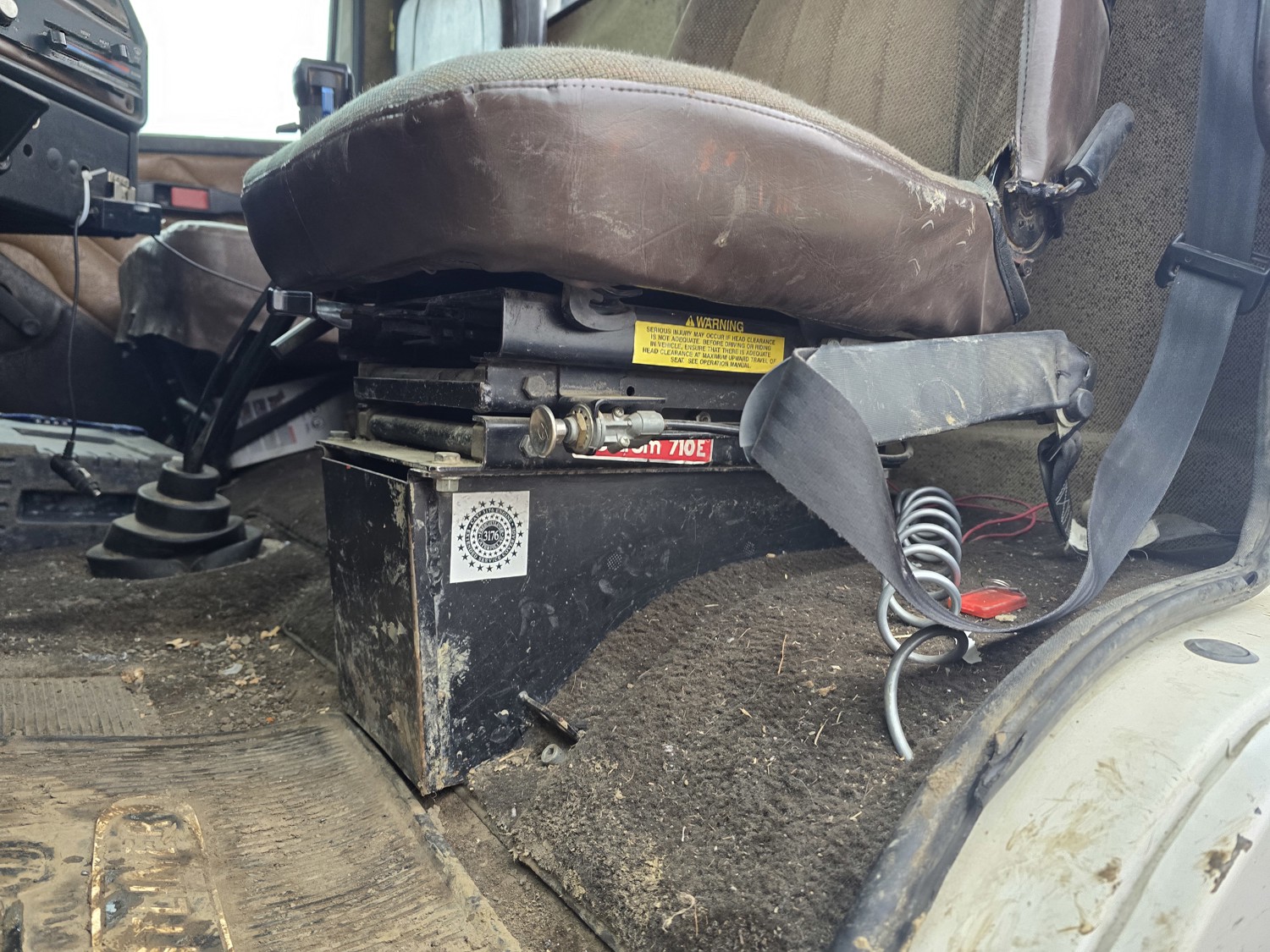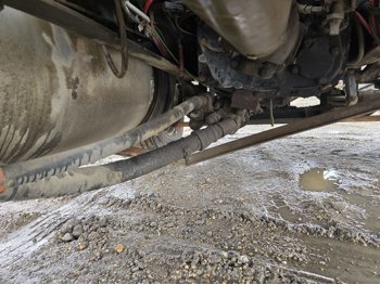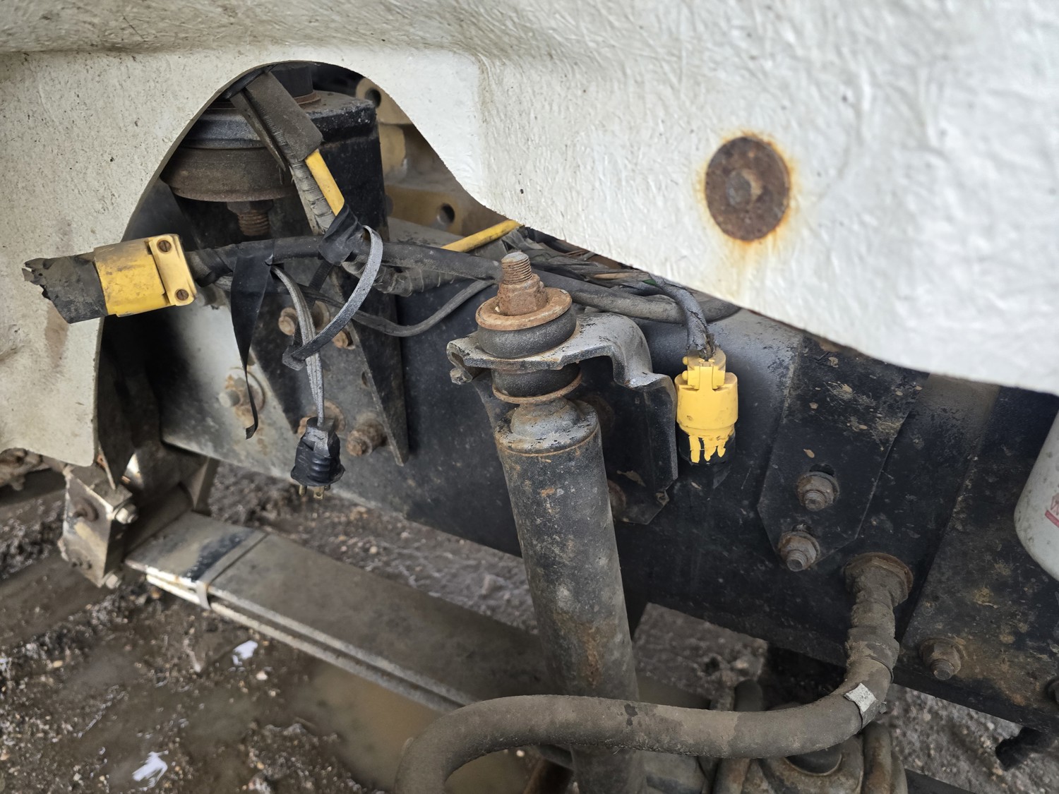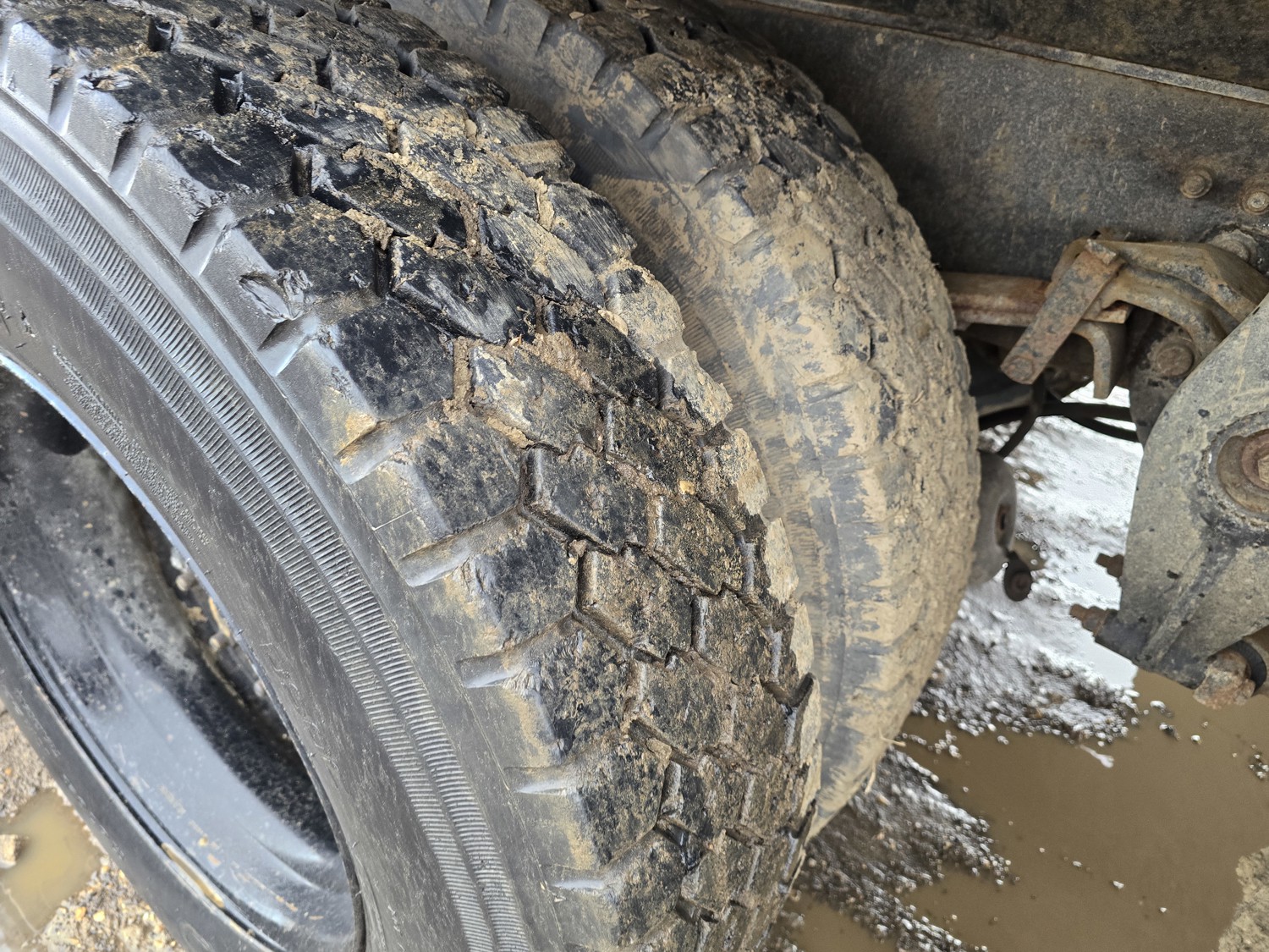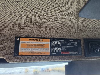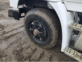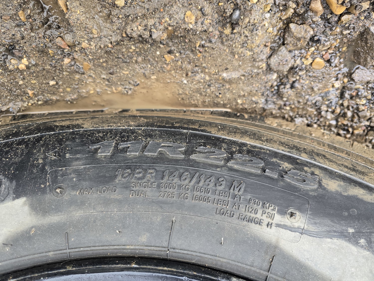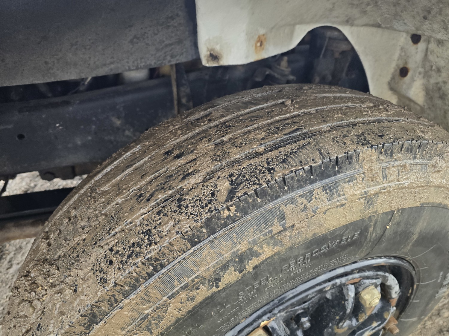 Caterpillar C-12 14.6 L 6 cylinder diesel engine, engine block heater, Eaton Fuller 8-LL 8 speed manual transmission, cruise control, radio, 15 ft box, electric tarp, trailer air supply valve, PTO pump, spring suspension, 12,000 lb front axle, 40,000 lb rear axles, diff lock, 228 inch WB, 11R22.5 tires