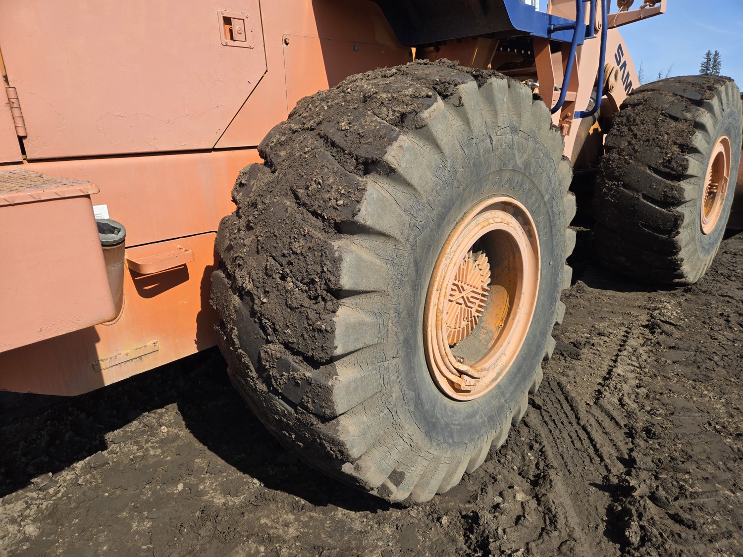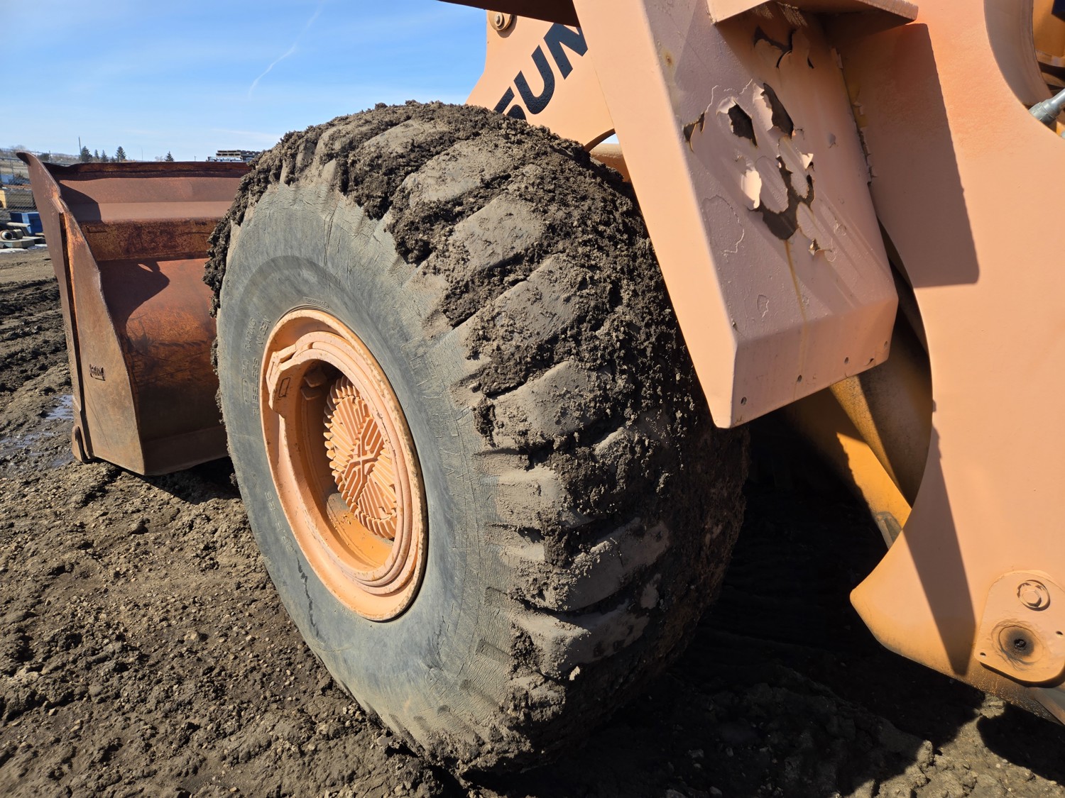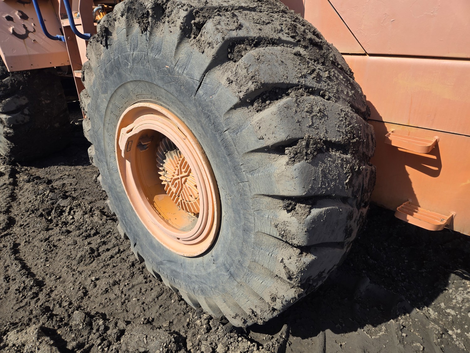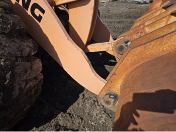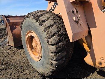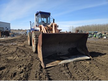 Enclosed cab, 4 speed countershaft transmission with left hand reverser, smooth bucket, 3.5 cu yard bucket, third hydraulics to bucket, 26.5-25 tires
