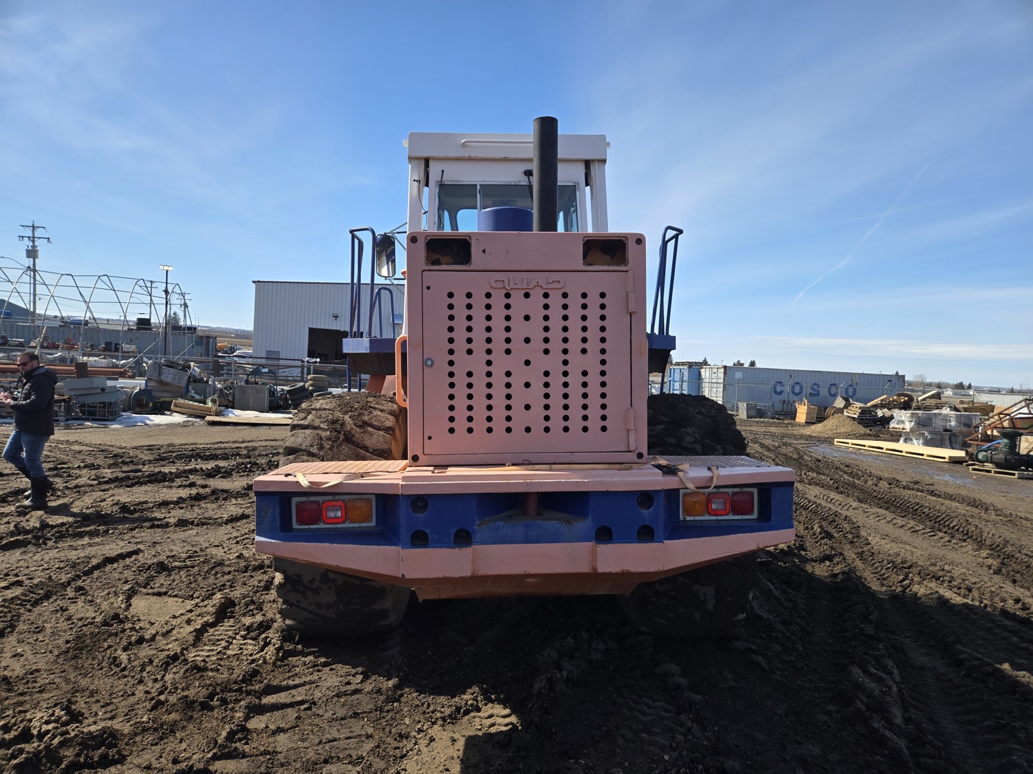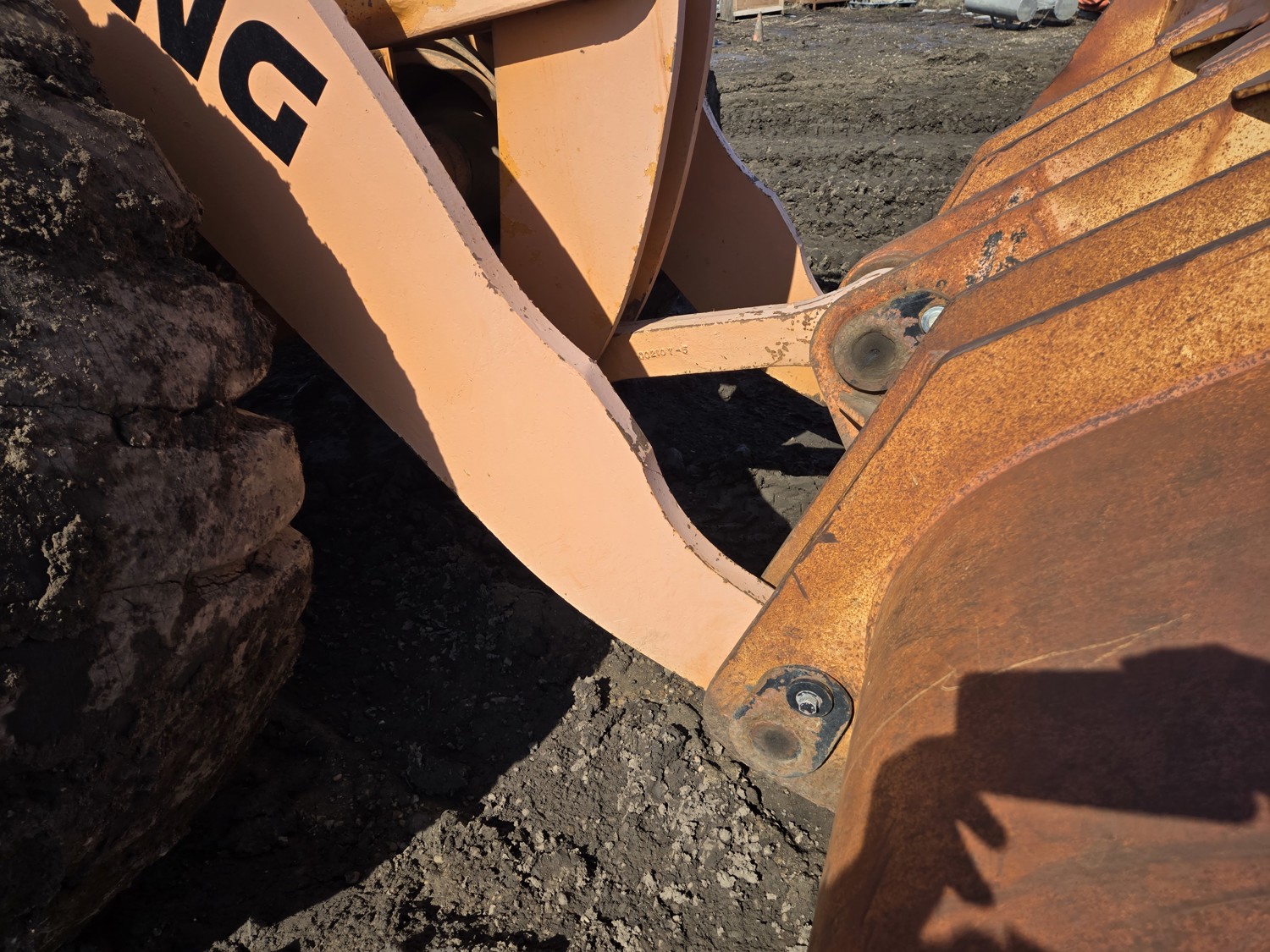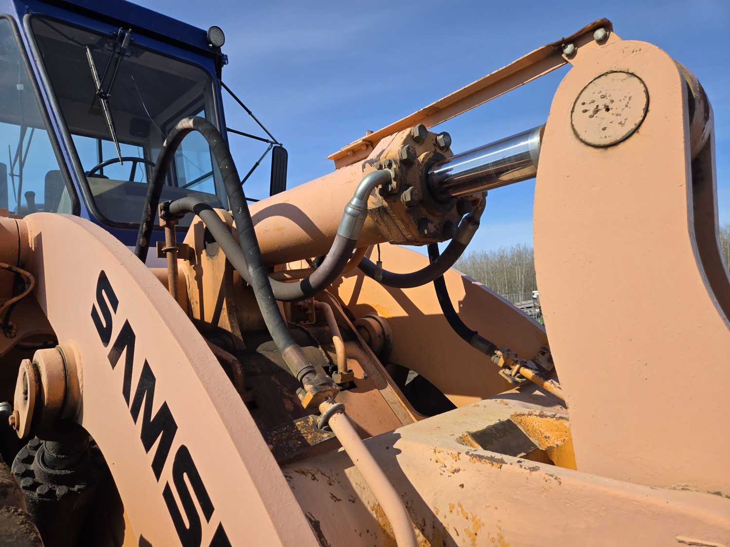 Enclosed cab, 4 speed countershaft transmission with left hand reverser, smooth bucket, 3.5 cu yard bucket, third hydraulics to bucket, 26.5-25 tires