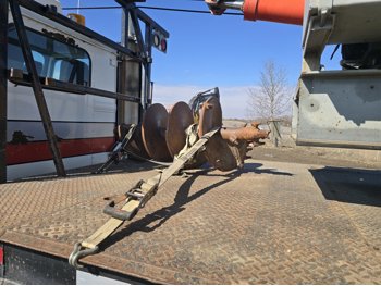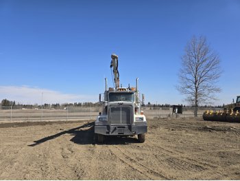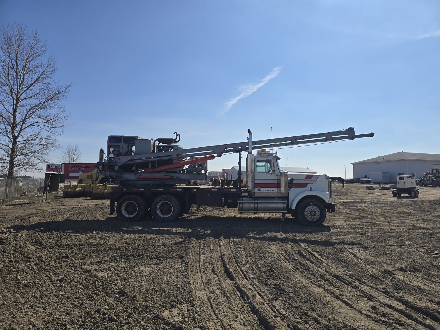 Caterpillar 3406 14.6 L 6 cylinder 425 HP diesel engine, Webasto engine heater, engine brake, engine block heater, positive air shutoff, Eaton Fuller RTLO-16618A 18 speed manual transmission, A/C, air ride seats, CB radio, stereo, steel headache rack, beacons, air ride cab, chain holders, Texoma 500-30 pressure digger, Cummins V378-C140 11.4 L V6 4-stroke diesel engine, self contained hydraulic system, c/w (7) augers sizes ranging from 12 inch to 41 inch and various spare parts, outriggers, front air assist suspension, Neway air ride suspension, 12,000 lb front axle, 46,000 lb rear axles, diff lock, 252 inch WB, aluminum front wheels, 11R22.5 front tires, 11R24.5 rear tires