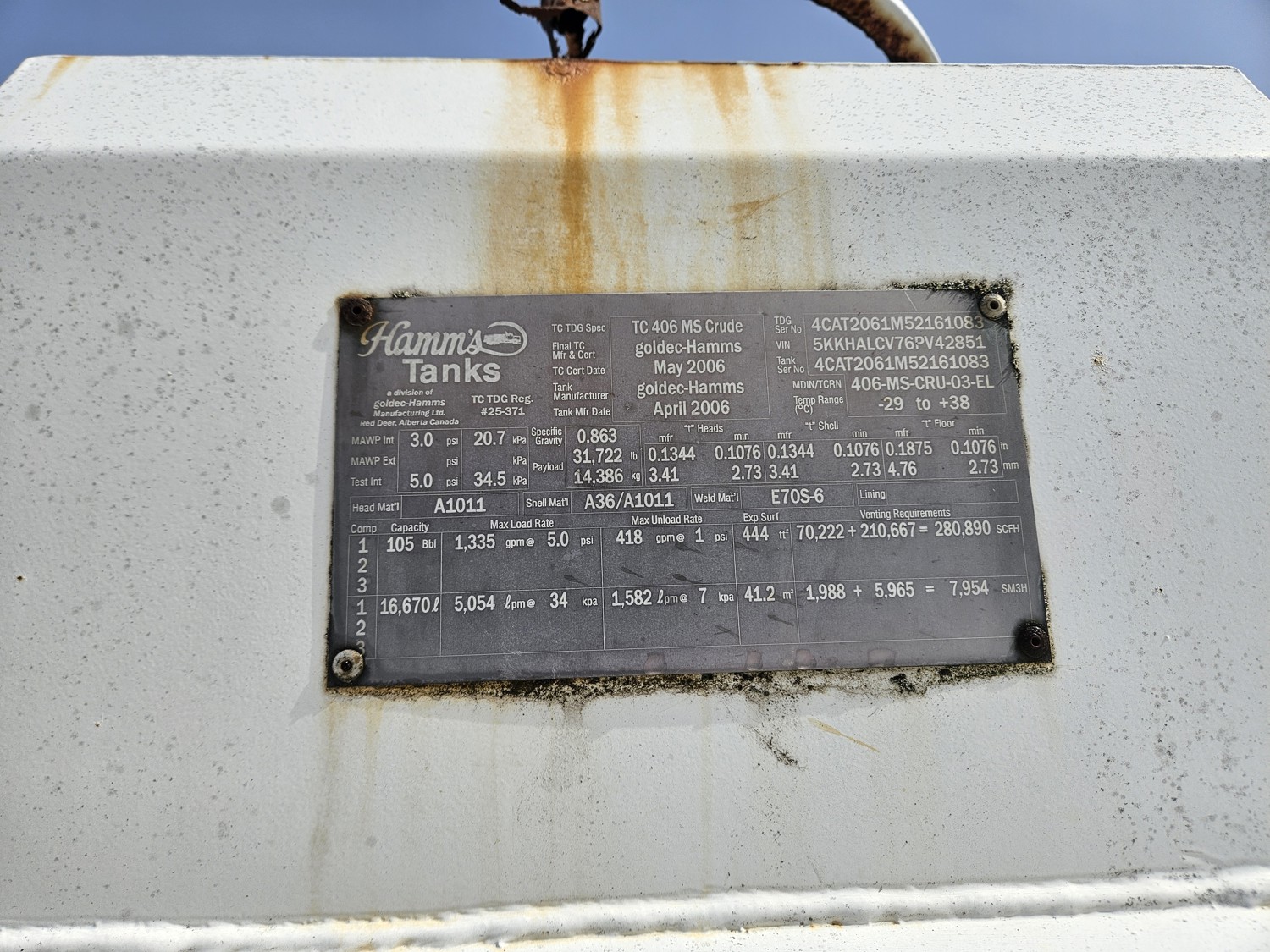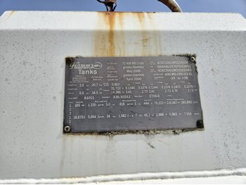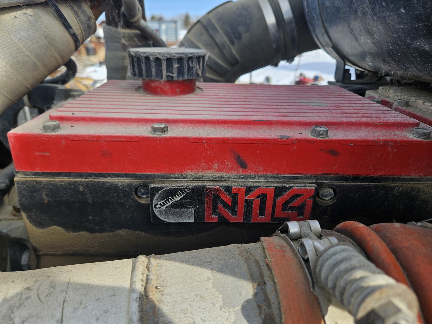 Cummins N14 14.0 L 6 cylinder diesel engine, engine brake, engine block heater, 18 speed manual transmission, stereo, hoist, Hamms 16670 liter steel tank, air ride suspension, diff lock, 11R24.5 tires
