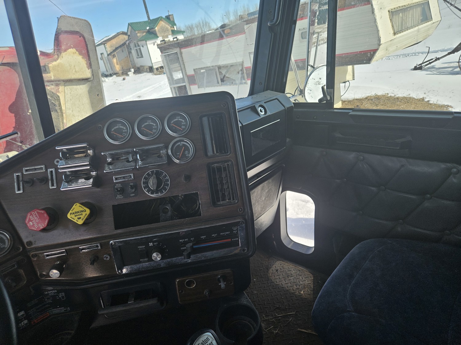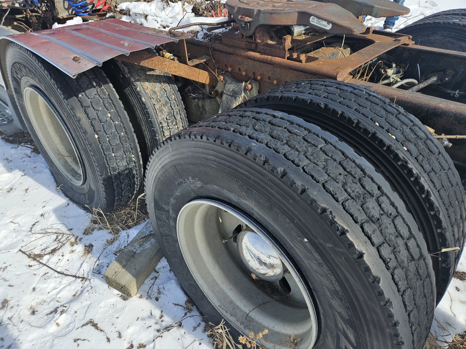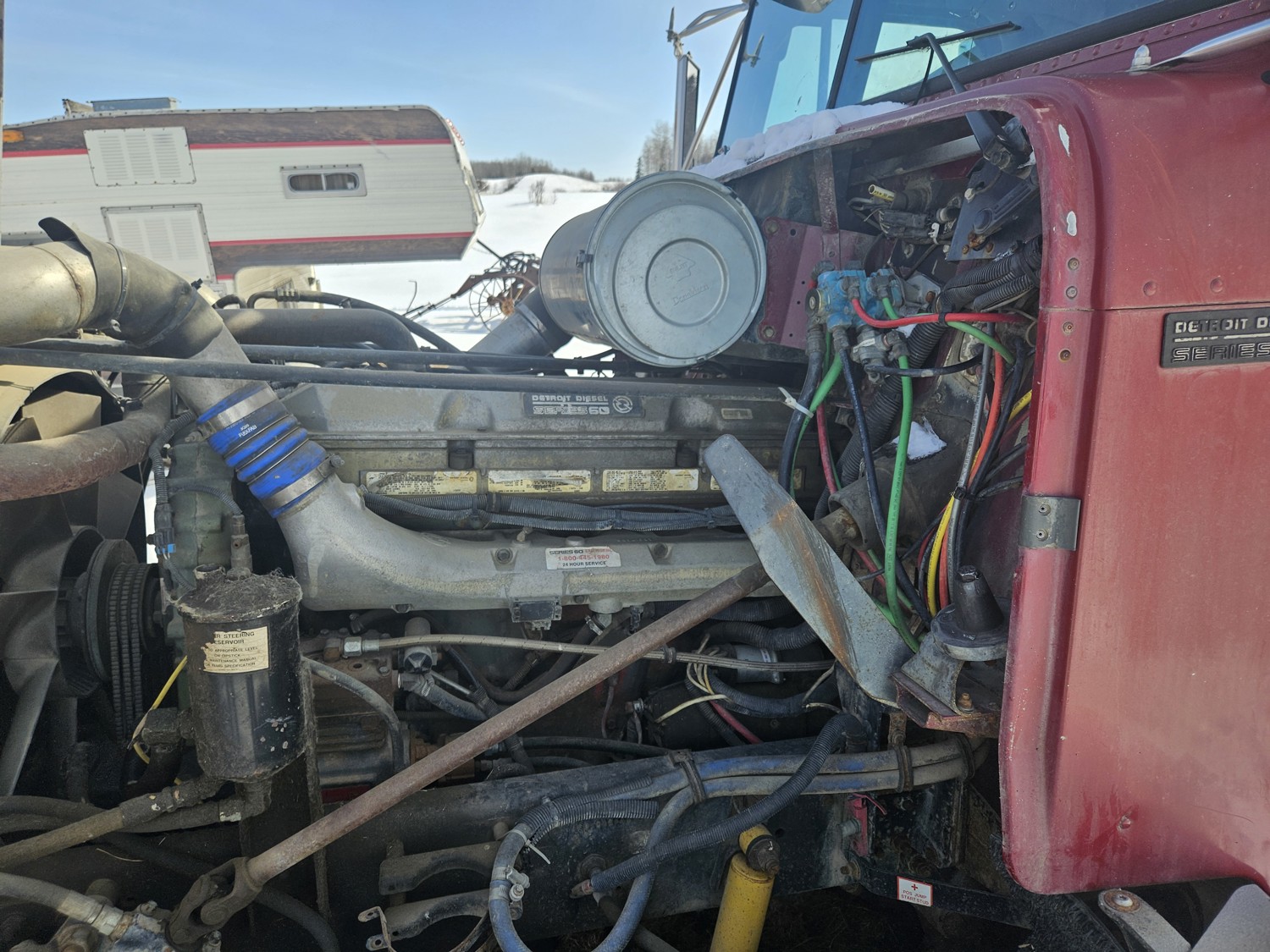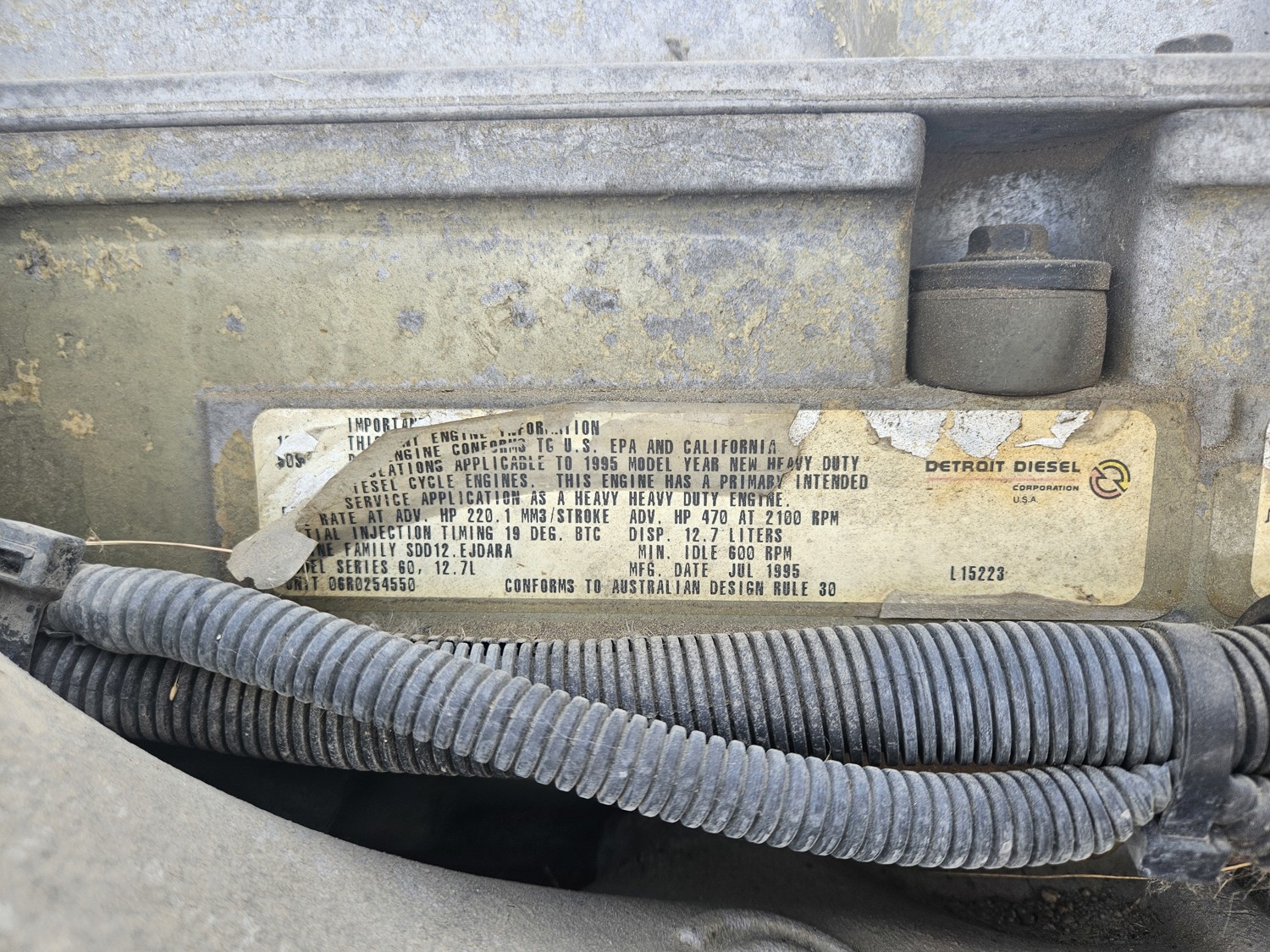 Detroit 60 470 HP diesel engine, engine brake, Eaton Fuller 18 speed manual transmission, flat top sleeper, air ride driver seat, air ride suspension, 12,000 lb front axle, 40,000 lb rear axles, all aluminum wheels, 11R22.5 tires