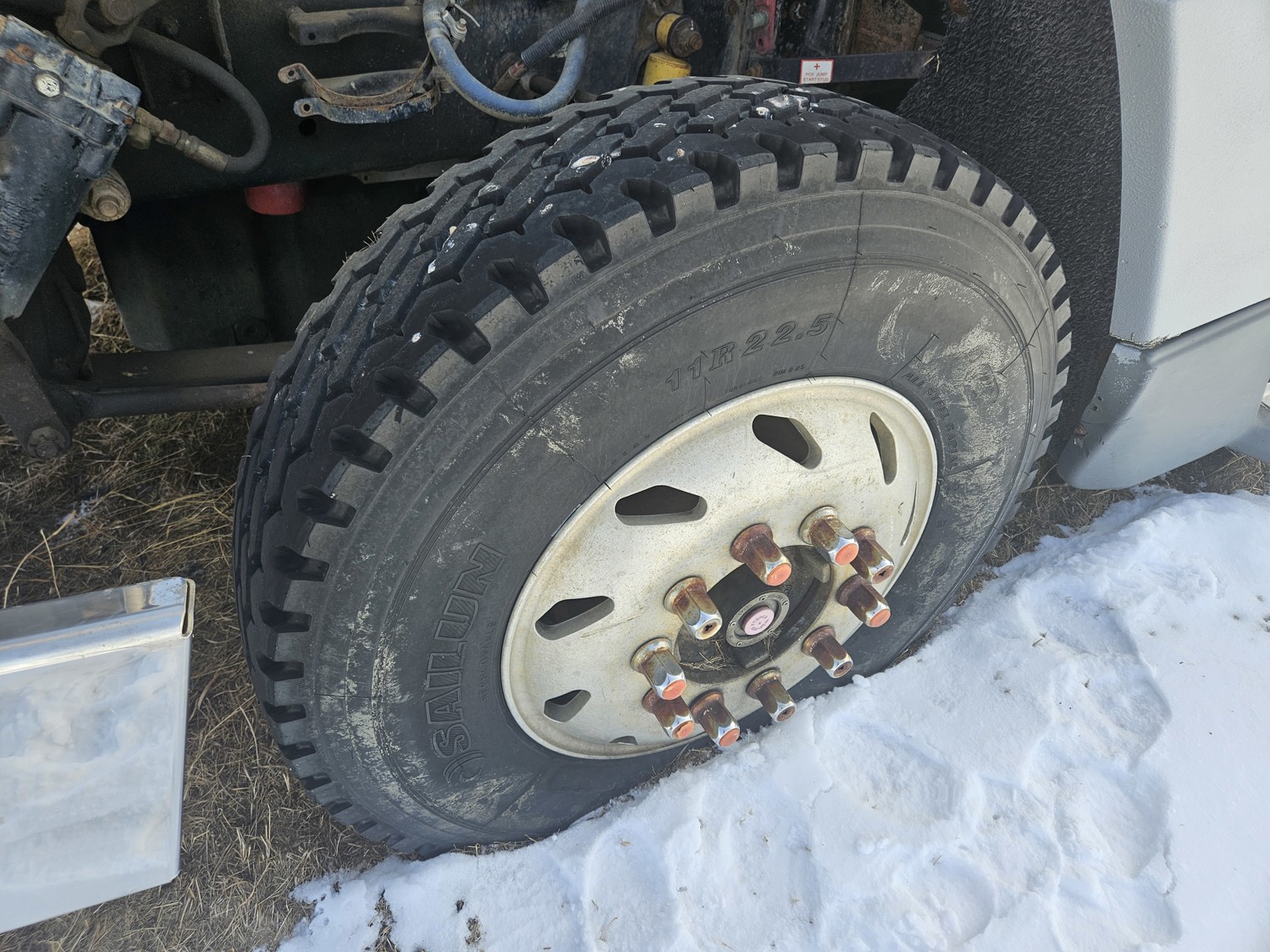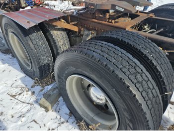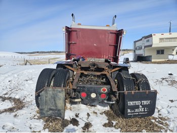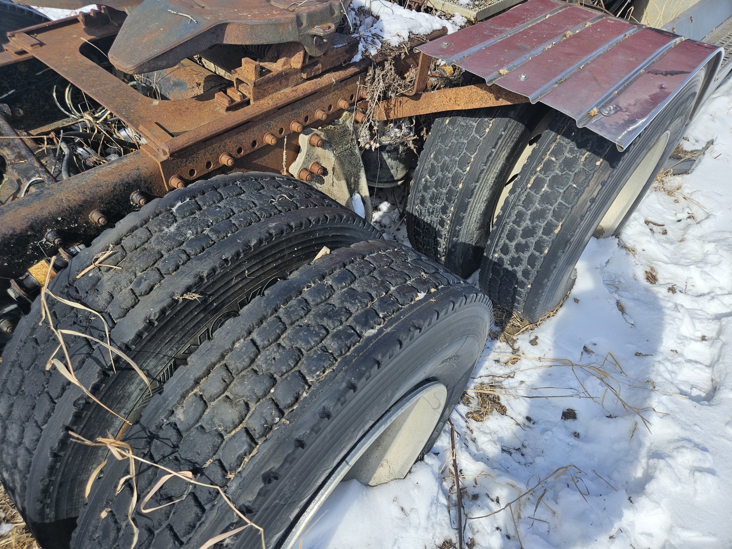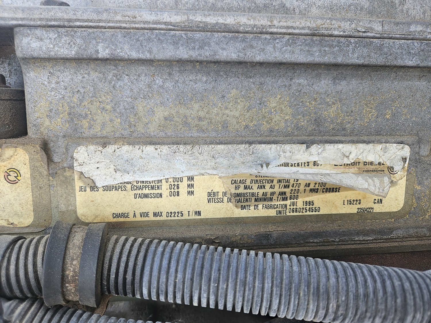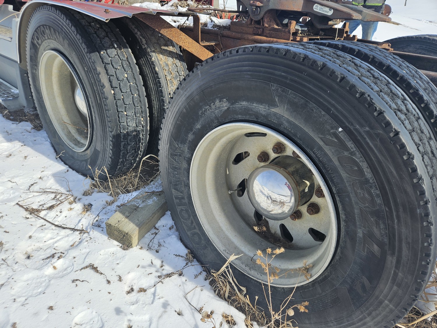 Detroit 60 470 HP diesel engine, engine brake, Eaton Fuller 18 speed manual transmission, flat top sleeper, air ride driver seat, air ride suspension, 12,000 lb front axle, 40,000 lb rear axles, all aluminum wheels, 11R22.5 tires