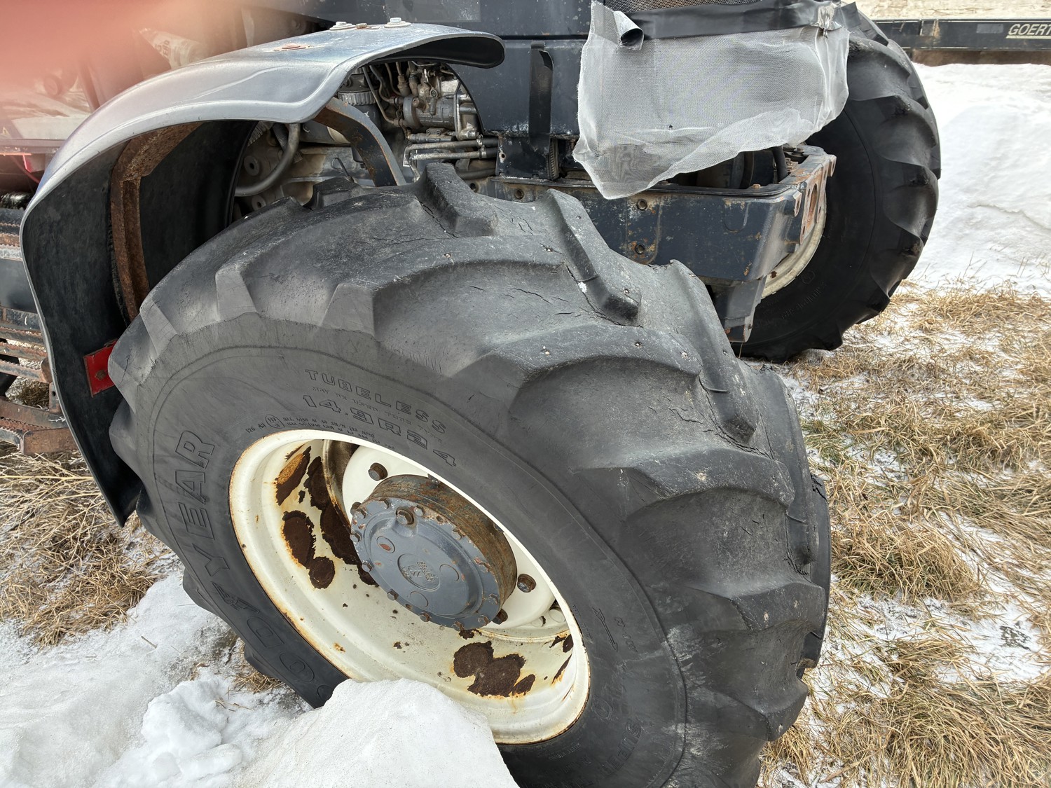 Genesis 304 cu in 4 cylinder turbo 110 HP, diesel engine, 16 speed partial power shift transmission, cab, left hand reverser, A/C, radio, buddy seat, 540/1000 PTO, 3 point hitch, 4 rear hydraulic outlets, 14.9R24 front tires, 18.4R34 rear tires