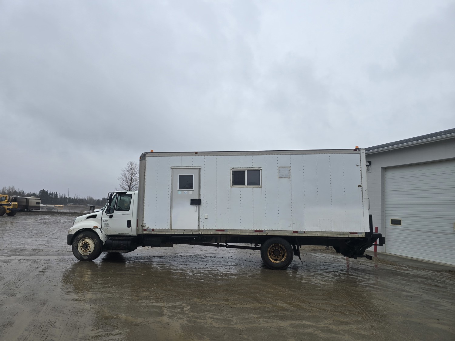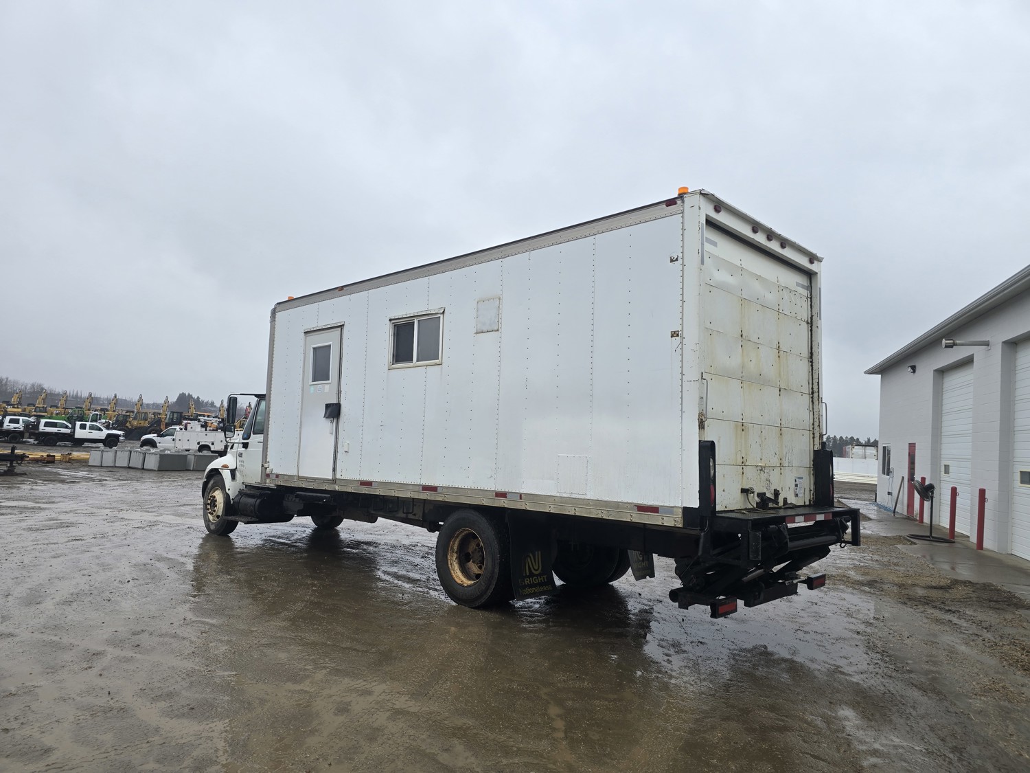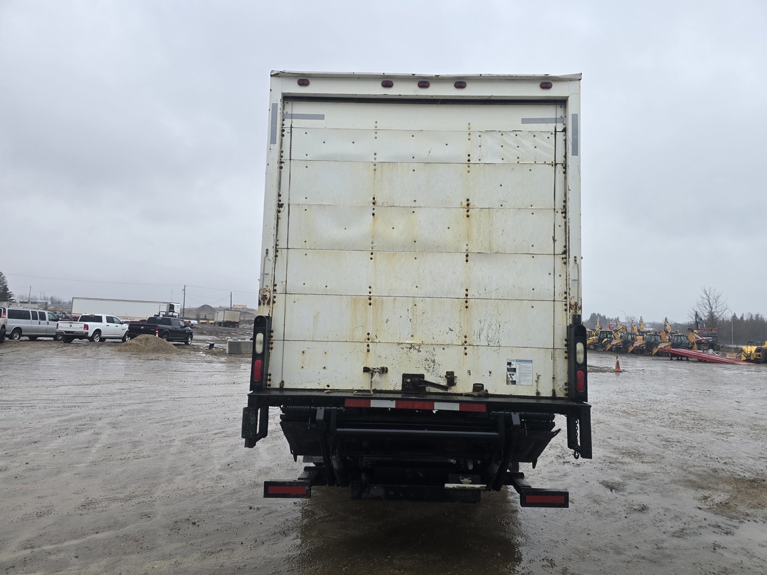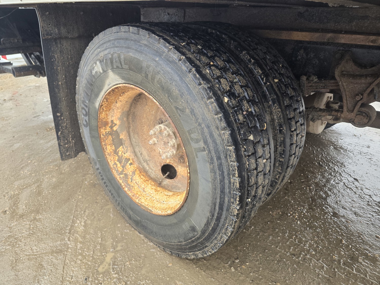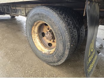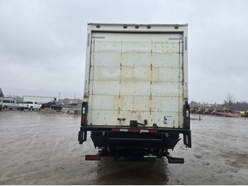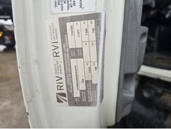 6 cylinder diesel engine, Eaton Fuller 6 speed manual transmission, 24 ft van, curbside door, liftgate, spring suspension, 8,000 lb front axle, 17,510 lb rear axles, 254 inch WB, 11R22.5 front tires, 25/80R22.5 rear tires