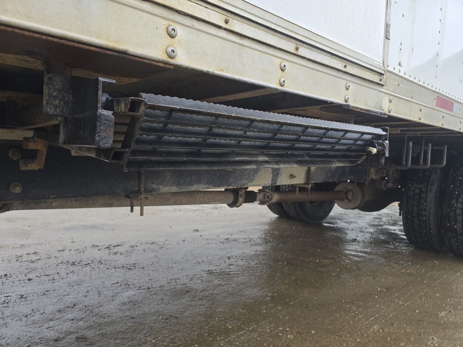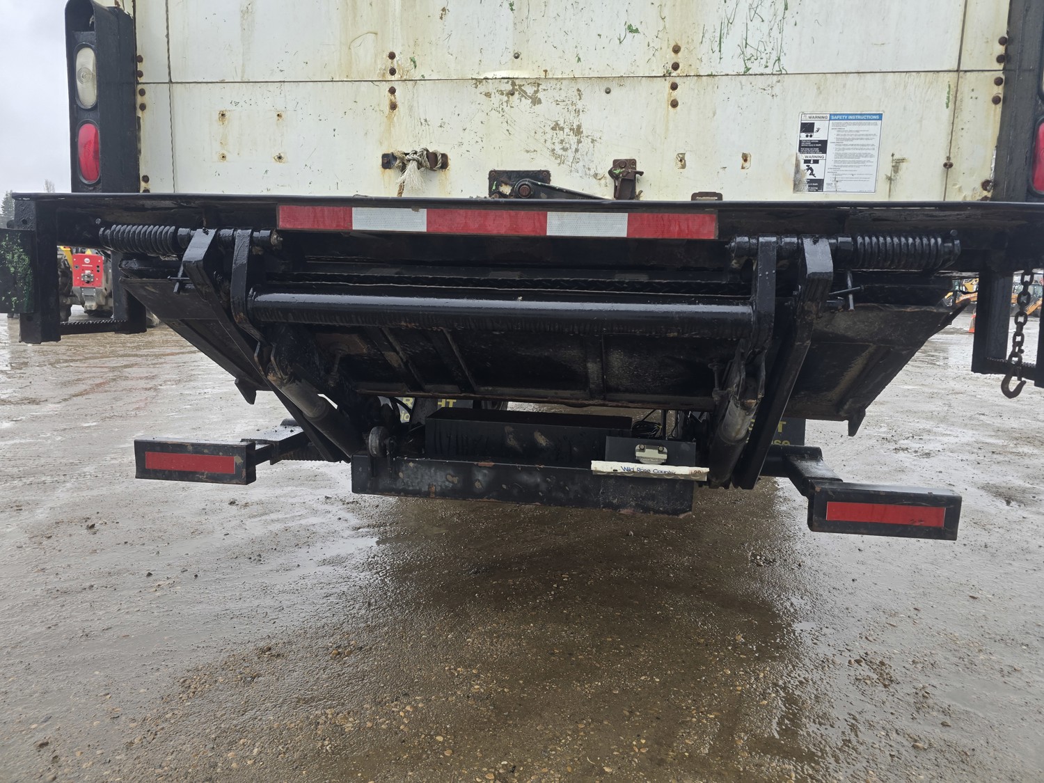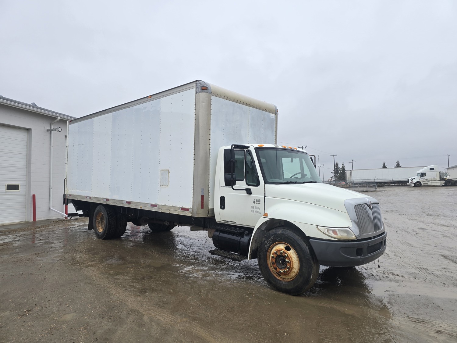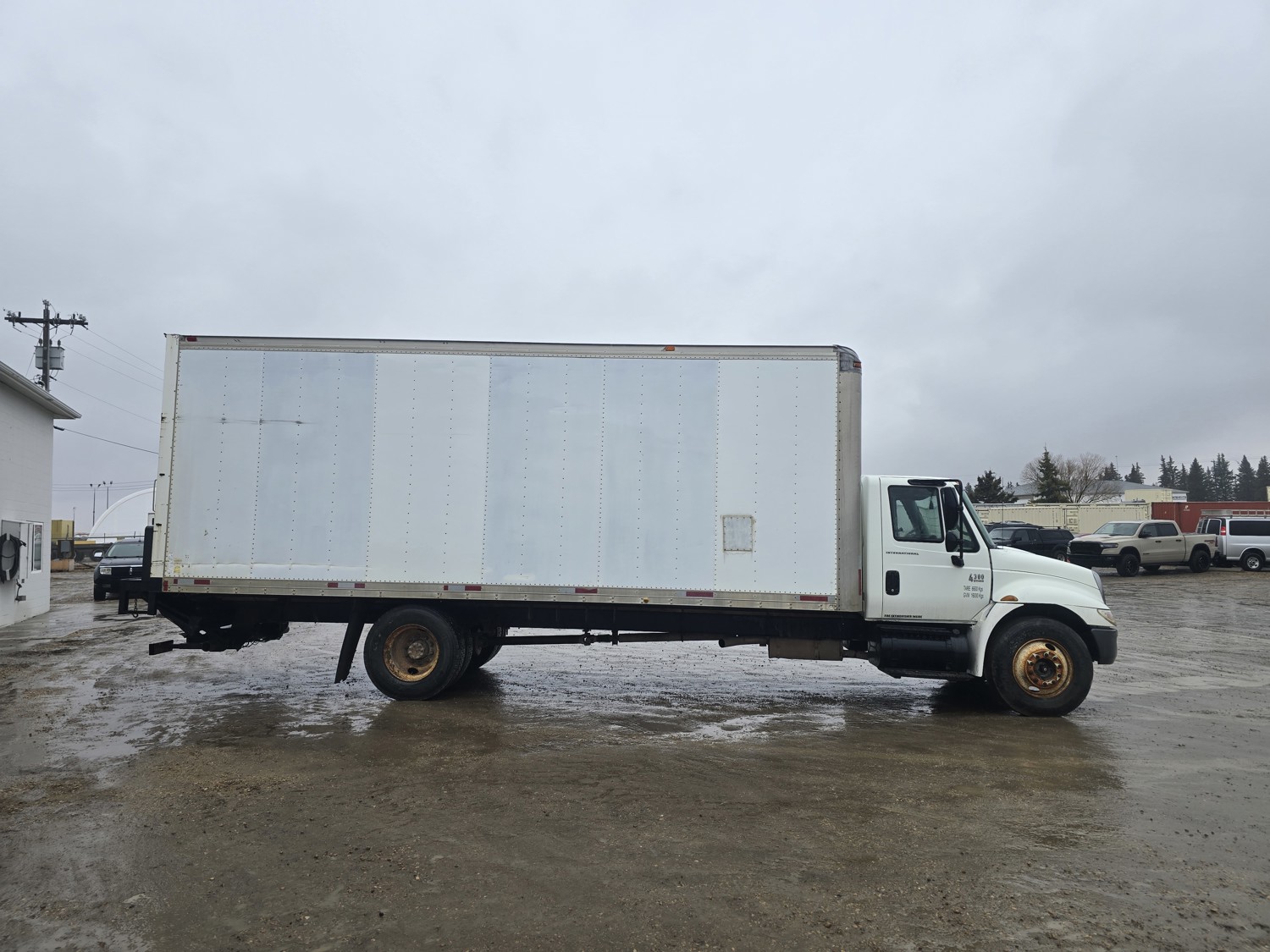 6 cylinder diesel engine, Eaton Fuller 6 speed manual transmission, 24 ft van, curbside door, liftgate, spring suspension, 8,000 lb front axle, 17,510 lb rear axles, 254 inch WB, 11R22.5 front tires, 25/80R22.5 rear tires