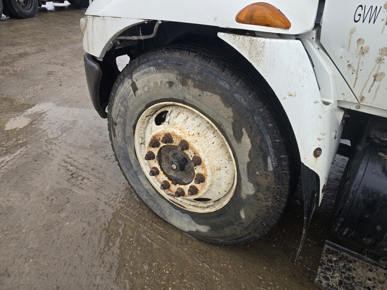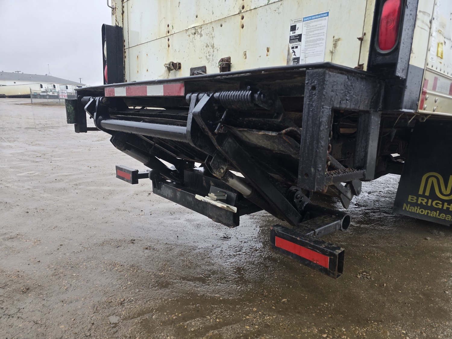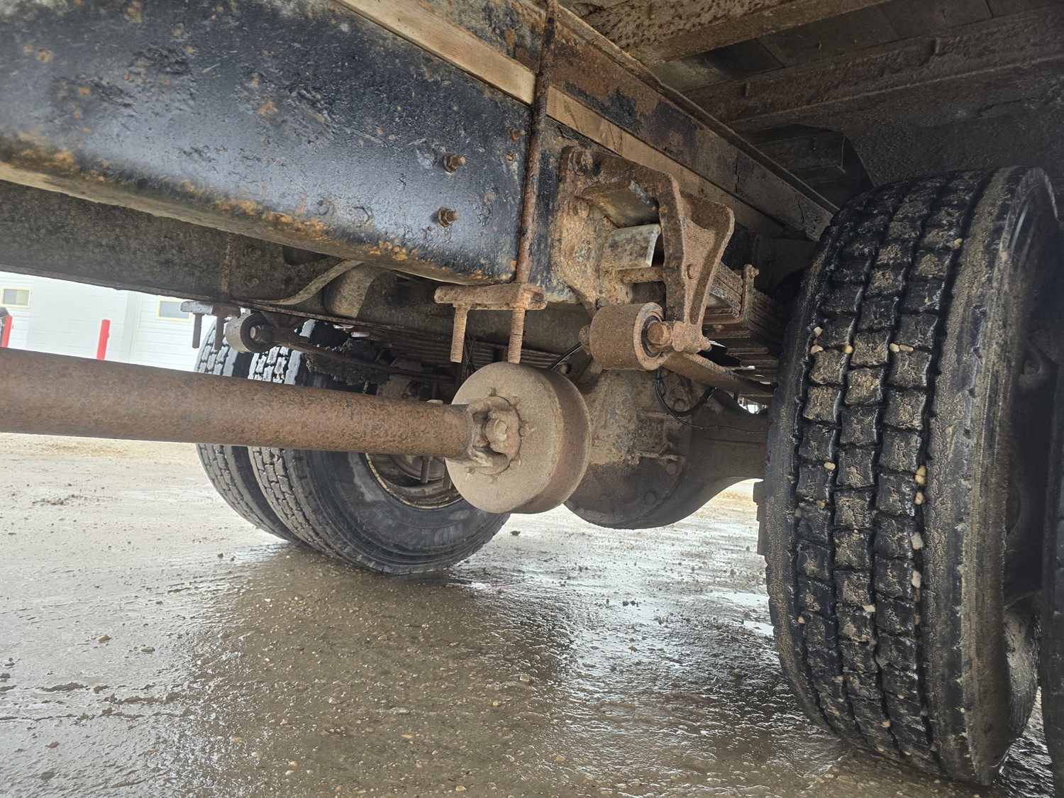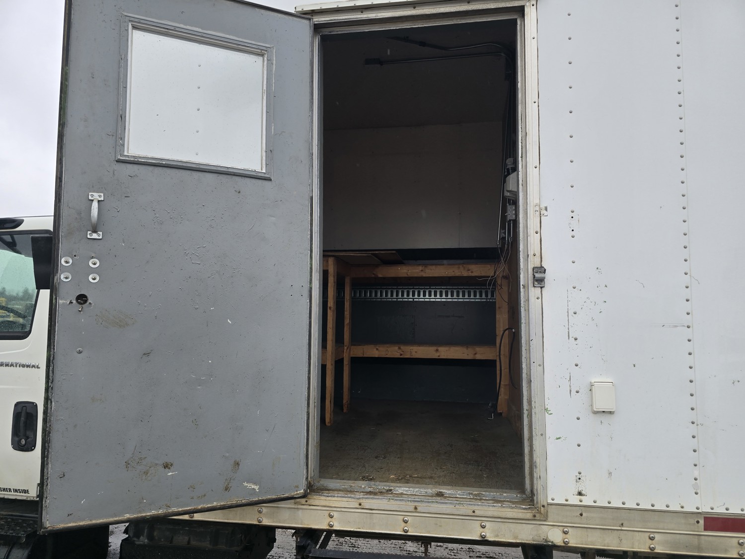 6 cylinder diesel engine, Eaton Fuller 6 speed manual transmission, 24 ft van, curbside door, liftgate, spring suspension, 8,000 lb front axle, 17,510 lb rear axles, 254 inch WB, 11R22.5 front tires, 25/80R22.5 rear tires