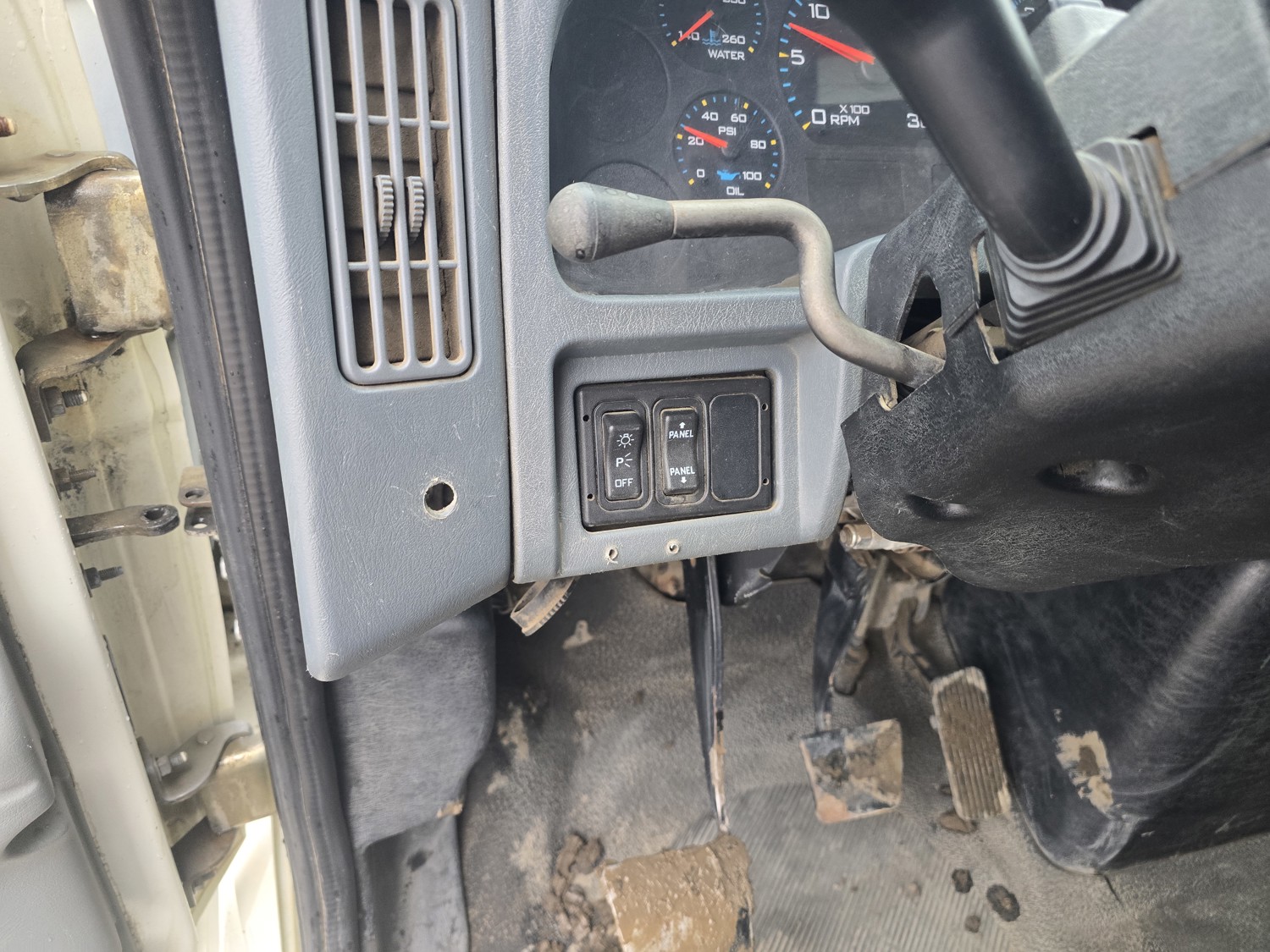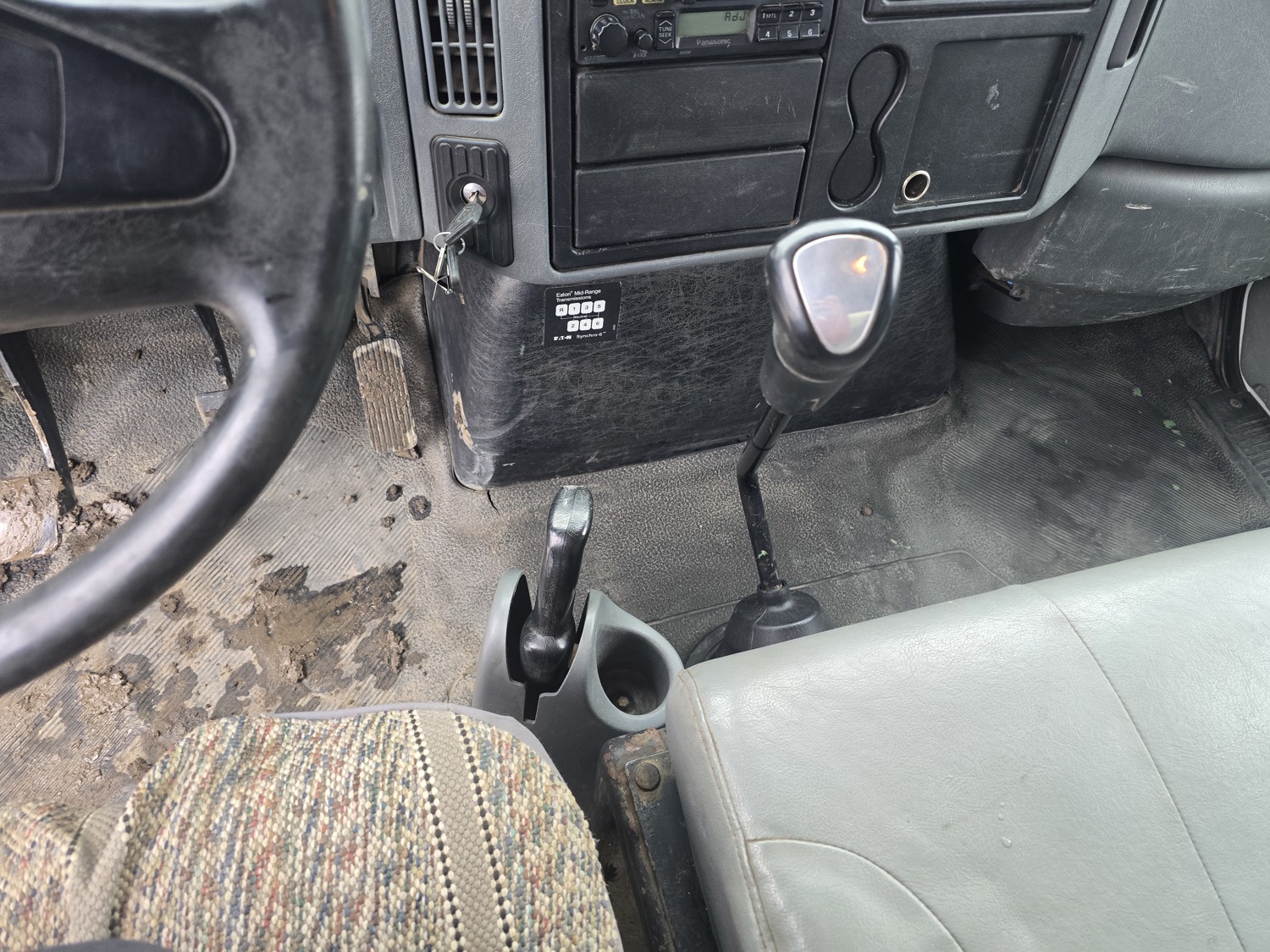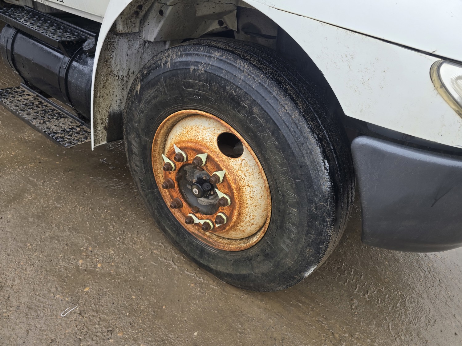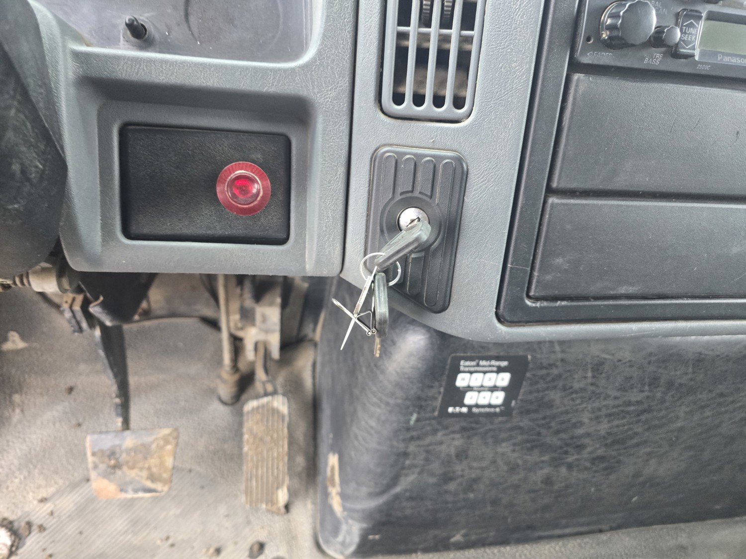 6 cylinder diesel engine, Eaton Fuller 6 speed manual transmission, 24 ft van, curbside door, liftgate, spring suspension, 8,000 lb front axle, 17,510 lb rear axles, 254 inch WB, 11R22.5 front tires, 25/80R22.5 rear tires