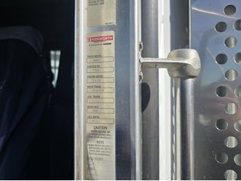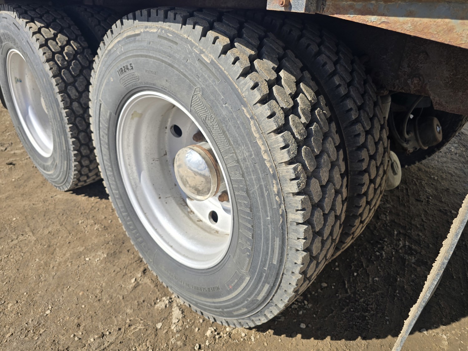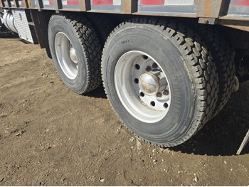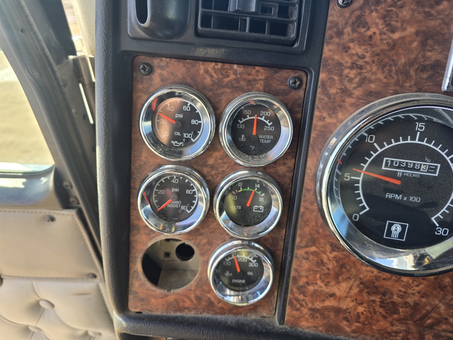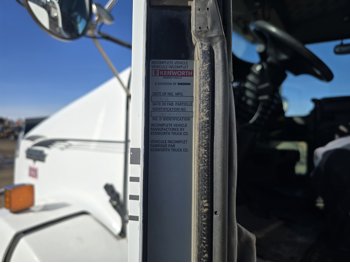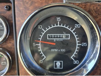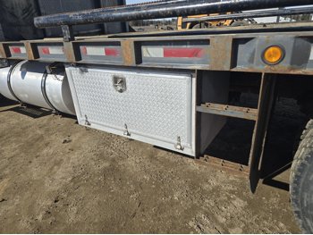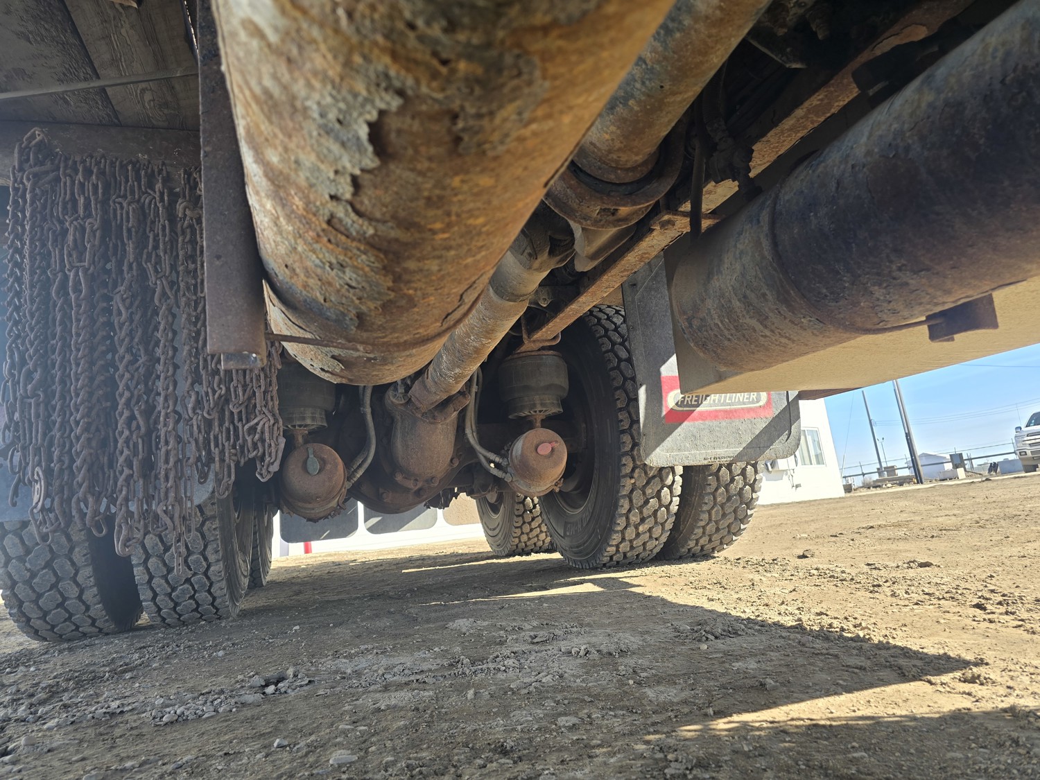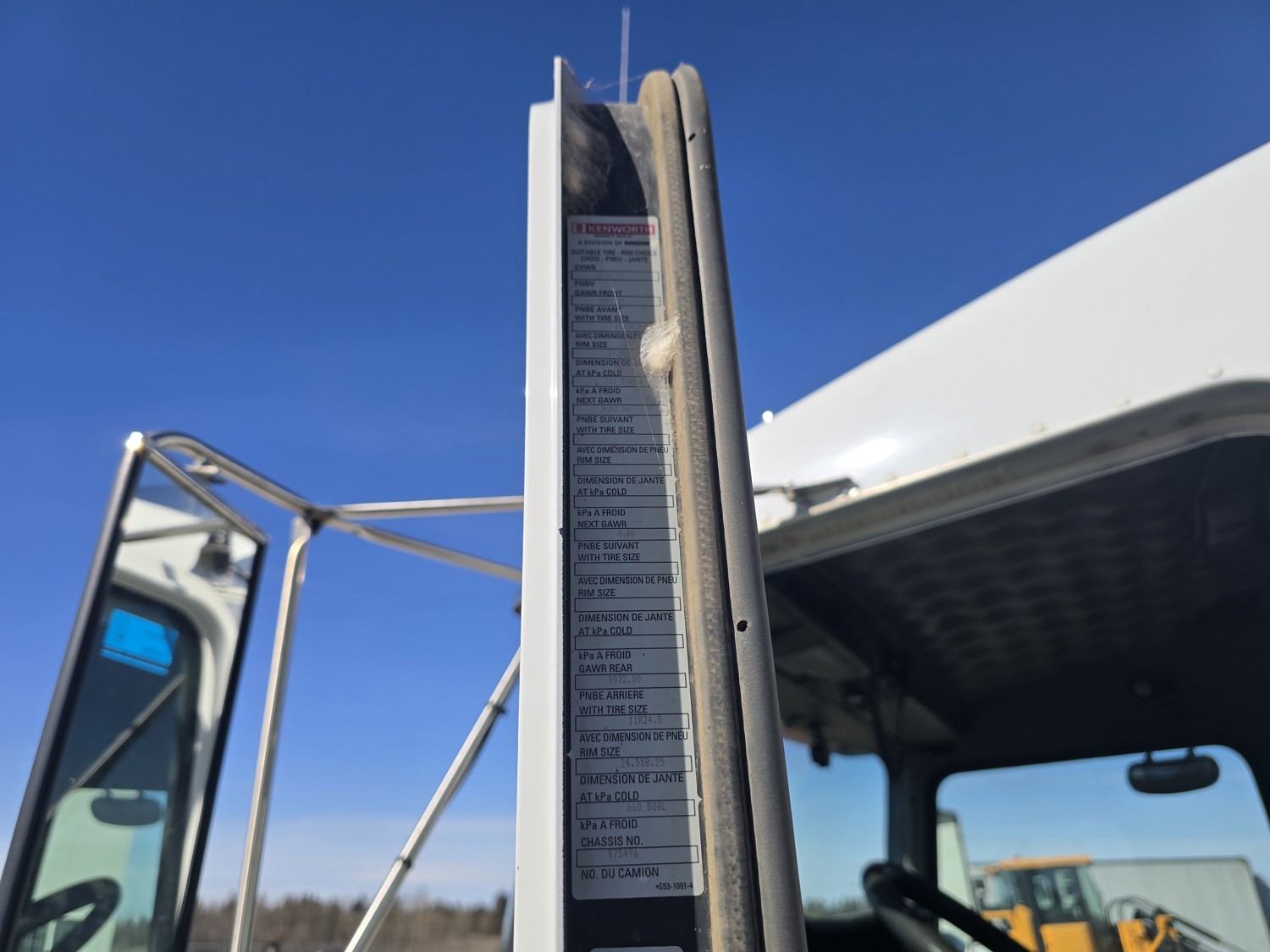 Caterpillar C15 15.2 L 6 cylinder 435 HP diesel engine, Webasto engine heater, engine brake, engine block heater, positive air shutoff, Eaton Fuller RTLO-16913A 13 speed manual transmission, mid rise 38 inch sleeper, A/C, cruise control, air ride driver seat, steel headache rack, aluminum tool boxes, 102 inch x 19 ft deck, chain holders, 72 inch dovetail, 62 inch manual ramps, 2-5/16 rear ball hitch for a goose neck trailer, front air assist suspension, Airglide air ride suspension, 13,200 lb front axle, 40,000 lb rear axles, 3 way diff locks, 4.11:1 ratio, 275 inch WB, all aluminum wheels, 11R24.5 tires