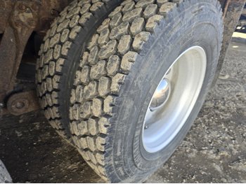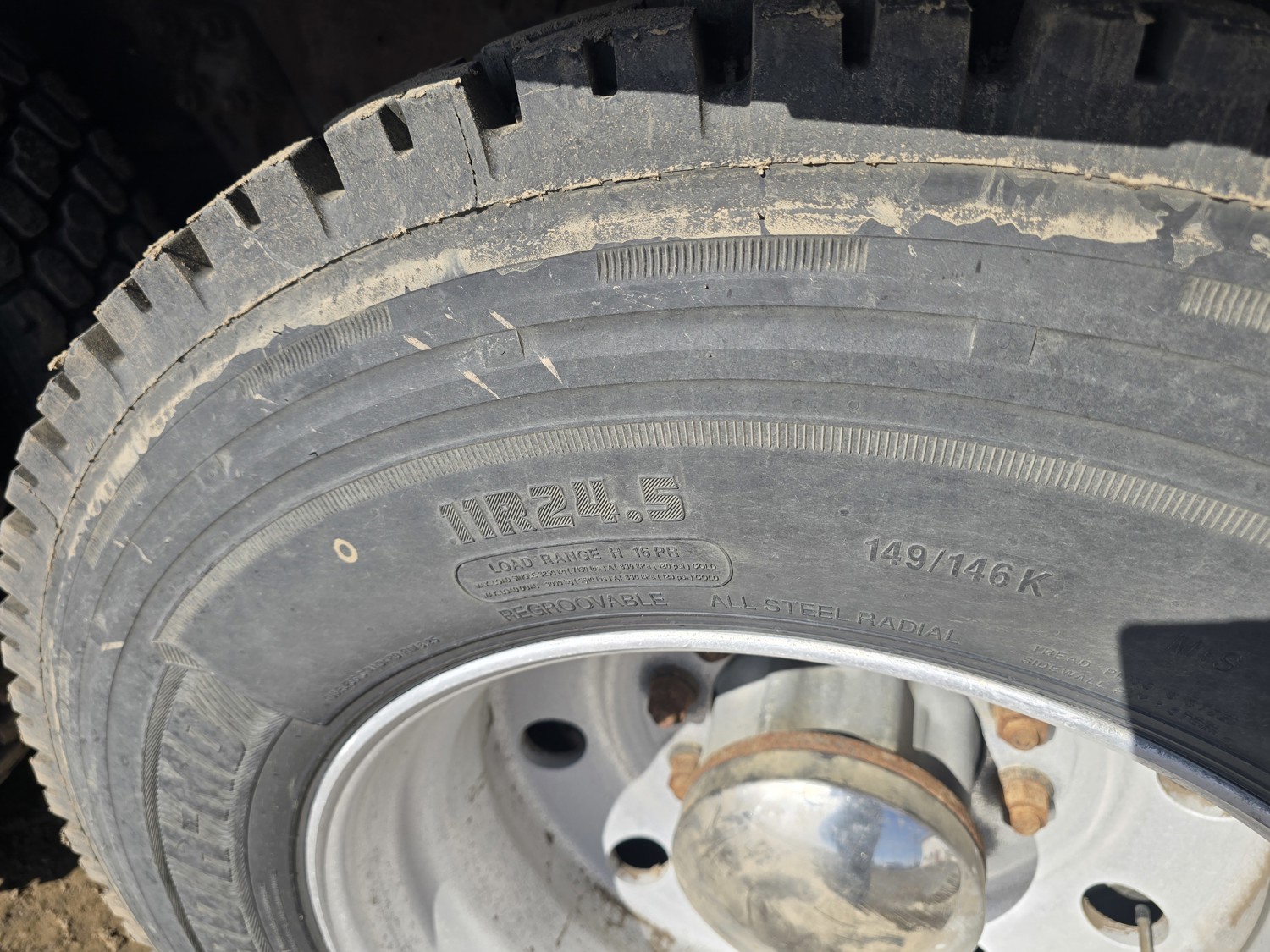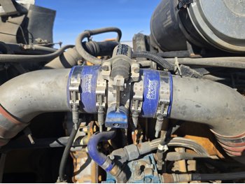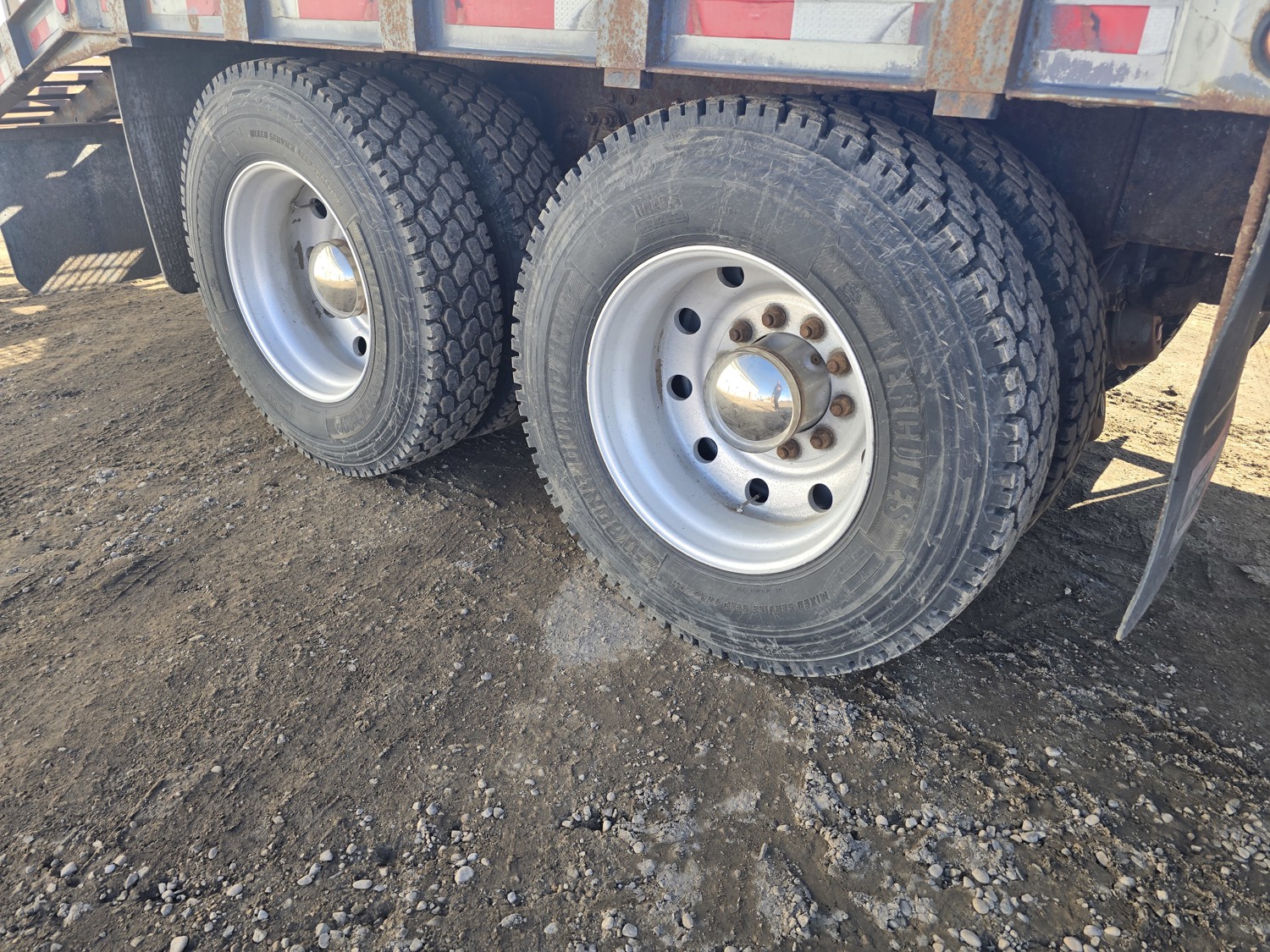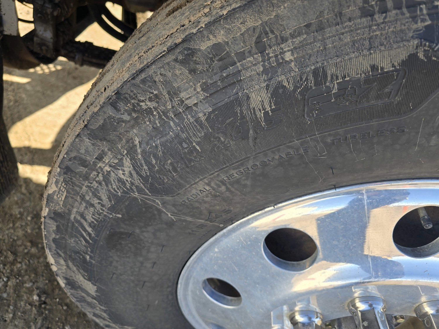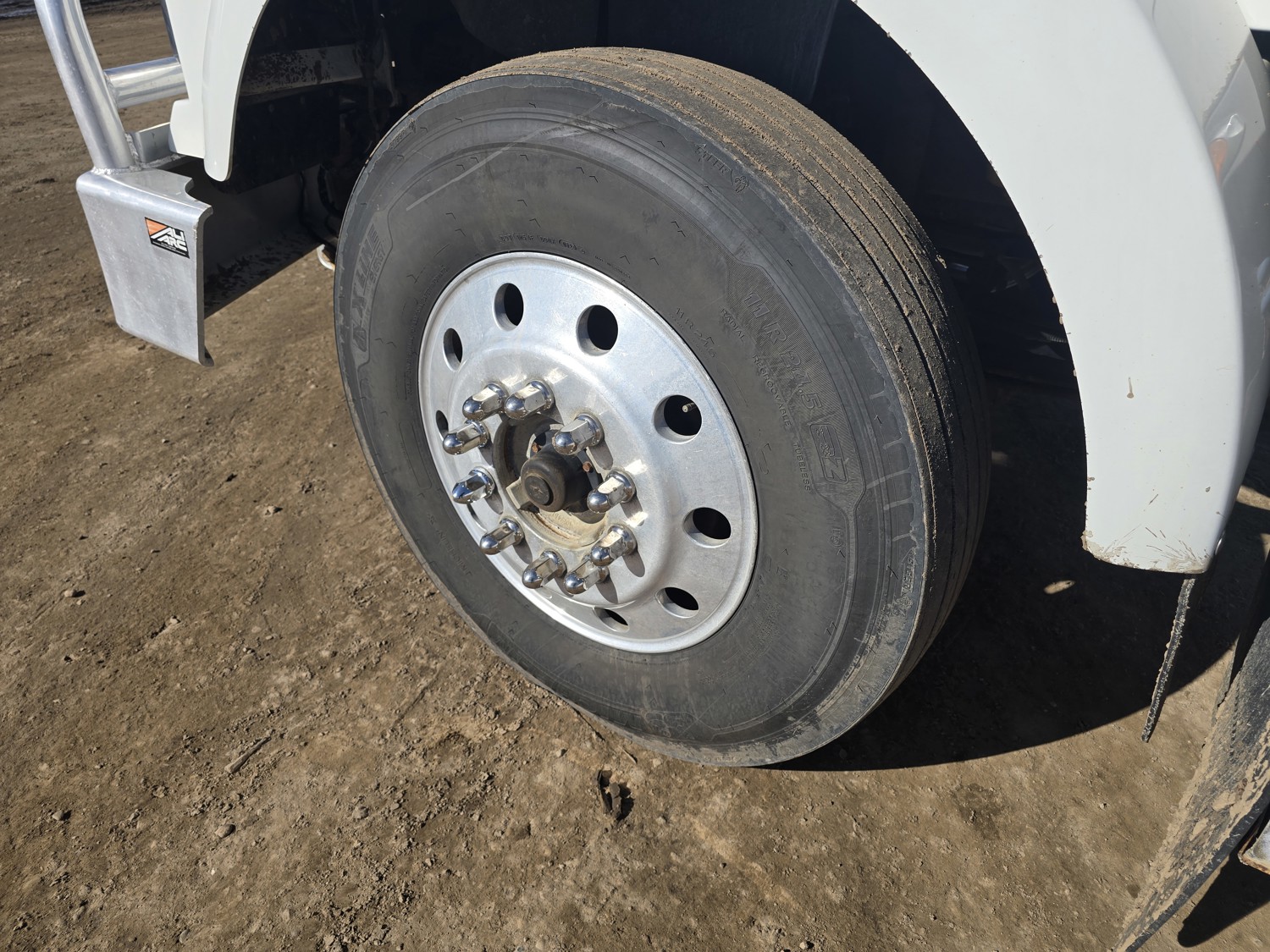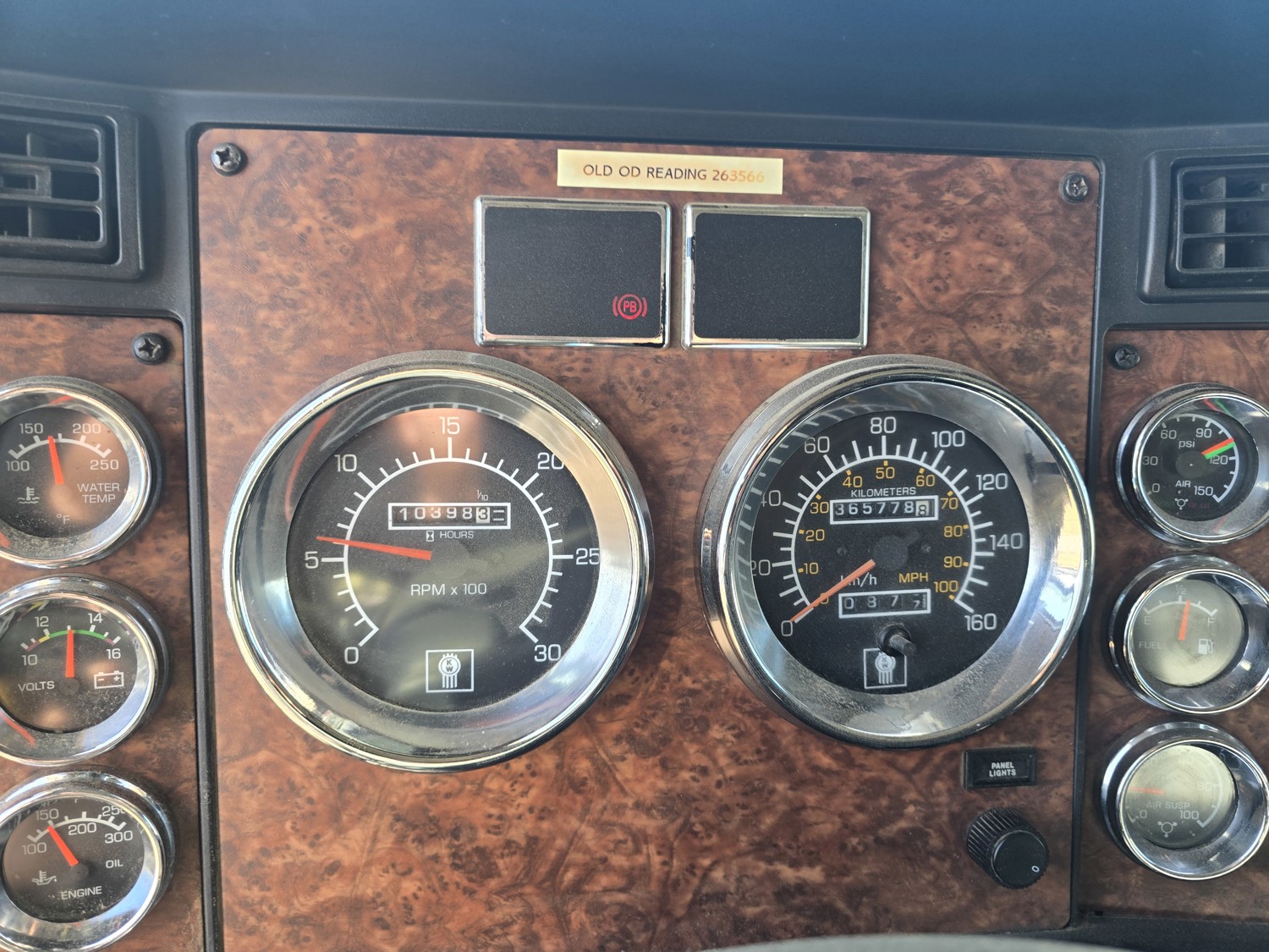 Caterpillar C15 15.2 L 6 cylinder 435 HP diesel engine, Webasto engine heater, engine brake, engine block heater, positive air shutoff, Eaton Fuller RTLO-16913A 13 speed manual transmission, mid rise 38 inch sleeper, A/C, cruise control, air ride driver seat, steel headache rack, aluminum tool boxes, 102 inch x 19 ft deck, chain holders, 72 inch dovetail, 62 inch manual ramps, 2-5/16 rear ball hitch for a goose neck trailer, front air assist suspension, Airglide air ride suspension, 13,200 lb front axle, 40,000 lb rear axles, 3 way diff locks, 4.11:1 ratio, 275 inch WB, all aluminum wheels, 11R24.5 tires