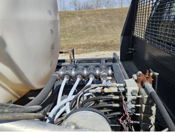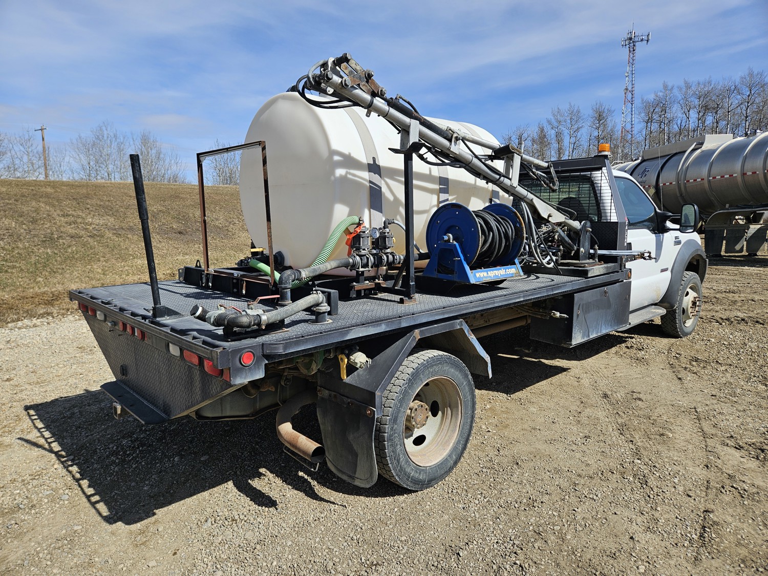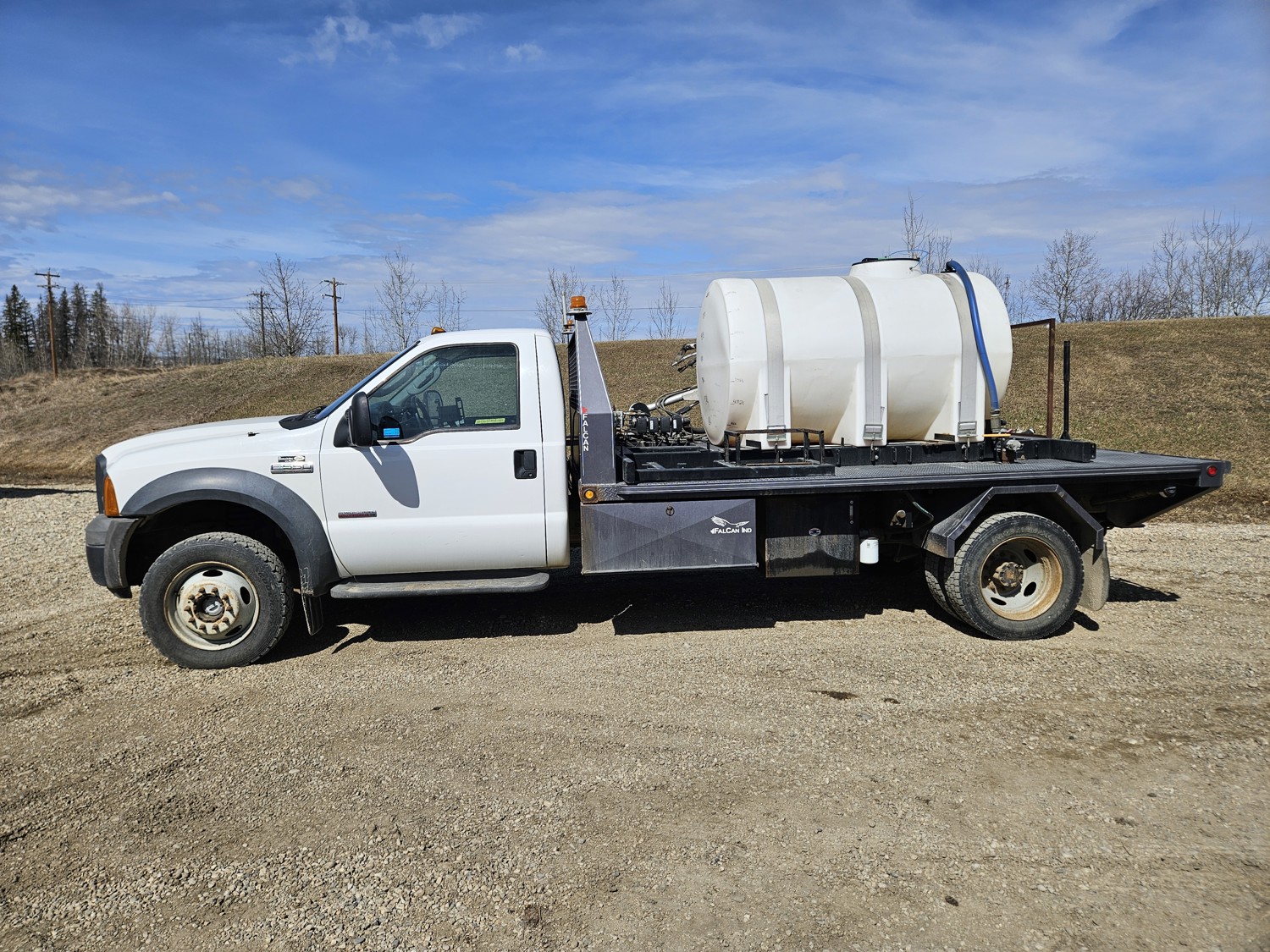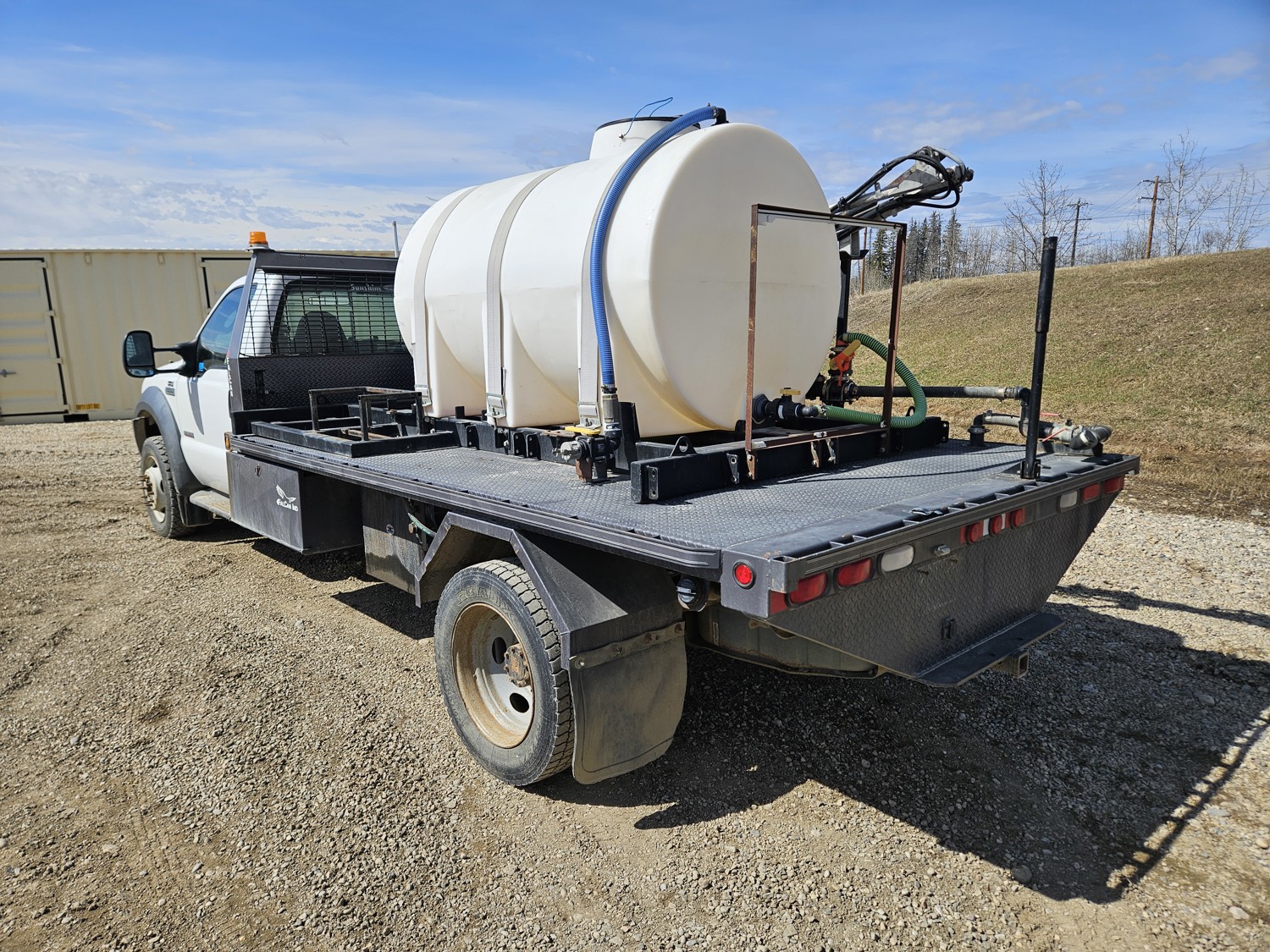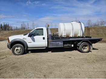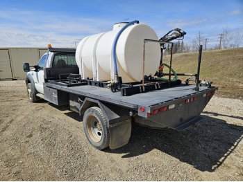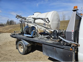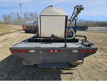 6.0L V8 diesel engine, automatic transmission, 13 ft x 8 ft Falcan deck, 15 ft spray boom, 2010 poly tank, hydraulic pump, hose reel, tool boxes, 225/70R19.5 tires