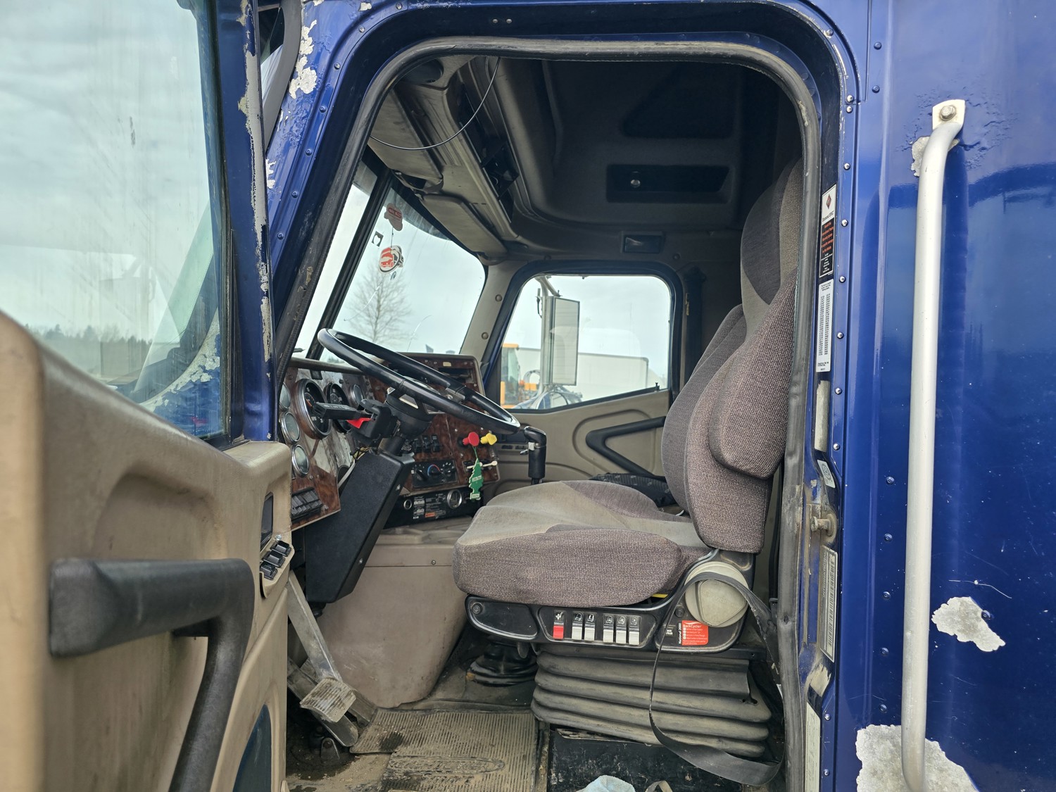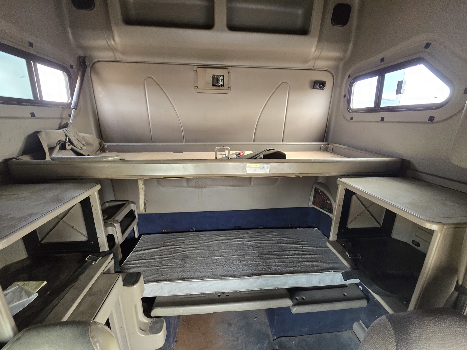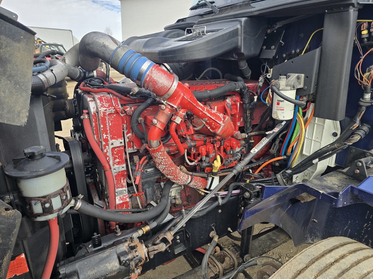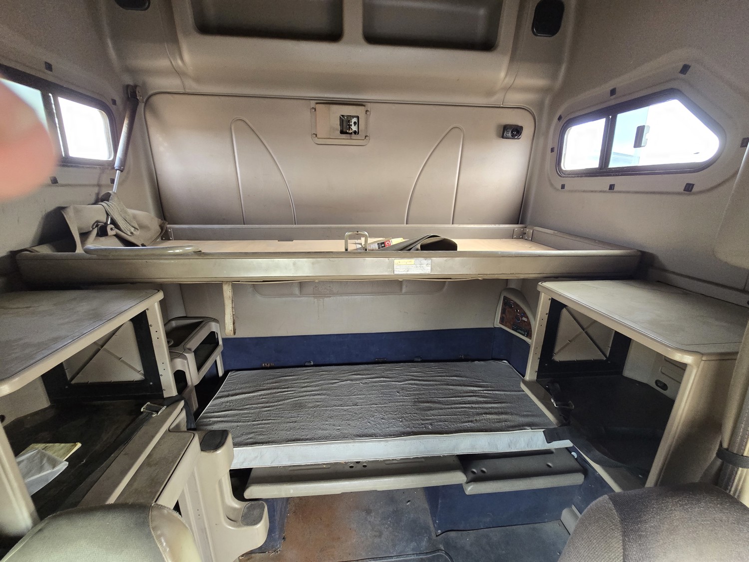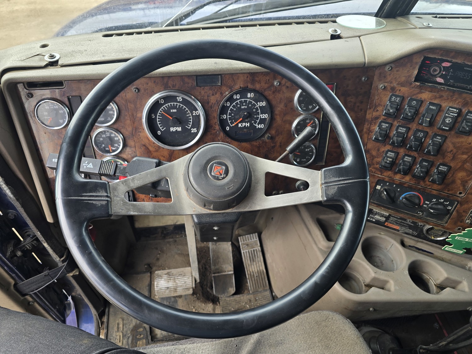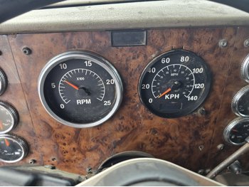 Cummins ISX15 15 L 6 cylinder engine, engine block heater, Eaton Fuller 18 speed manual transmission, high rise 62 inch sleeper, bunk beds, A/C, cruise control, air ride seats, stereo, aluminum moose bumper, air ride cab, air ride suspension, 12,000 lb front axle, 40,000 lb rear axles, diff lock, 218 inch WB, all aluminum wheels, 11R24.5 tires
