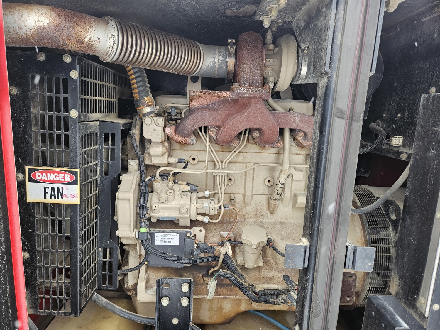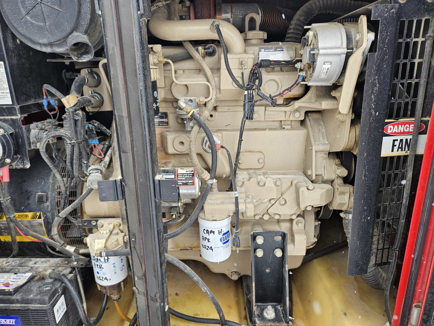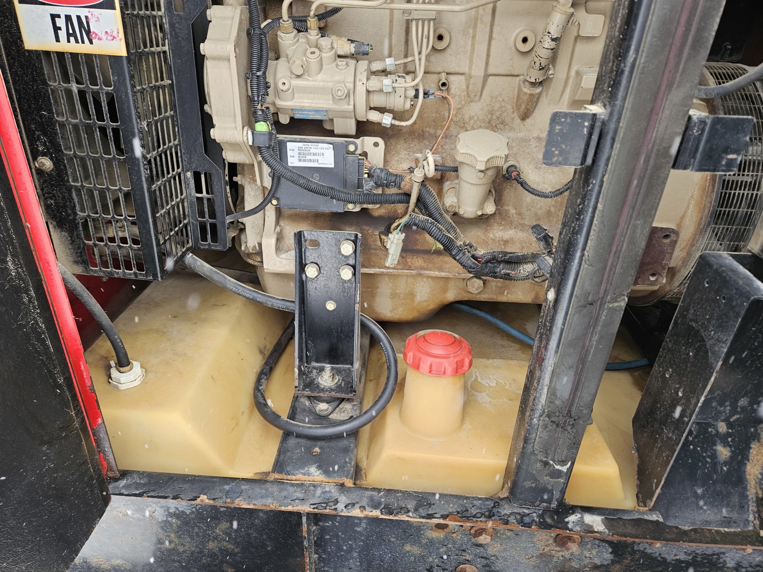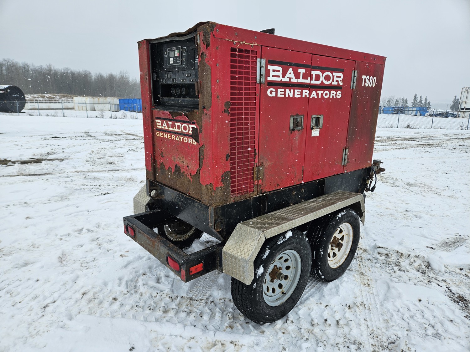 John Deere 4.5L 4 cylinder diesel engine, Baldor TS80T 60 KVA generator, T/A, torsion suspension, pintle hitch, 225/70R15 tires