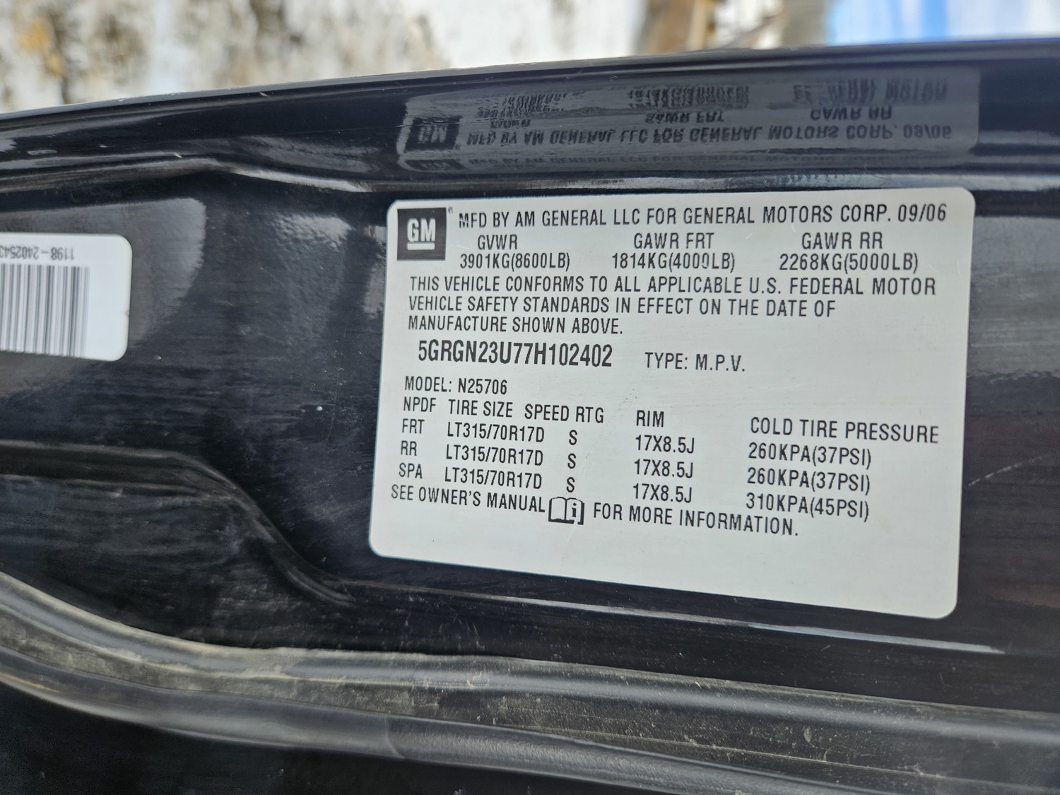 478 2007 Hummer H2 4X4 Sport Utility Vehicle