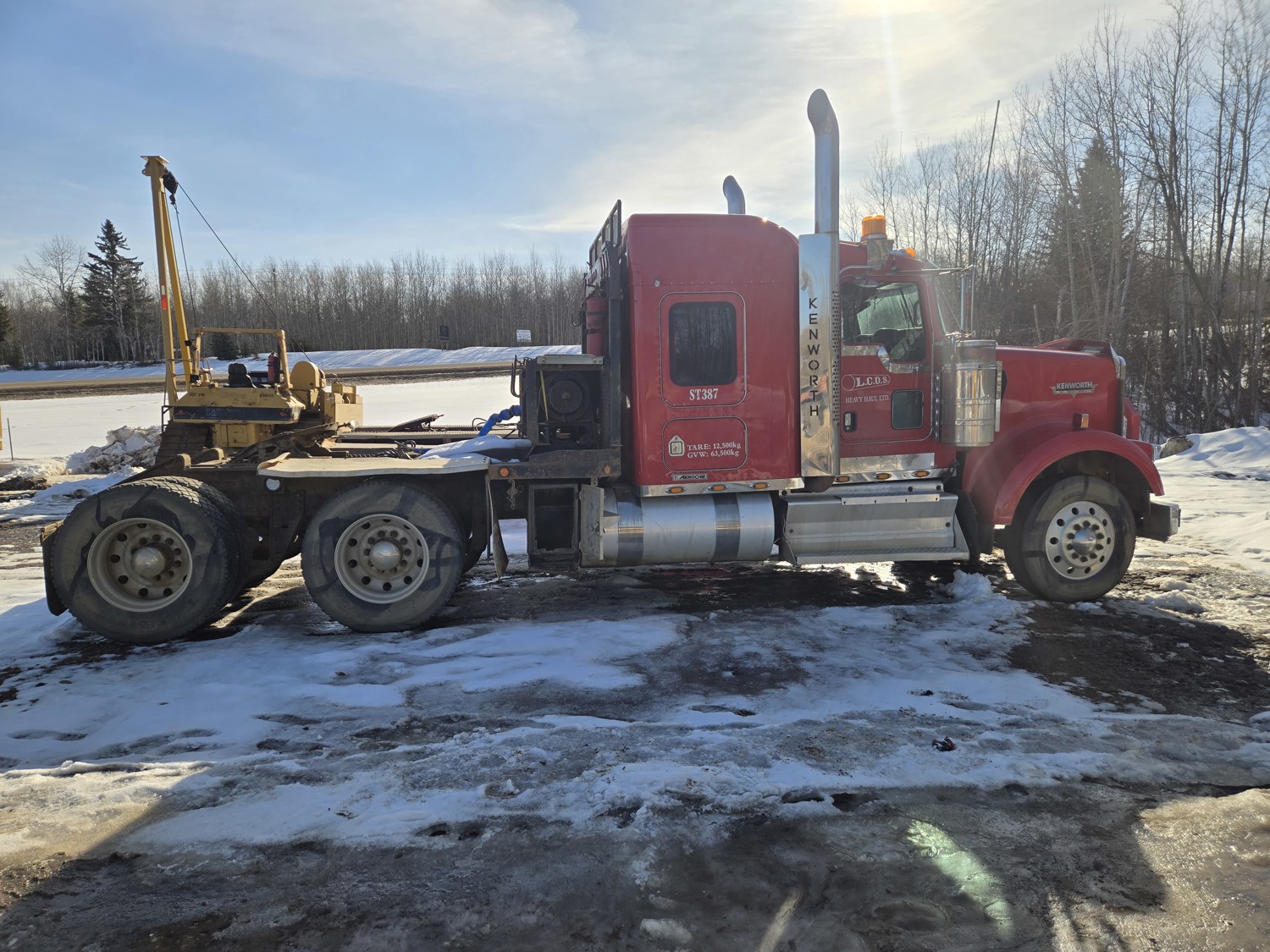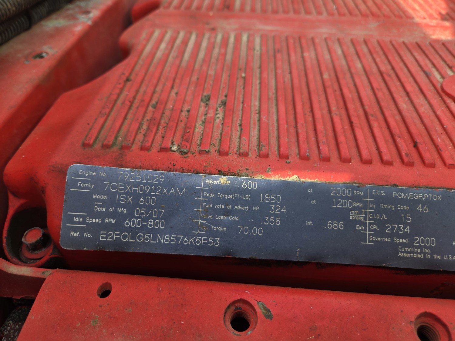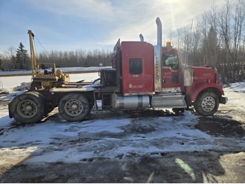 Cummins ISX600 15 6 cylinder 600 HP engine, Eaton Fuller 18 speed manual transmission, mid rise 54 inch sleeper, A/C, leather interior, air ride driver seat, radio, hydraulic wet kit, headache rack, Tulsa hydraulic winch, air ride suspension, 13,200 lb front axle, 46,000 lb rear axles, full lockers, 4:10 ratio, all aluminum wheels, 11R24.5 tires