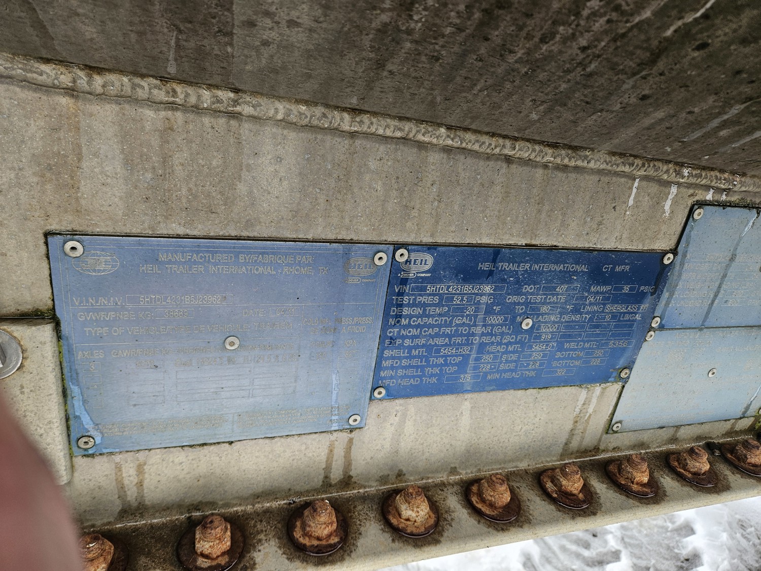 TC407 code, air ride, 2 compartment, 10000 gallon capacity, belly mount Bowie hydraulic pump, digital monitor, aluminum wheels, ladder, catwalk, brand new jacks, tri drive truck compatible, 11R24.5 tires