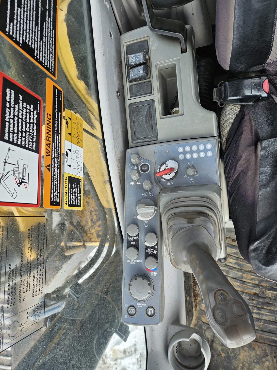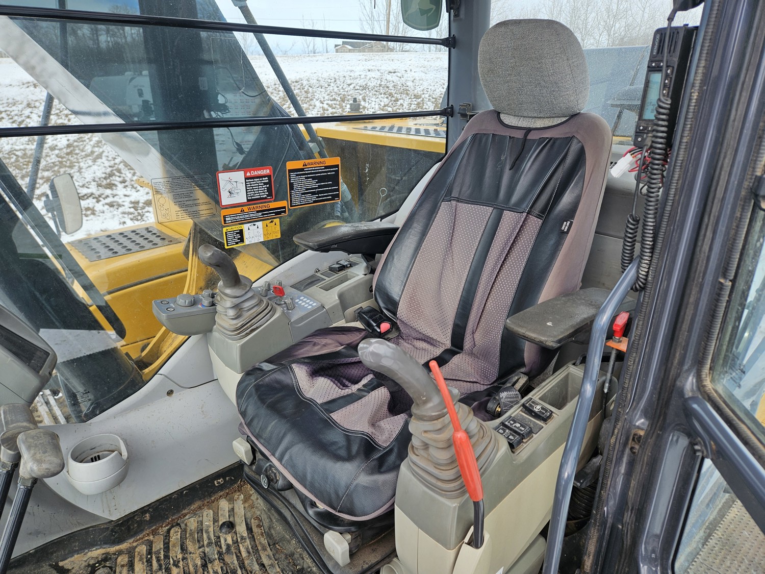 Enclosed cab, A/C, heated seat, 64 inch smooth bucket, hydraulic thumb, 12 Ft stick, catwalks, 35" dig bucket, triple grousers