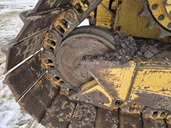 Enclosed cab, A/C, air ride seat, Cat C6.6 Acert diesel engine, powershift transmission, cab screens, 13 Ft 3 inch 6 way angle dozer, winch, 34 inch track pads, single grousers, ice cleats