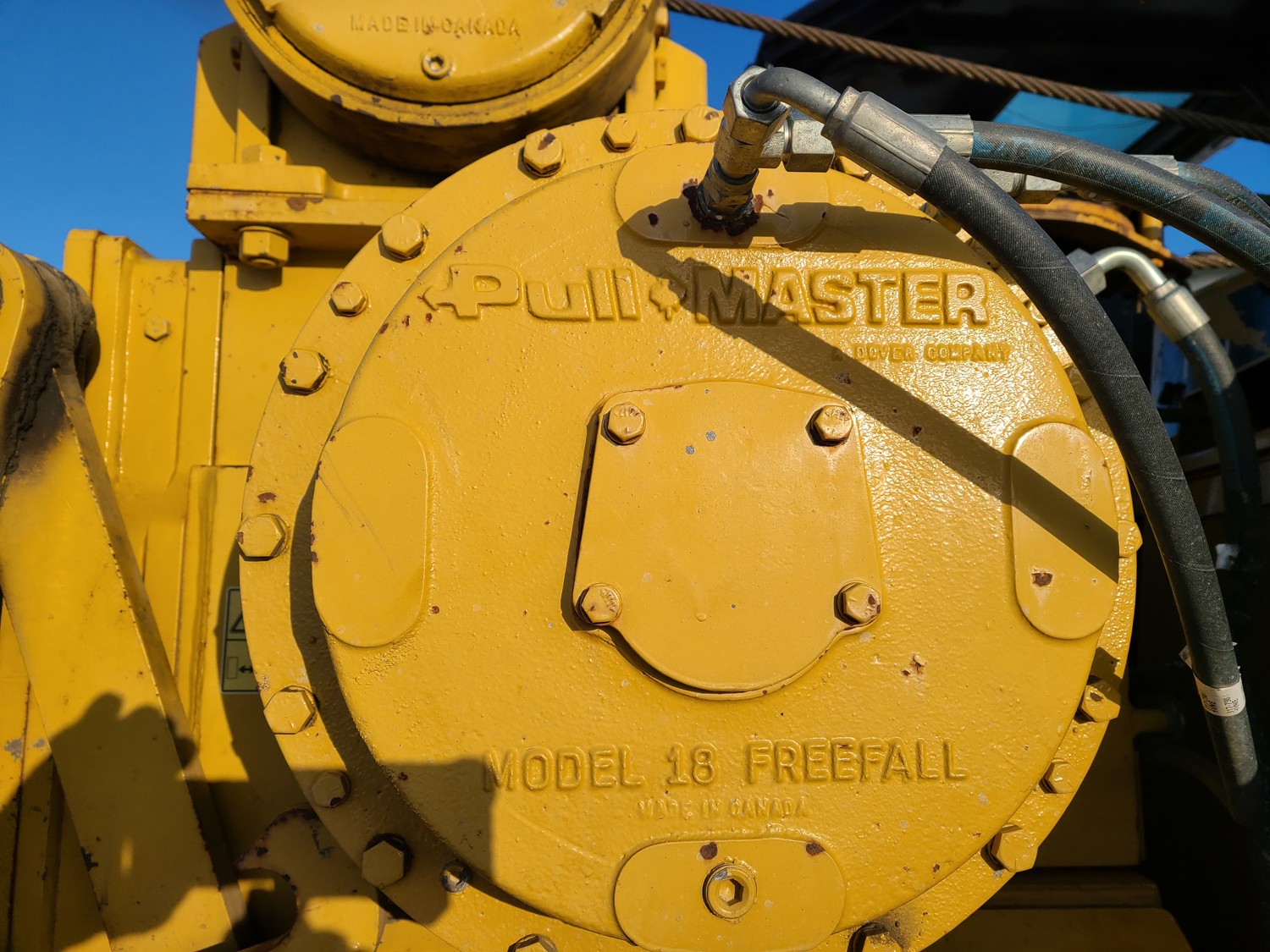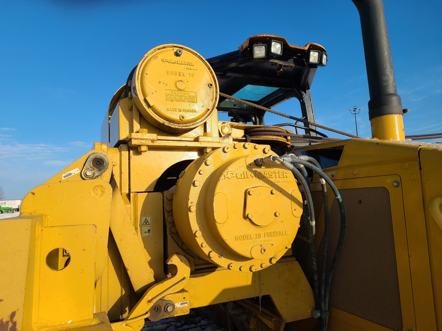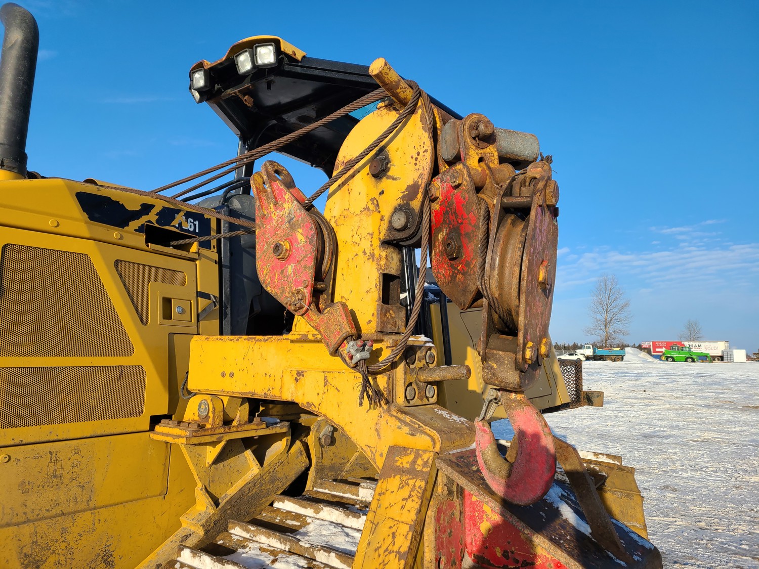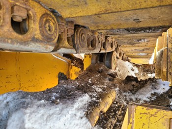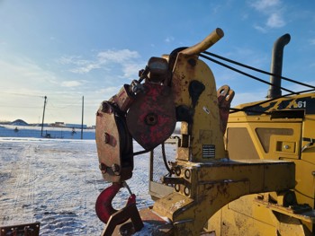 Open station, C6.6 diesel engine, positive air shutoff, hydro transmission, differential steering, 18 ft boom, Pull Master winch, 30 inch track pads, single grousers, ice cleats,