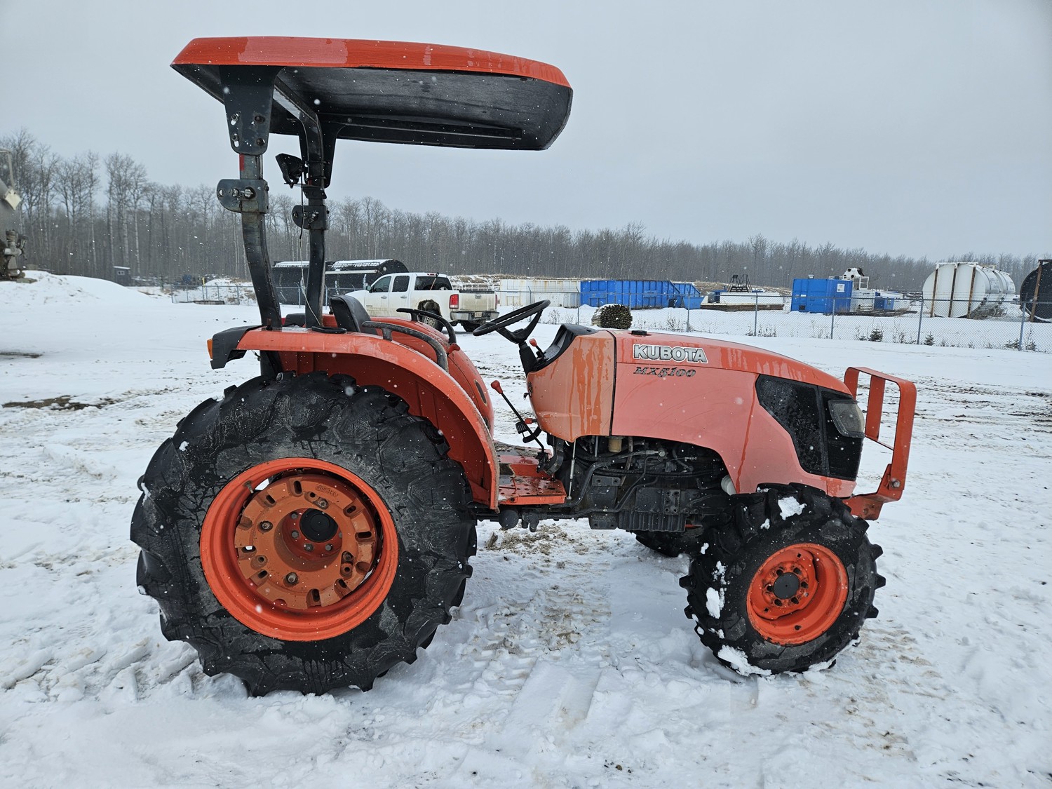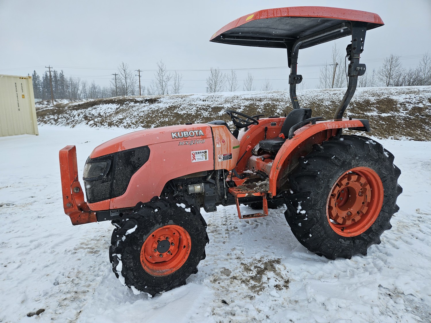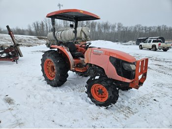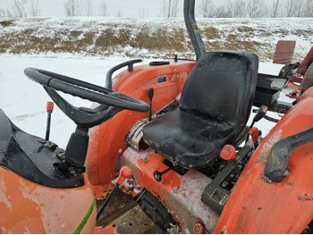 Kubota 2.4 L 4 cylinder diesel engine, 8 speed partial synchro transmission, open station platform, 540 PTO, 3 point hitch, rear wheel weights, 7.5-16 front tires, 14.9-26 rear tires