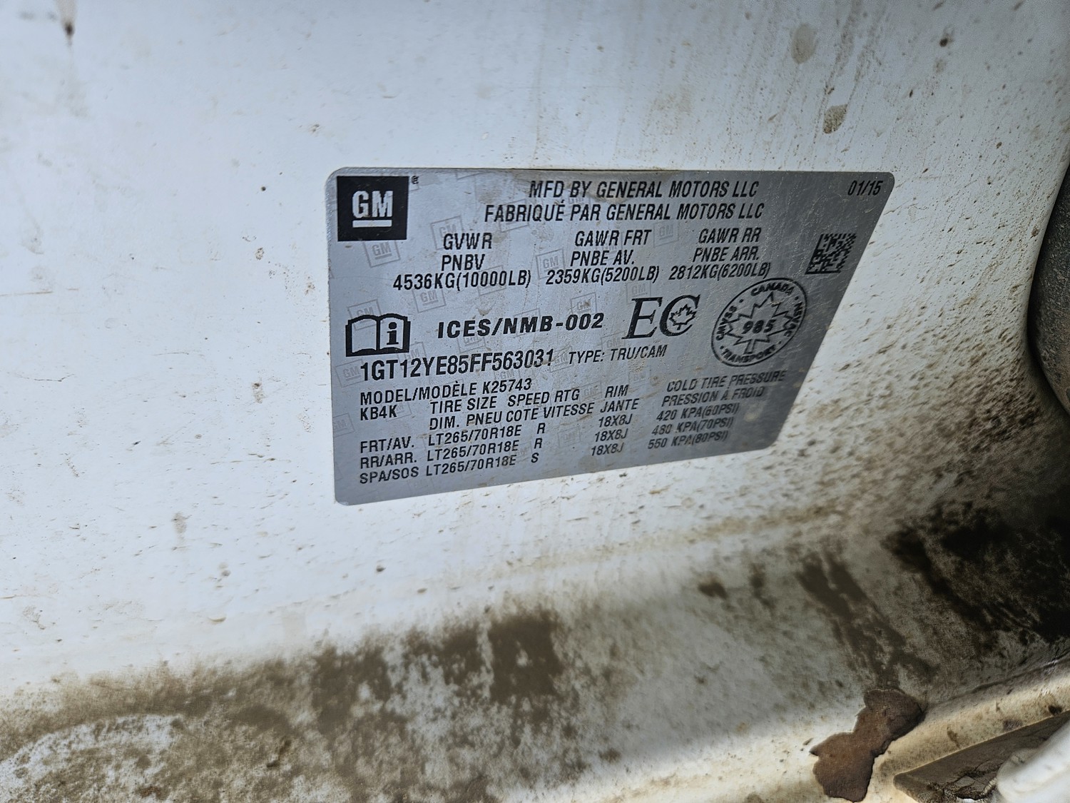 - 1GT12YE85FF563031