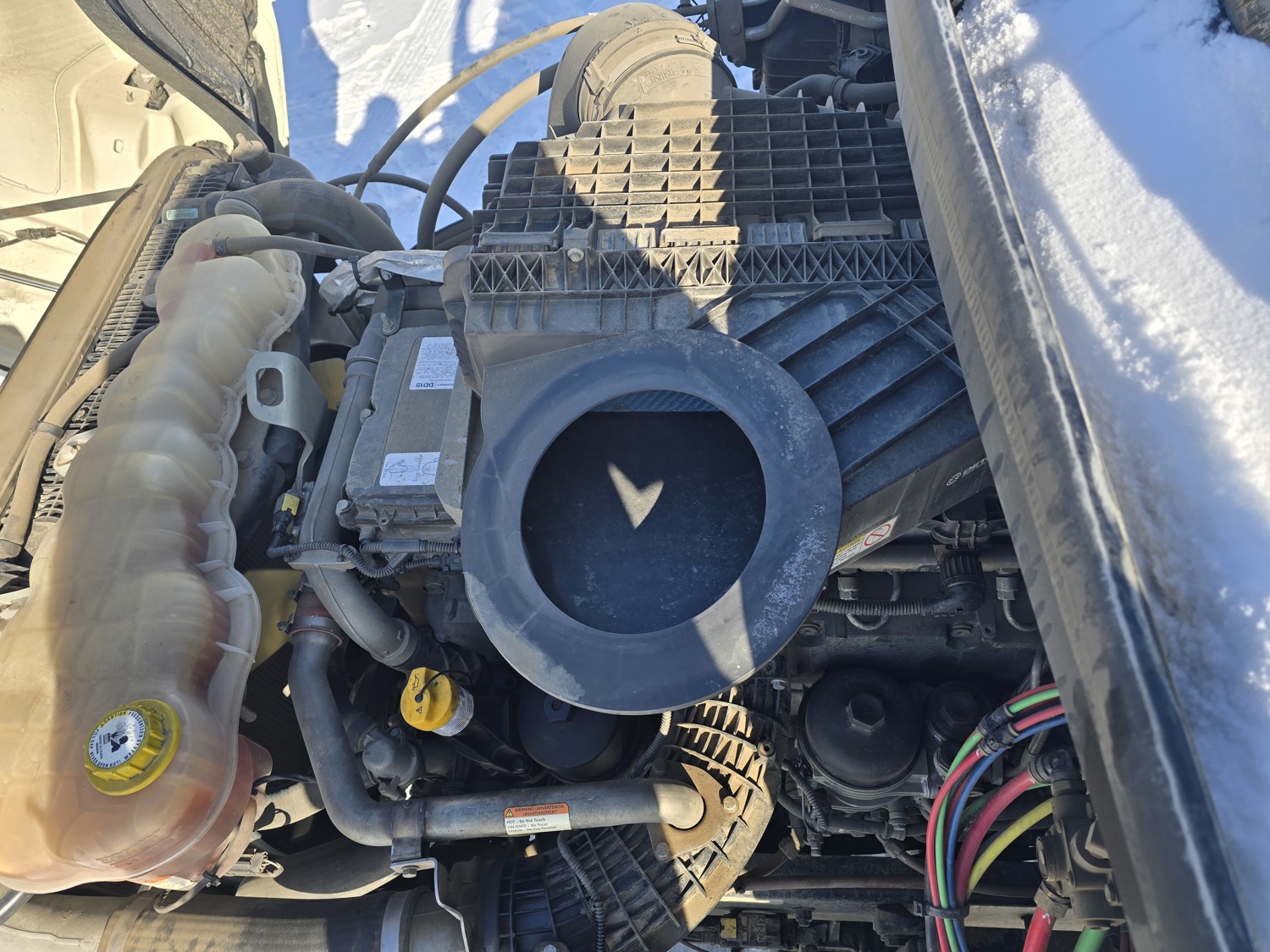 Detroit DD15 14.8 L 6 cylinder 505 HP diesel engine, DEF required, engine block heater, DT15-1550 12 speed automatic transmission, A/C, cruise control, air ride driver seat, stereo, Bendix blind spot detection, Airliner air ride suspension, 12,000 lb front axle, 21,000 lb rear axles, diff lock, 3.08 ratio, 174 inch WB, all aluminum wheels, 11R22.5 front tires