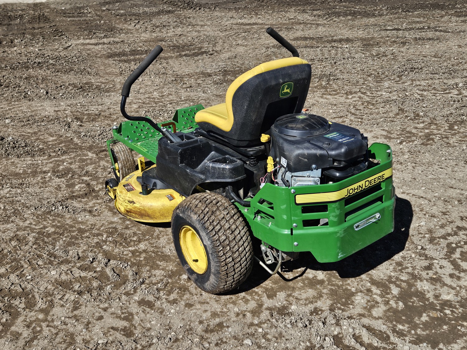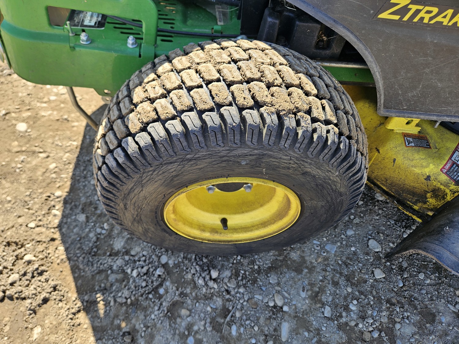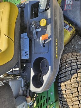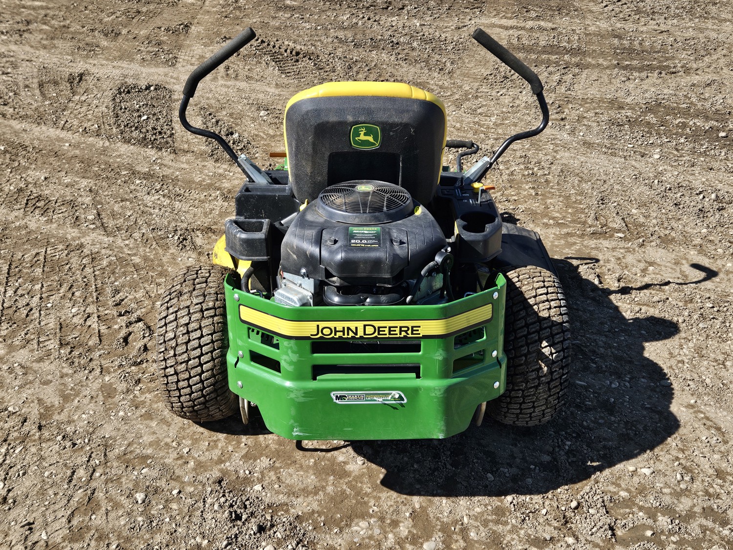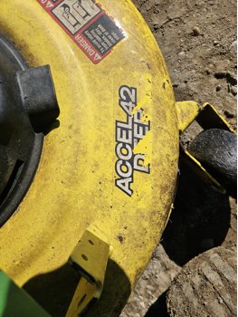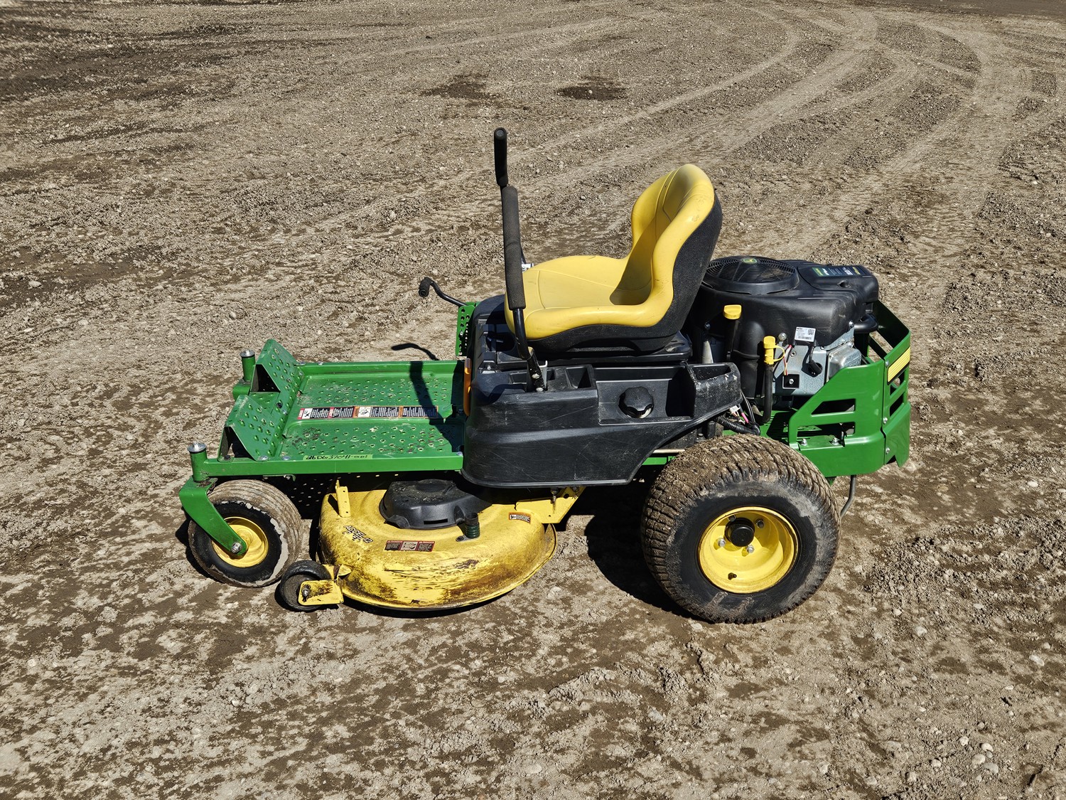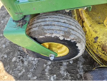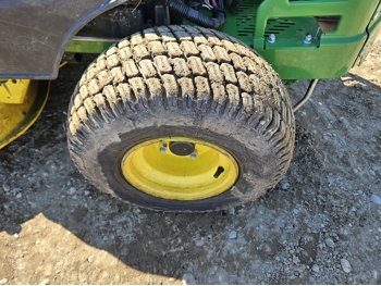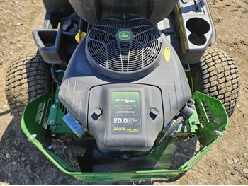 42 inch mower deck, 20 HP John Deere gas engine, hydrostatic transmission, electric start, 11x4.00-5 front tires, 18x8.5-8