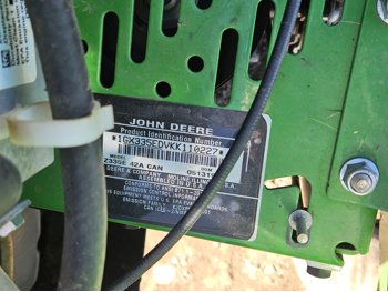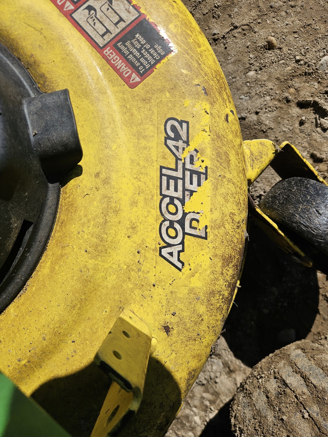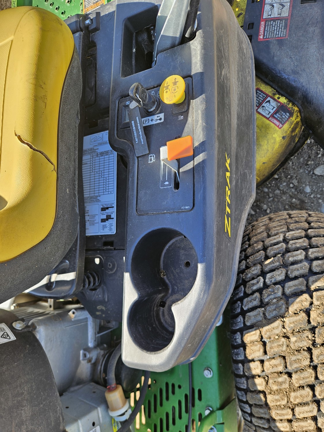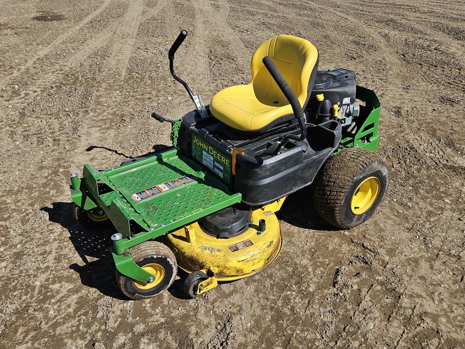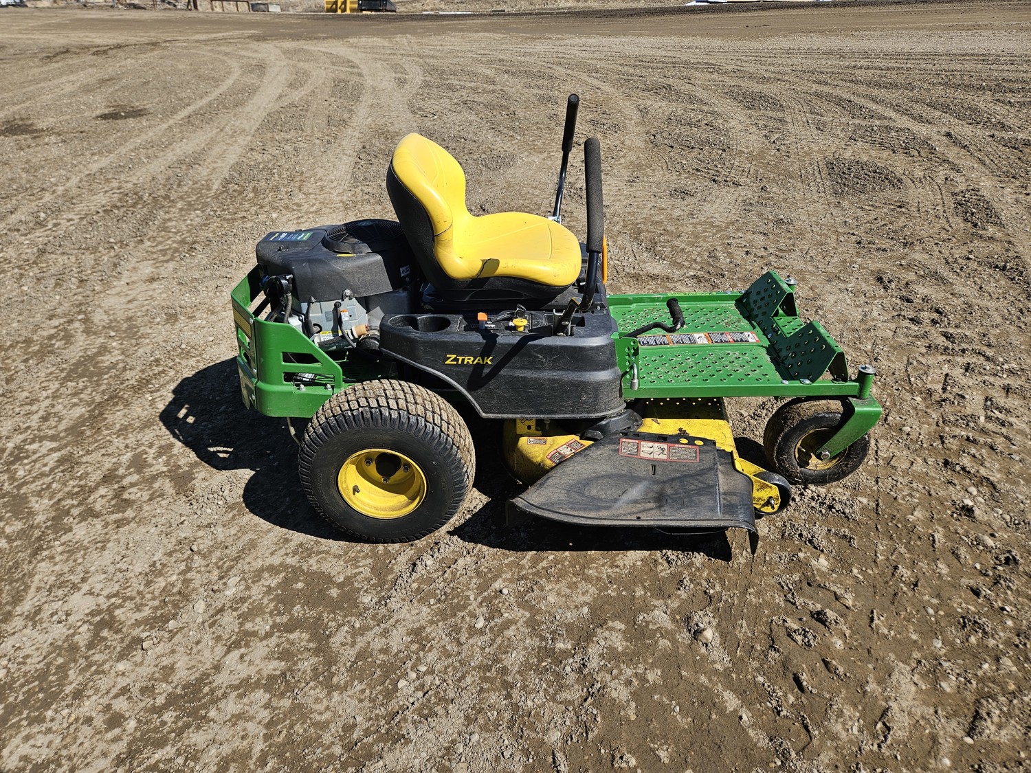 42 inch mower deck, 20 HP John Deere gas engine, hydrostatic transmission, electric start, 11x4.00-5 front tires, 18x8.5-8