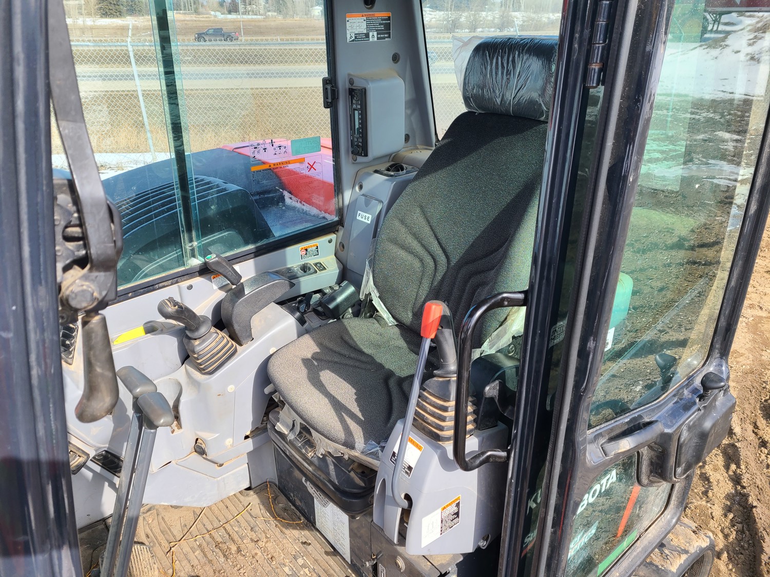 Enclosed cab, A/C, engine heater, cab screens, comes w/ 48" smooth bucket, 26" dig bucket, 36" ripper, and mounting plate, third hydraulic valve with lines running down boom, 39 inch dig bucket, manual coupler, hydraulic thumb, swing boom, offset stick, backfill blade, 18 inch rubber tracks