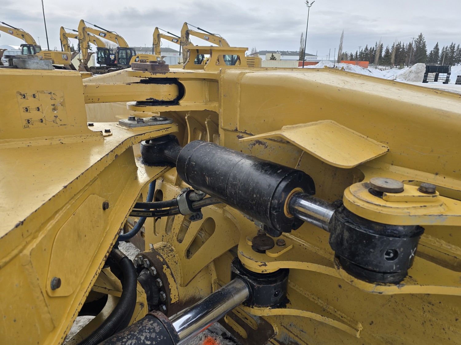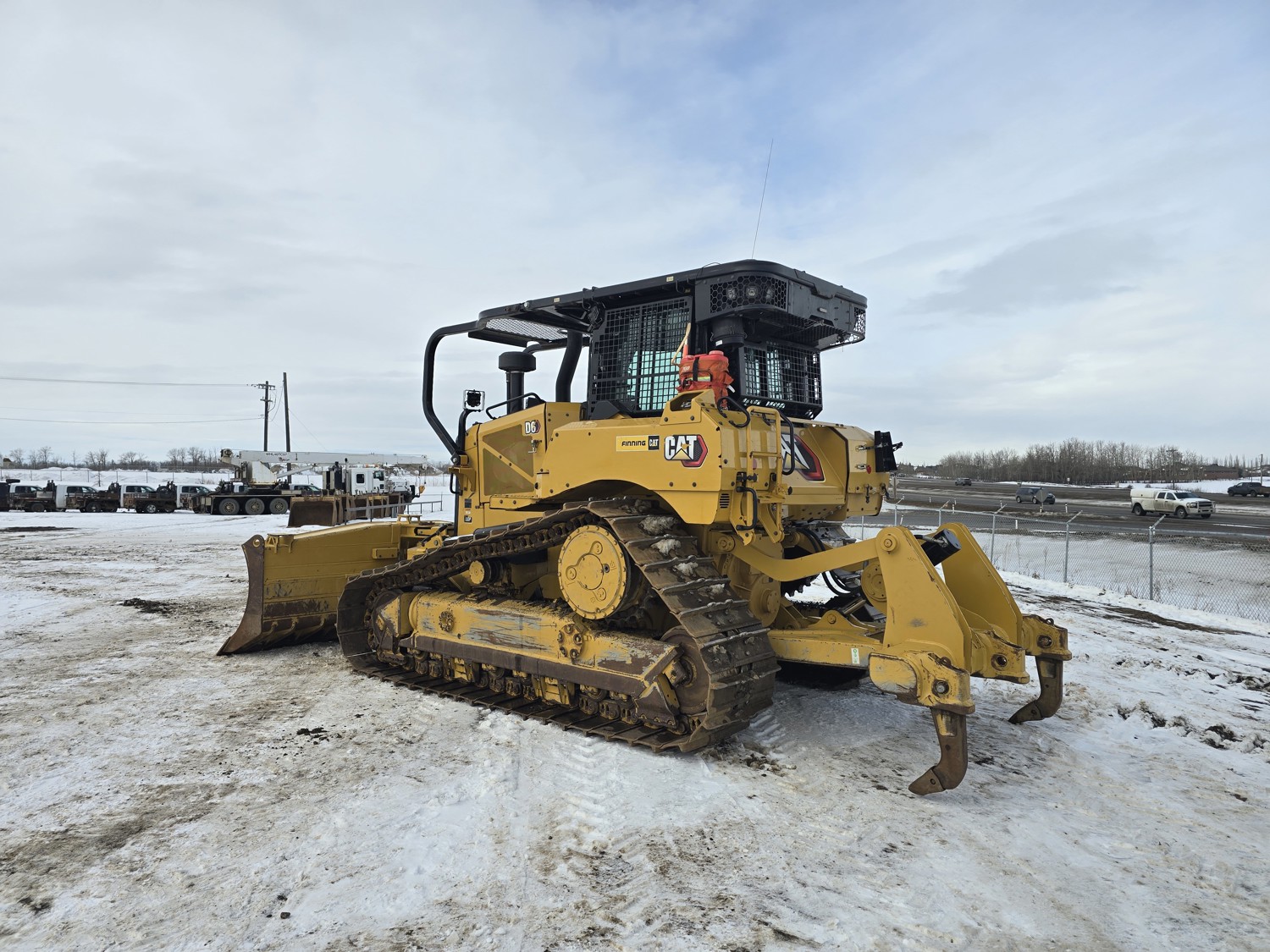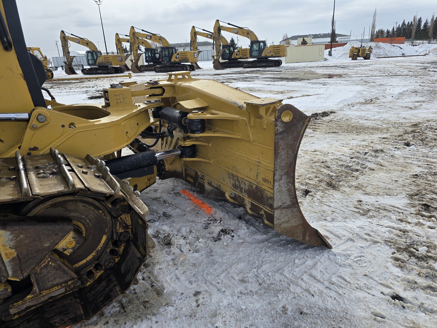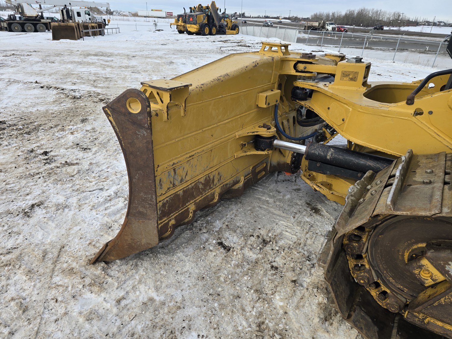 Enclosed cab, A/C, air ride seat, rear view cameras, diesel engine, positive air shutoff, Espar engine heater, powershift transmission, 13 Ft 6 way angle dozer, double shank ripper, 30 inch track pads, single grousers, ice cleats