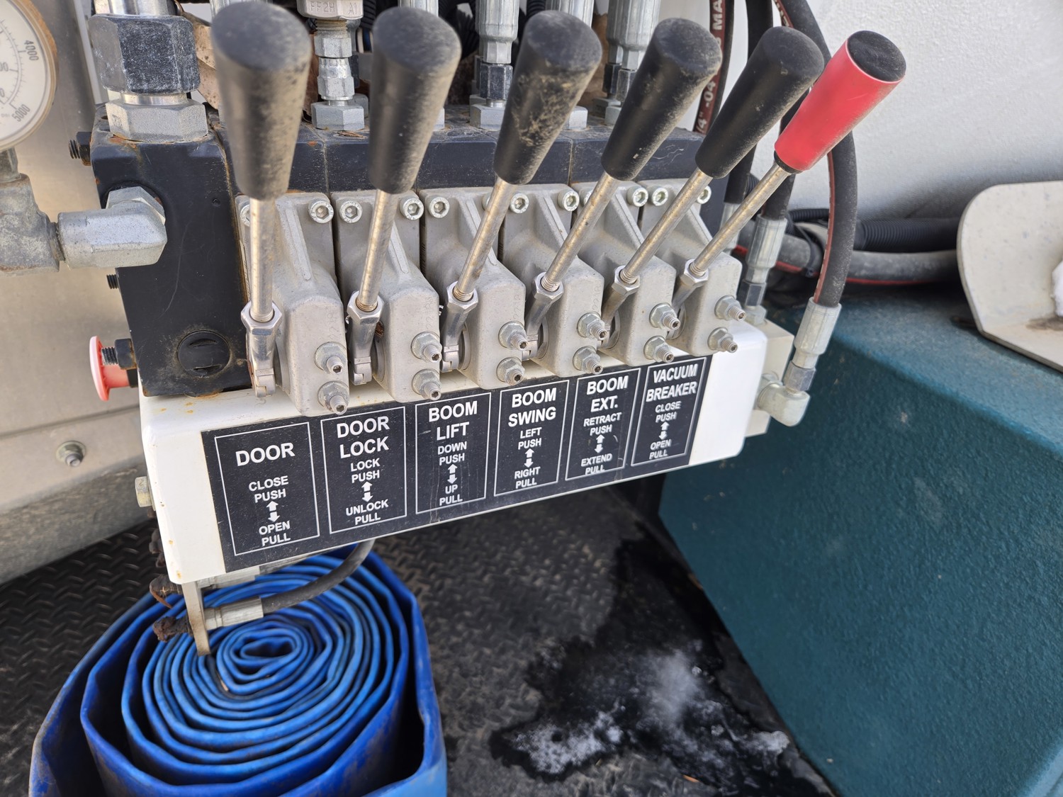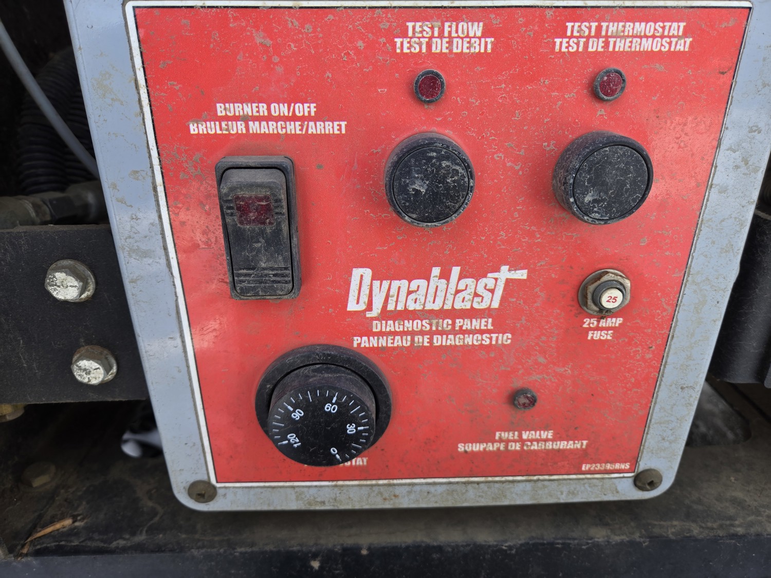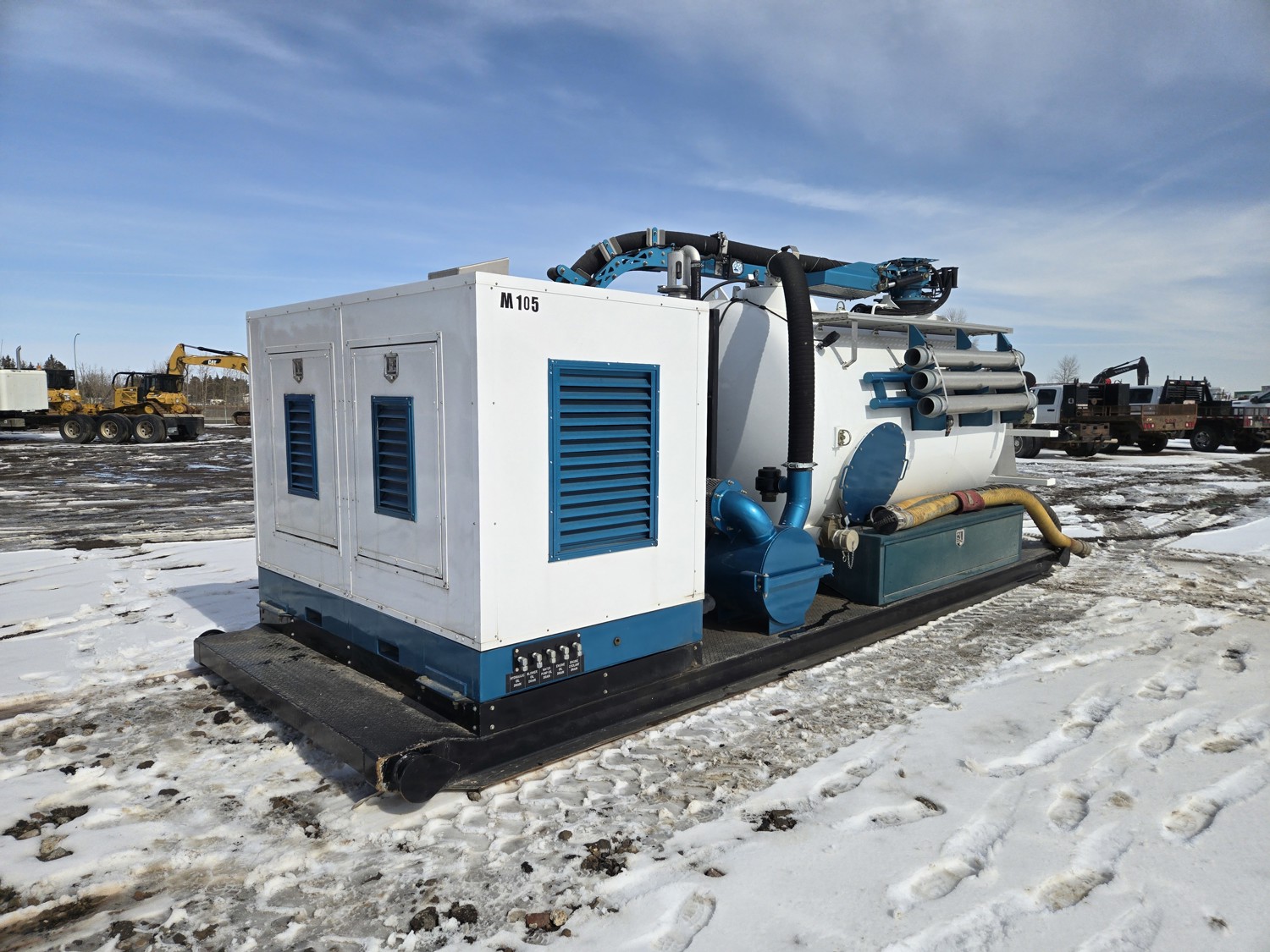 Remote controlled, Cummins 4 cylinder diesel engine, Tuthill 5514-A3L3CV2 hydraulic driven blower, dual compartment tank with level indicator, debris tank capacity 6.5 cu yds, 720 US gallon water tank, Dynabuilt diesel fired hot water pressure washer with General pump with 2800 psi, hose with reel, hydraulic hydro vac arm, hydraulic rear clean out door, suction hoses