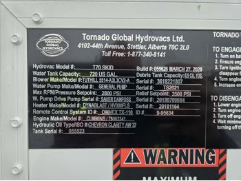 141 2020 Tornado Global Hydrovac T70 Hydro Vac Unit On 21 Ft Skid