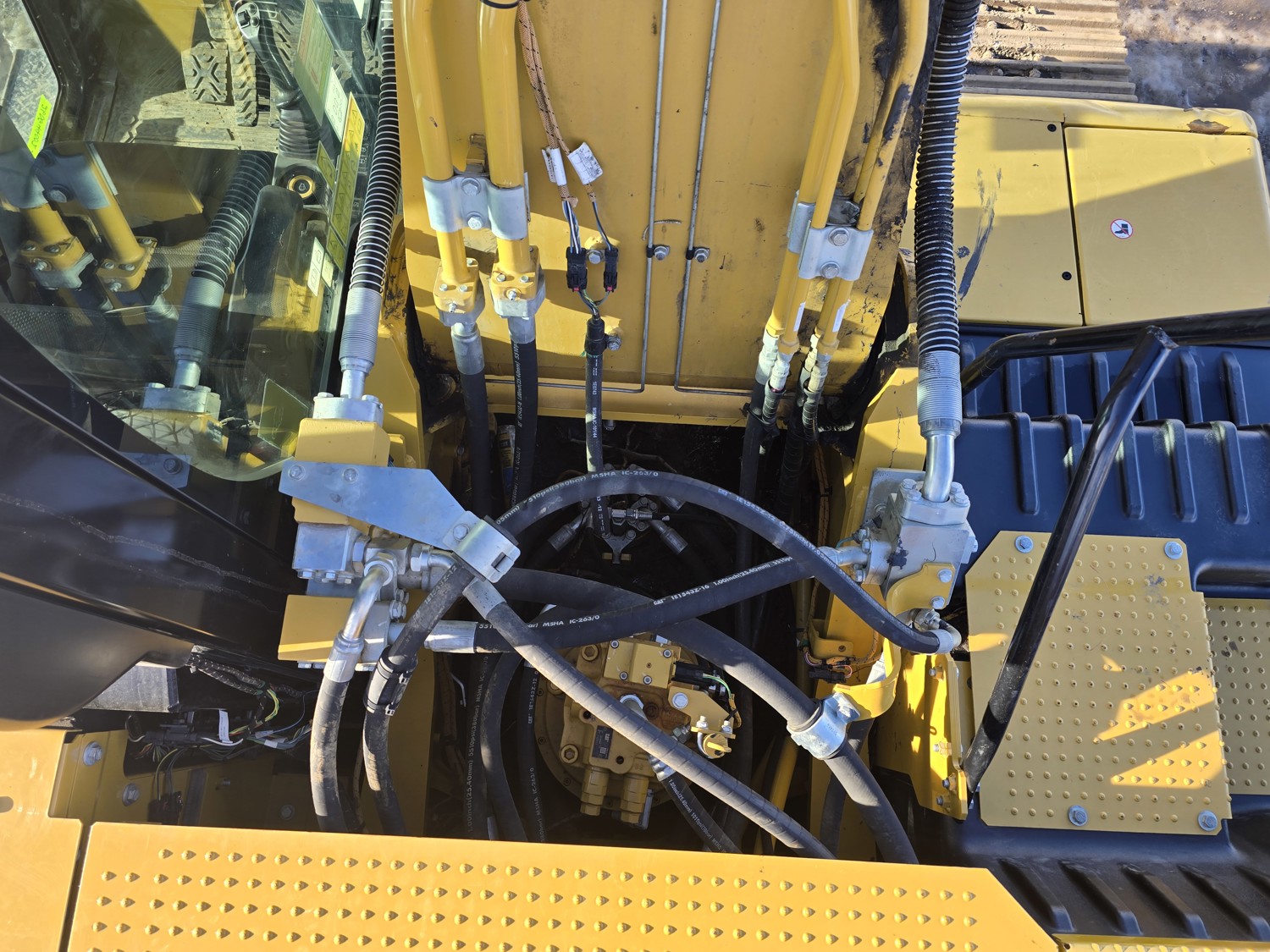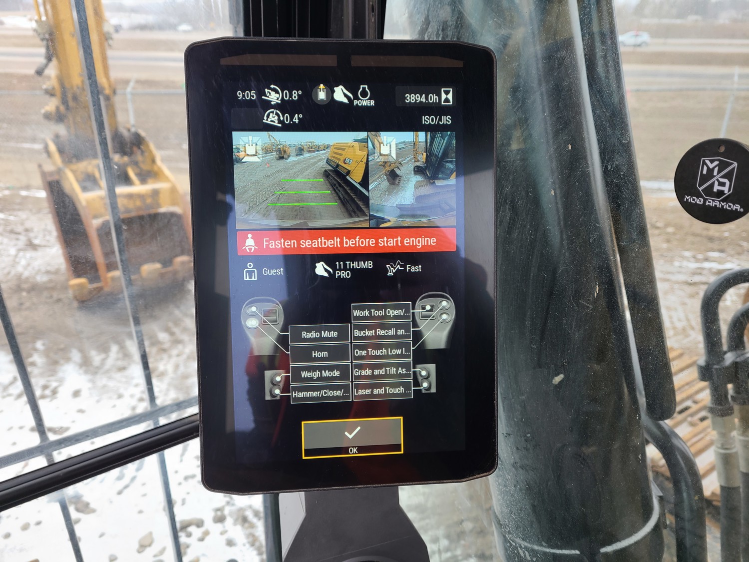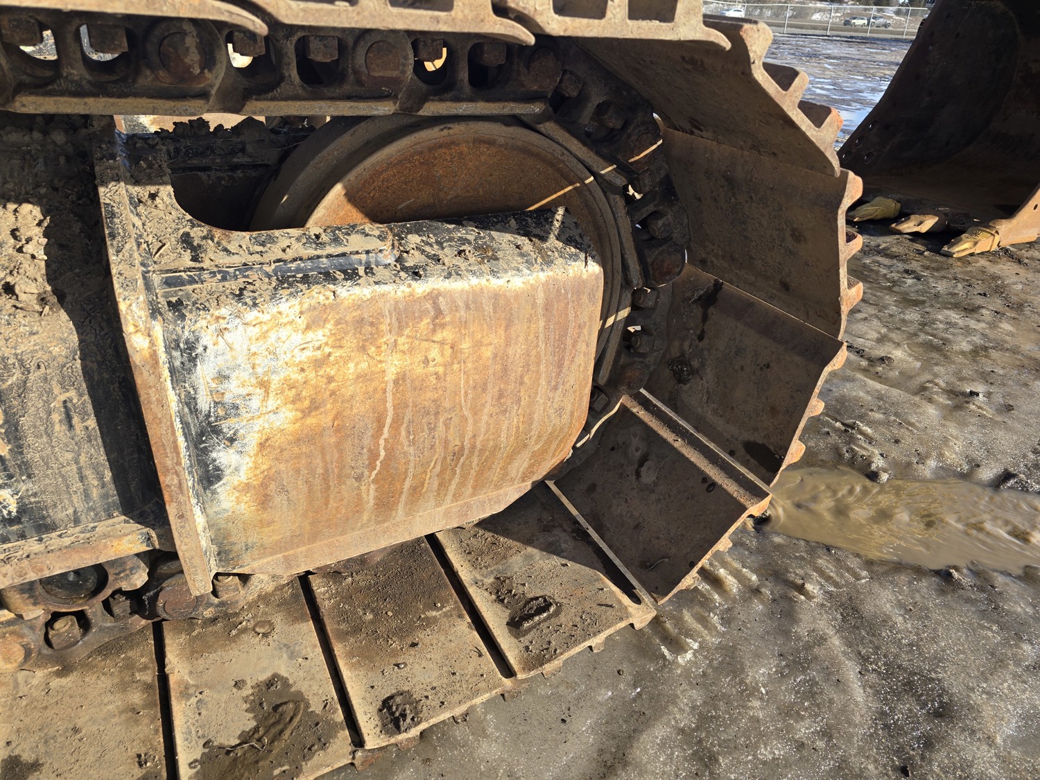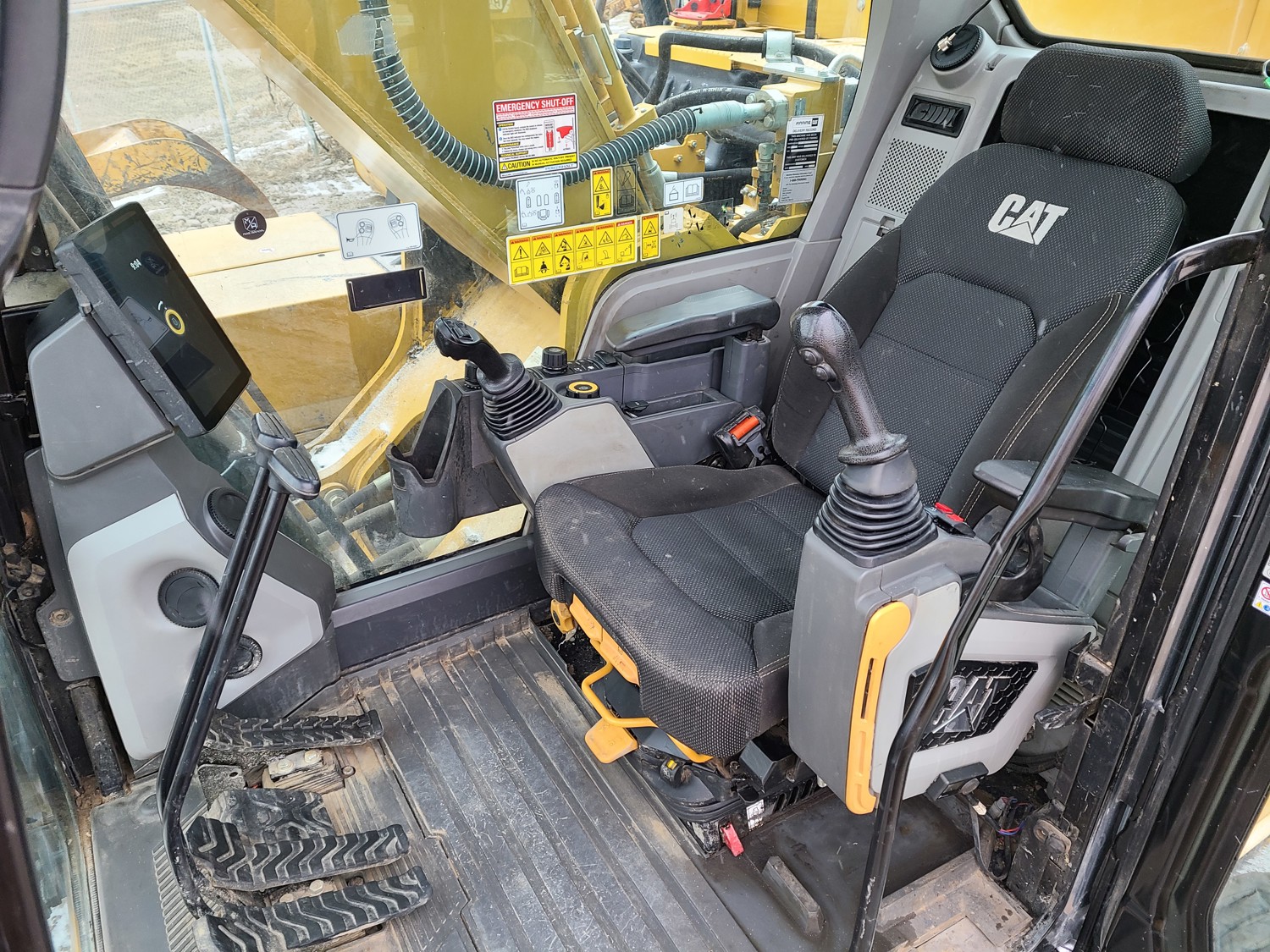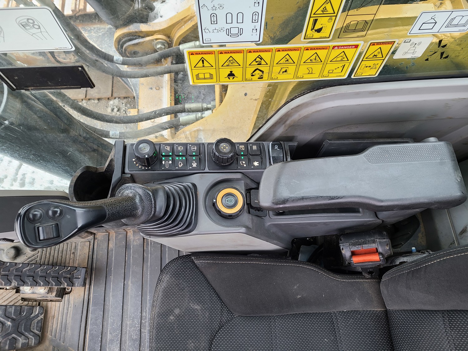 Enclosed cab, A/C, rear view cameras, side view cameras, positive air shutoff, 42 inch dig bucket, manual coupler, hydraulic thumb, 1 auxiliary hydraulics, 10 Ft 8 inch stick, 31.5 inch track pads, triple grousers
