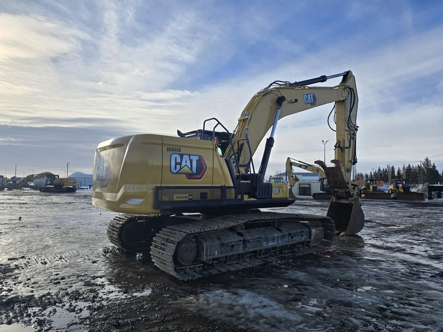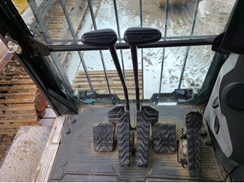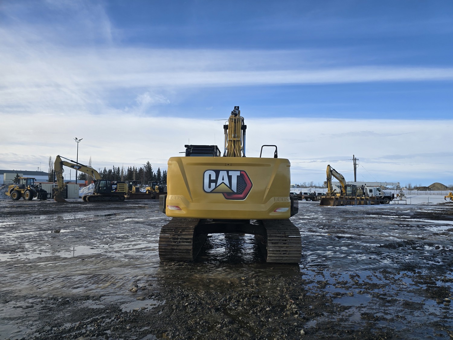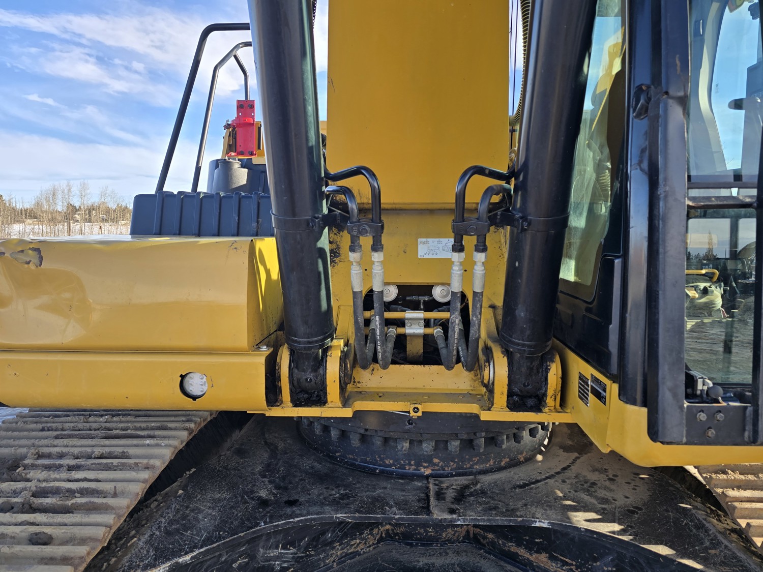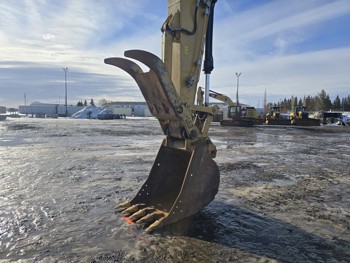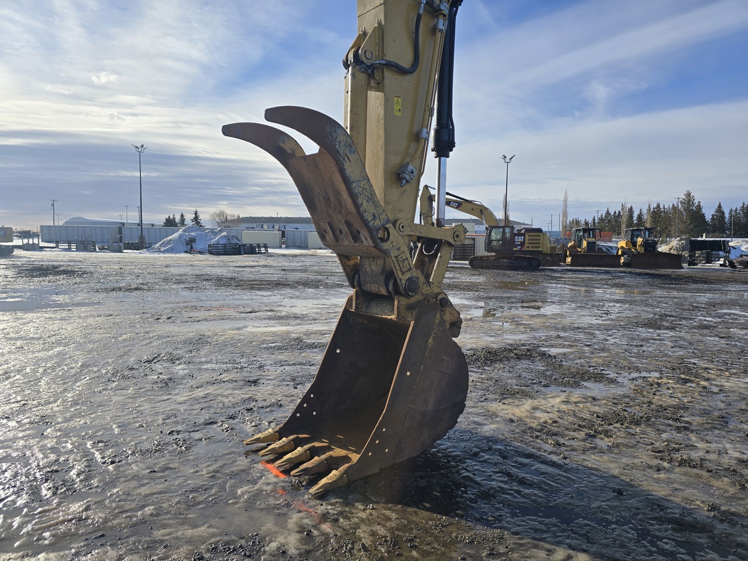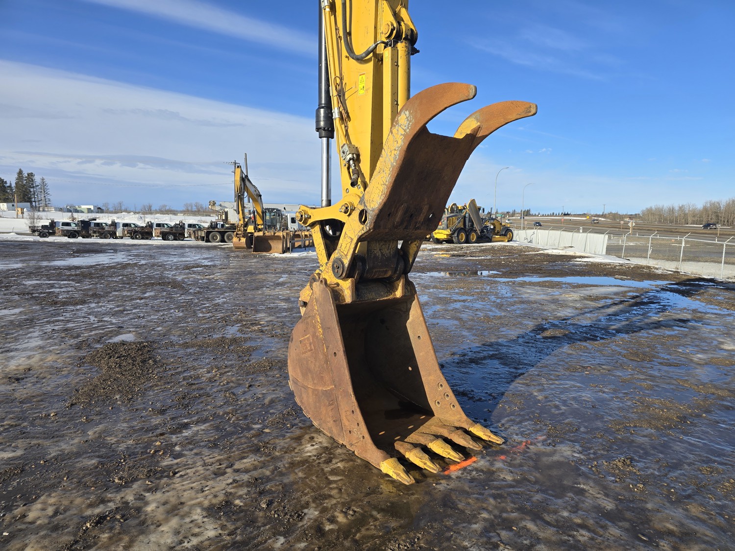 Enclosed cab, A/C, rear view cameras, side view cameras, positive air shutoff, 42 inch dig bucket, manual coupler, hydraulic thumb, 1 auxiliary hydraulics, 10 Ft 8 inch stick, 31.5 inch track pads, triple grousers