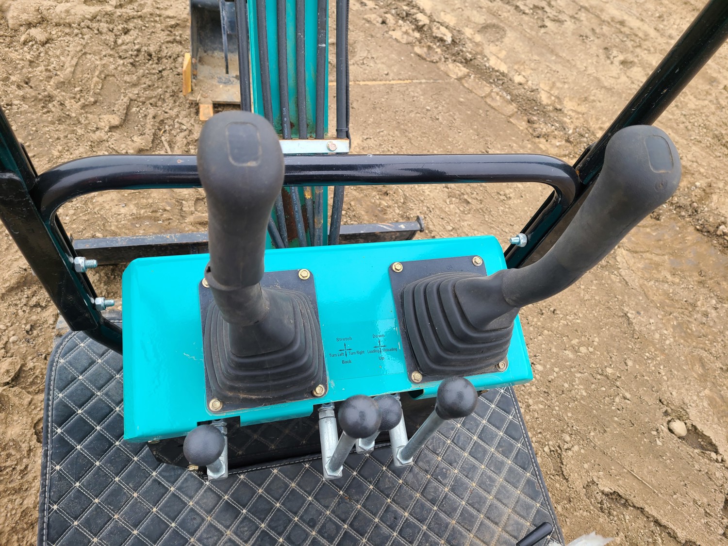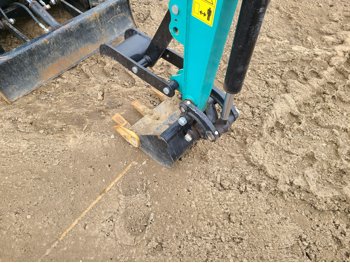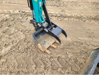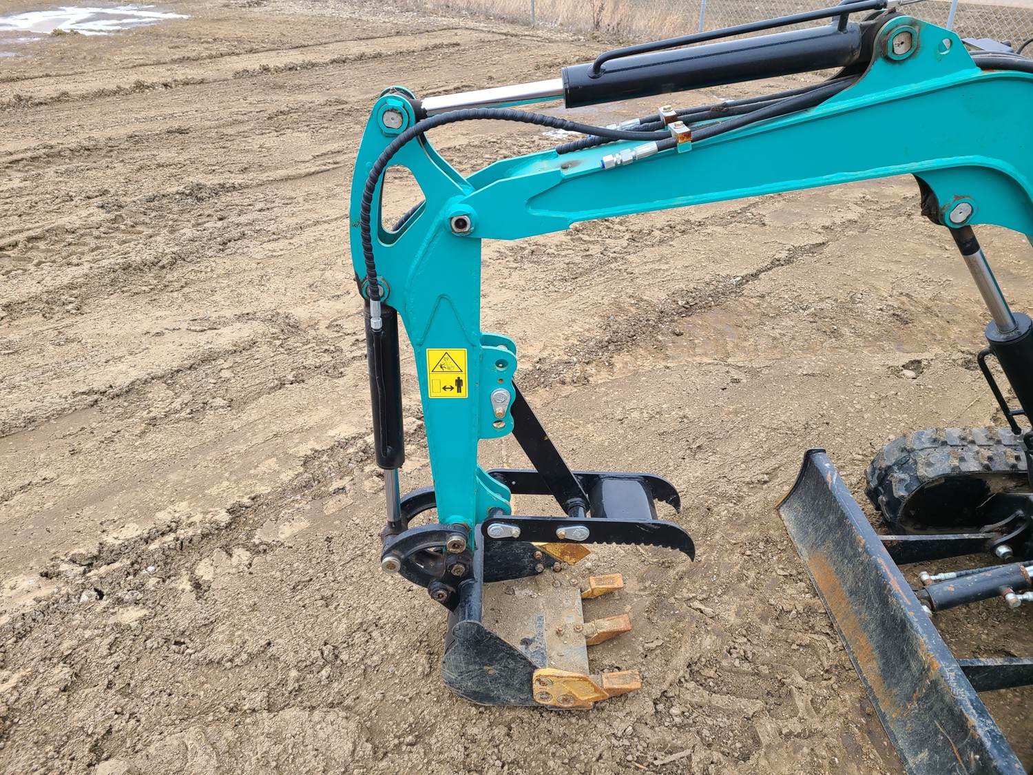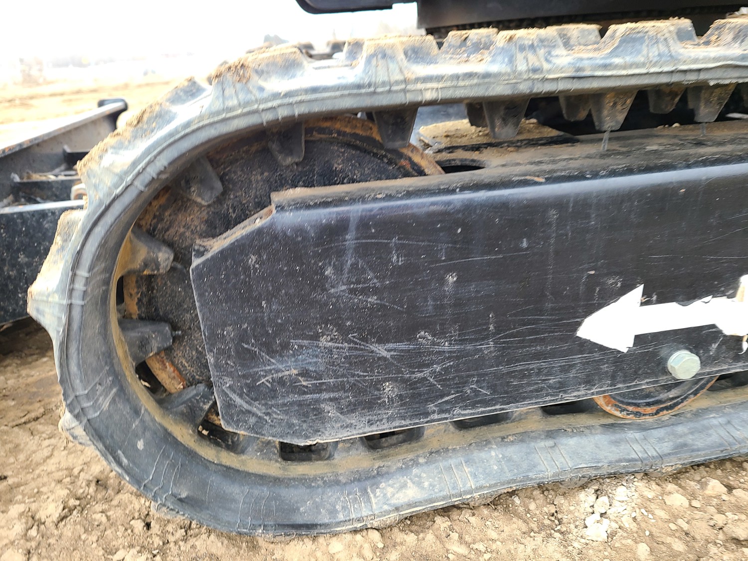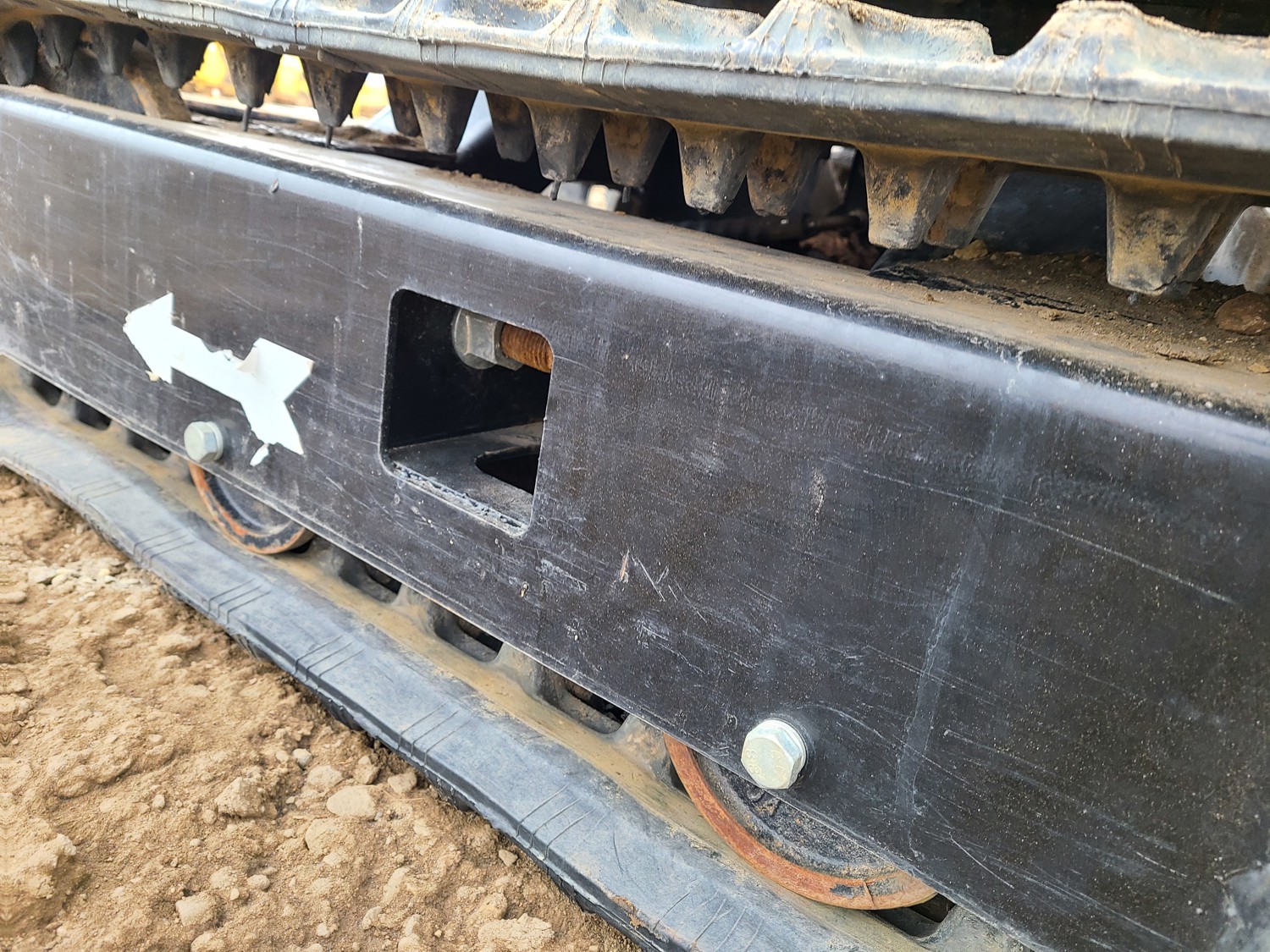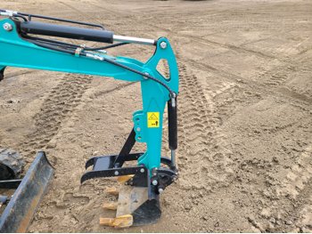 Open station, gas engine, 17 inch dig bucket, manual coupler, manual thumb, backfill blade, 7 inch rubber tracks