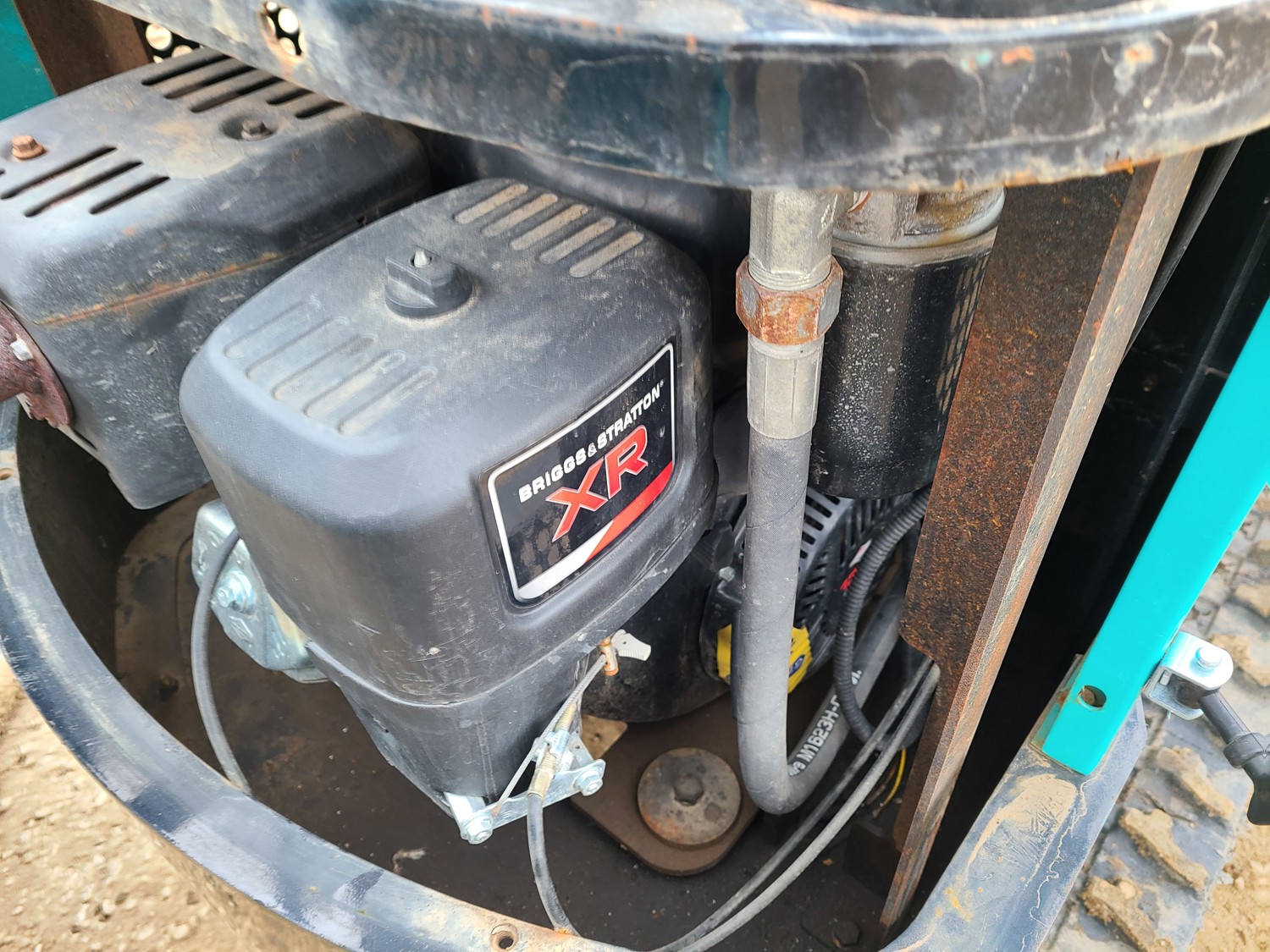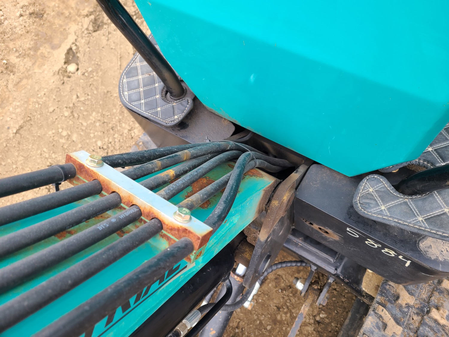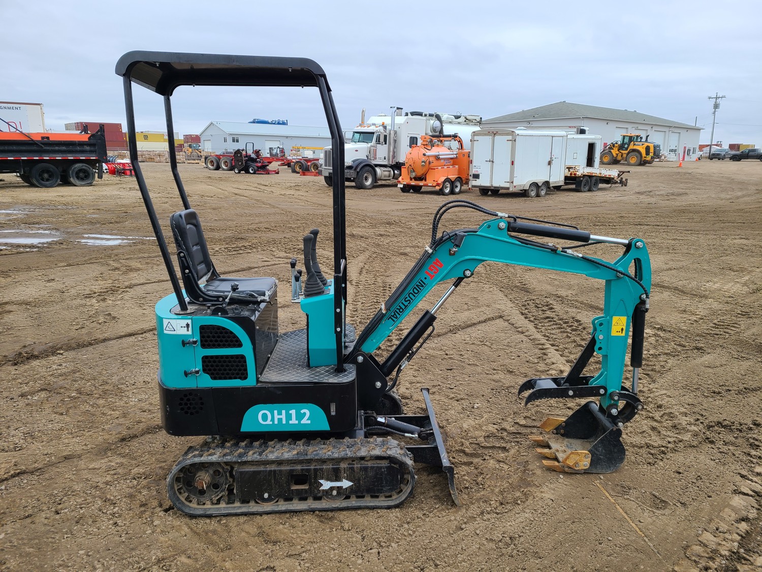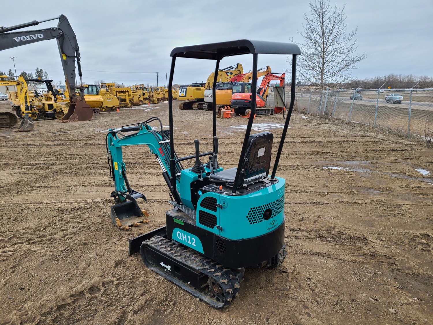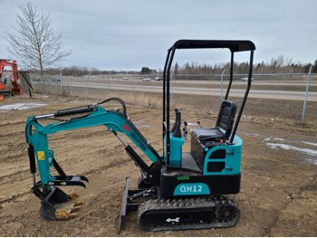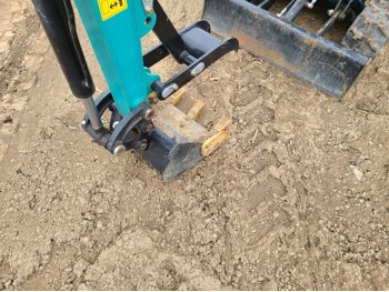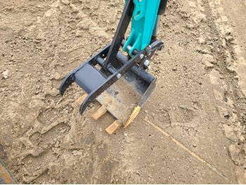 Open station, gas engine, 17 inch dig bucket, manual coupler, manual thumb, backfill blade, 7 inch rubber tracks