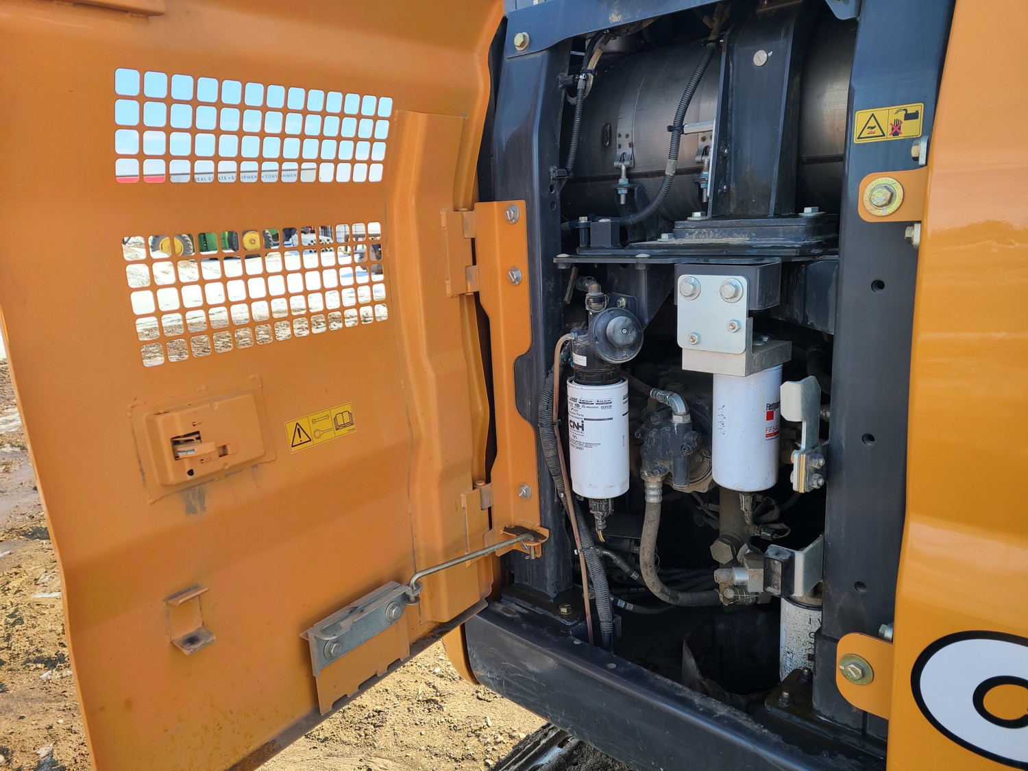 Enclosed cab, A/C, air ride seat, rear view cameras, side view cameras, DEF required, engine heater, cab screens, third valve with hydraulic lines down to bucket, 39 inch dig bucket, hydraulic Q/C coupler, Have a look at the last picture to see extended warranty and planned maintenance program. Check with your local Case Industrial dealer for full details., 24 inch track pads, triple grousers