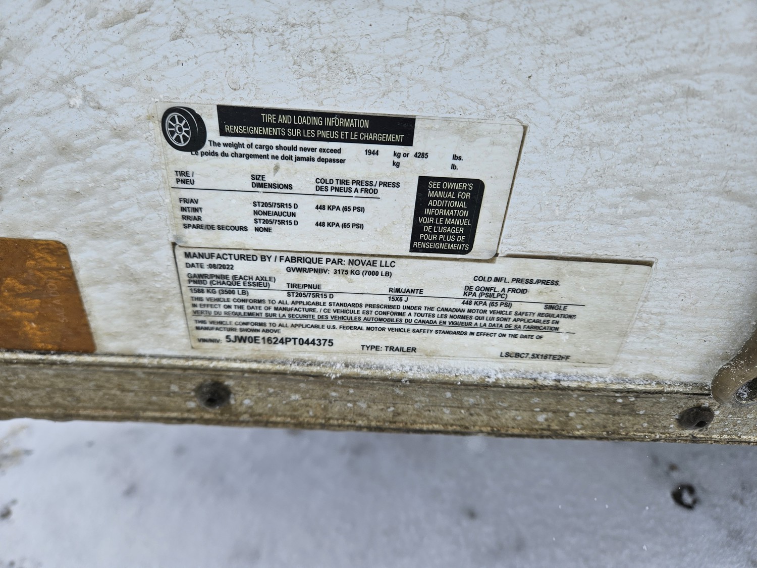 86 inch interior width, ball hitch, side door, fold down door, spring suspension, 3500 lb axles, 225/75R15 tires