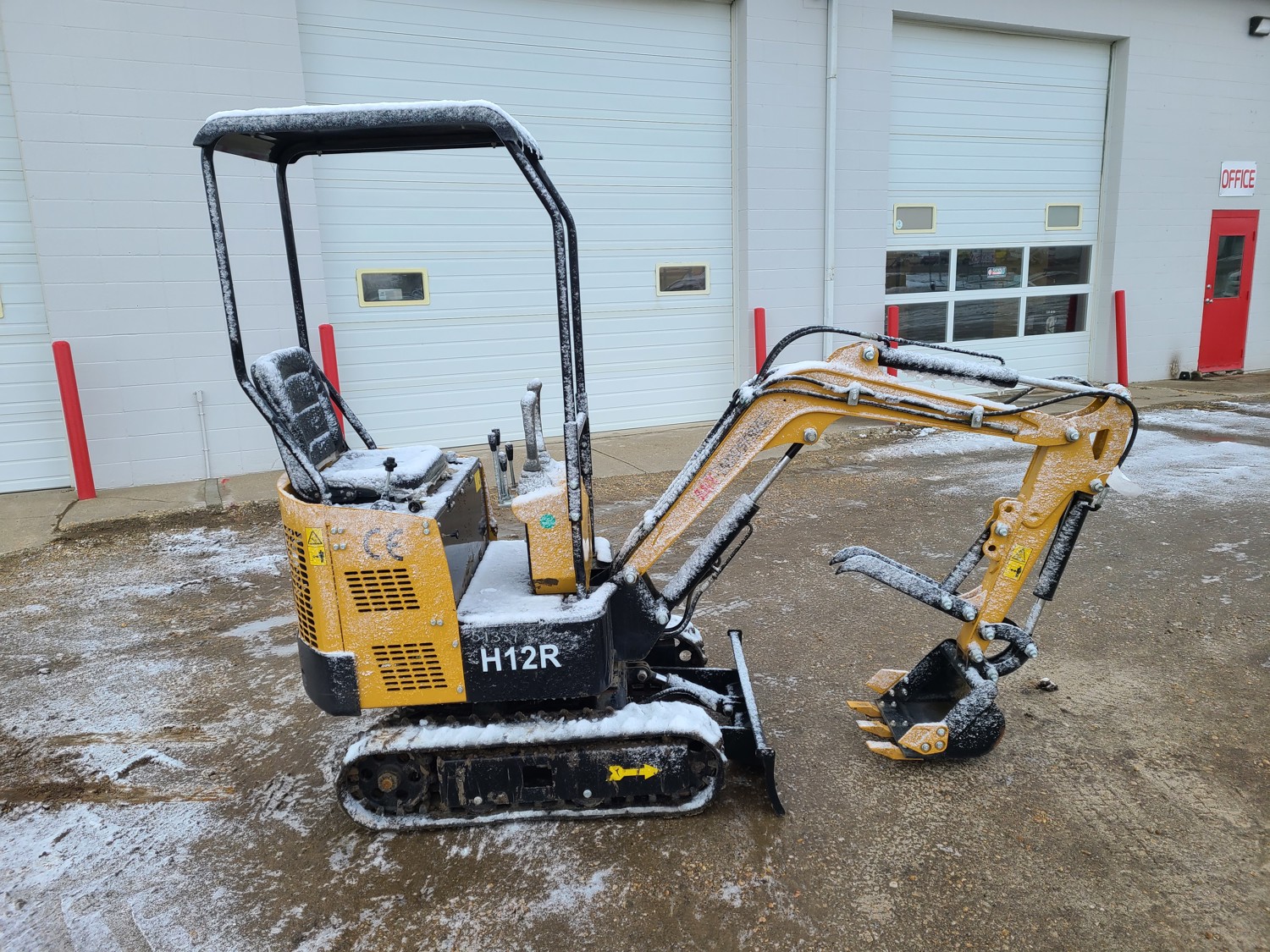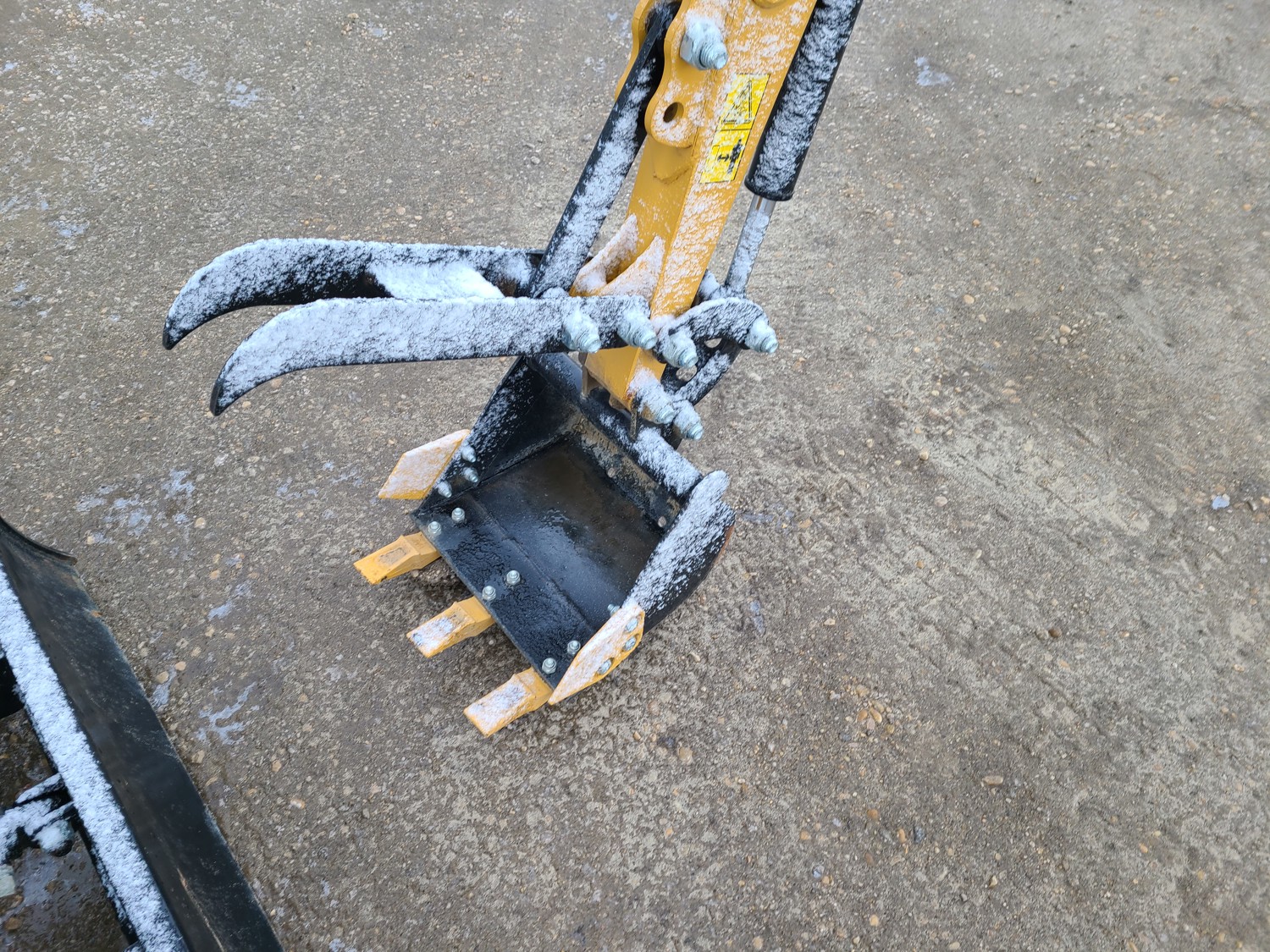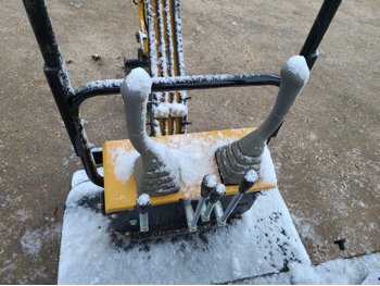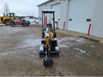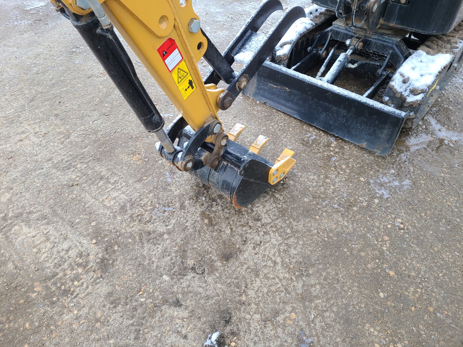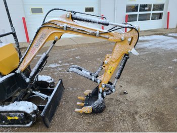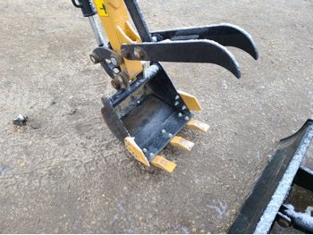 Open station, gas engine, 14 inch bucket, manual coupler, manual thumb, backfill blade, 7 inch rubber tracks