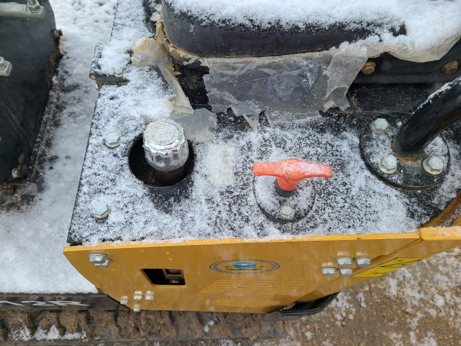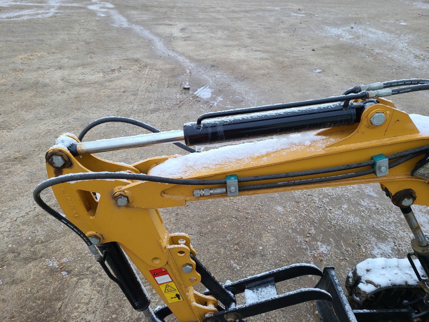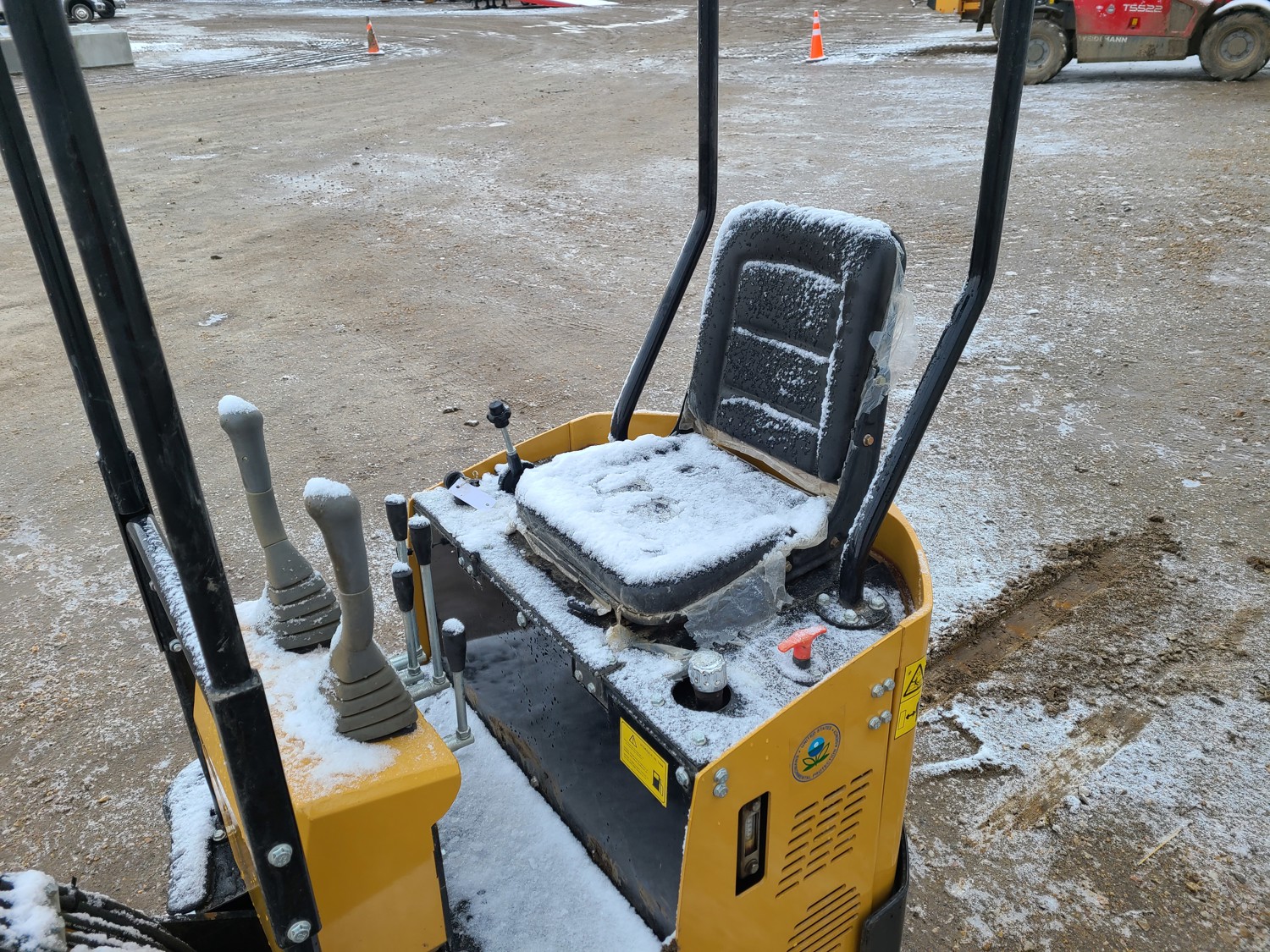 Open station, gas engine, 14 inch bucket, manual coupler, manual thumb, backfill blade, 7 inch rubber tracks