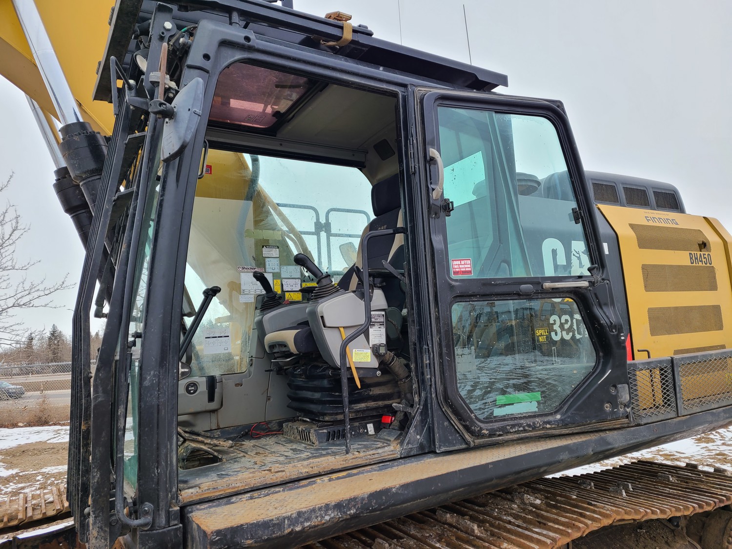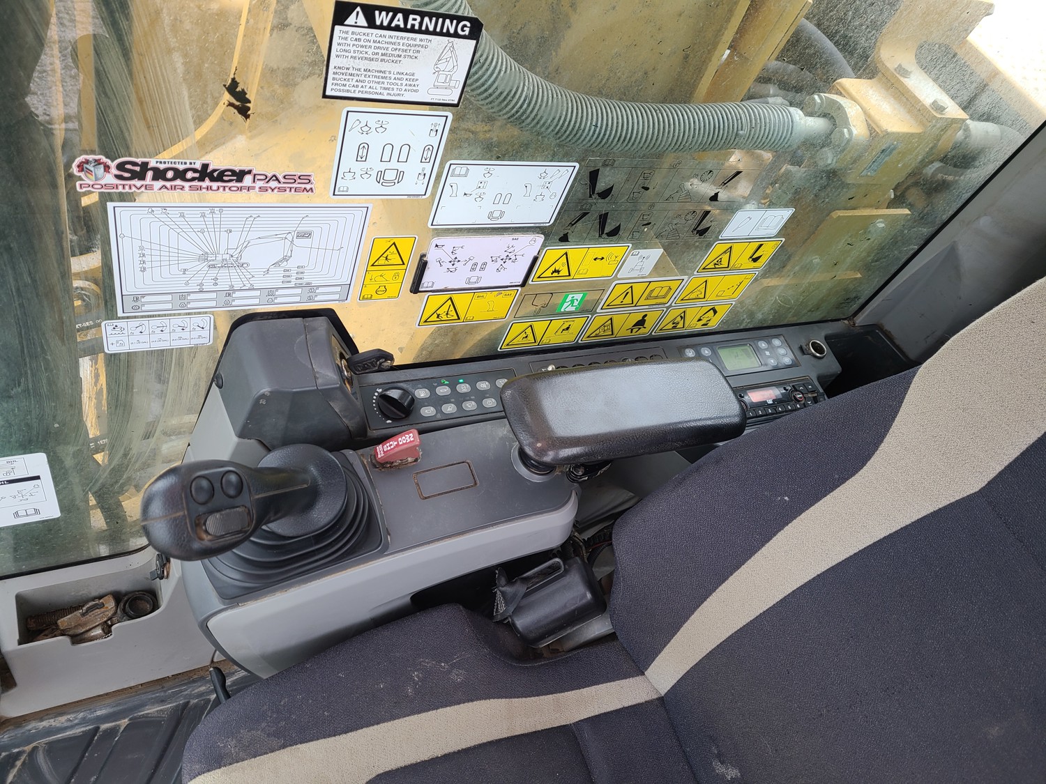 Enclosed cab, A/C, air ride seat, rear view cameras, 42 inch cleanup bucket, 25 Ft 7 inch stick, 32 inch track pads