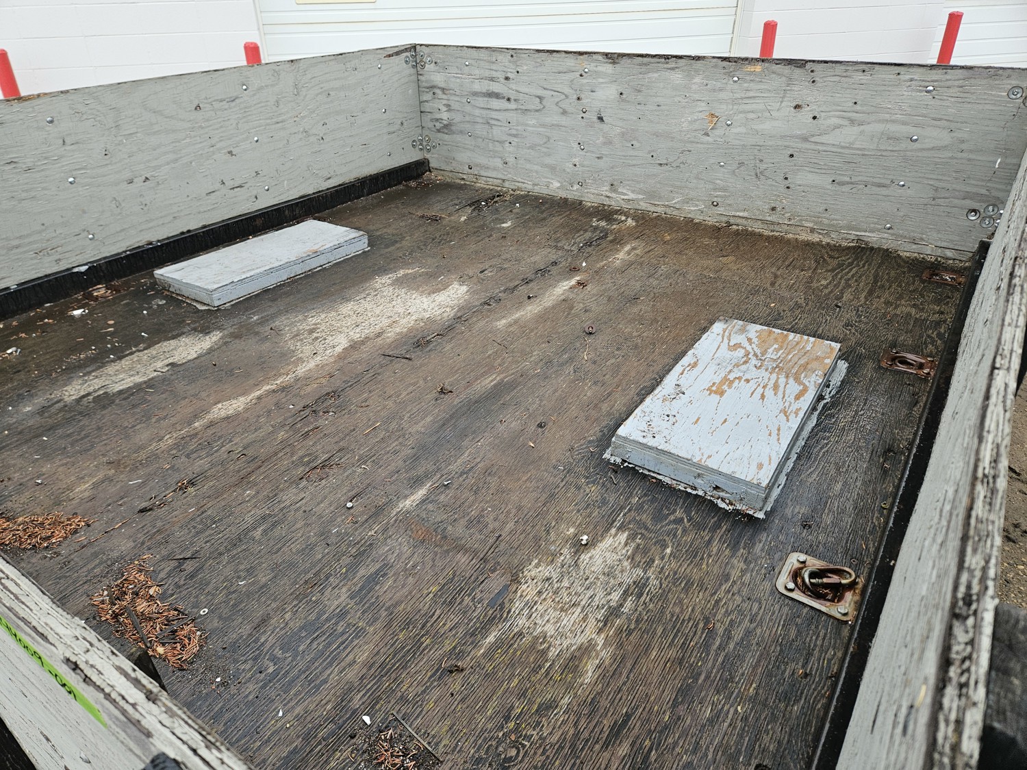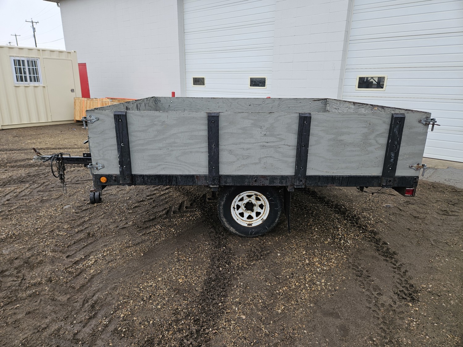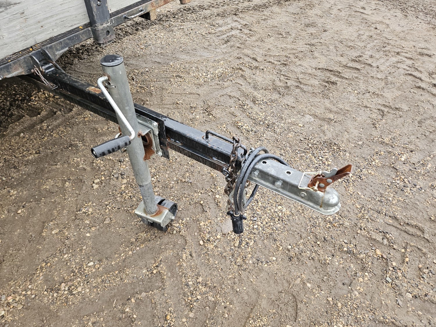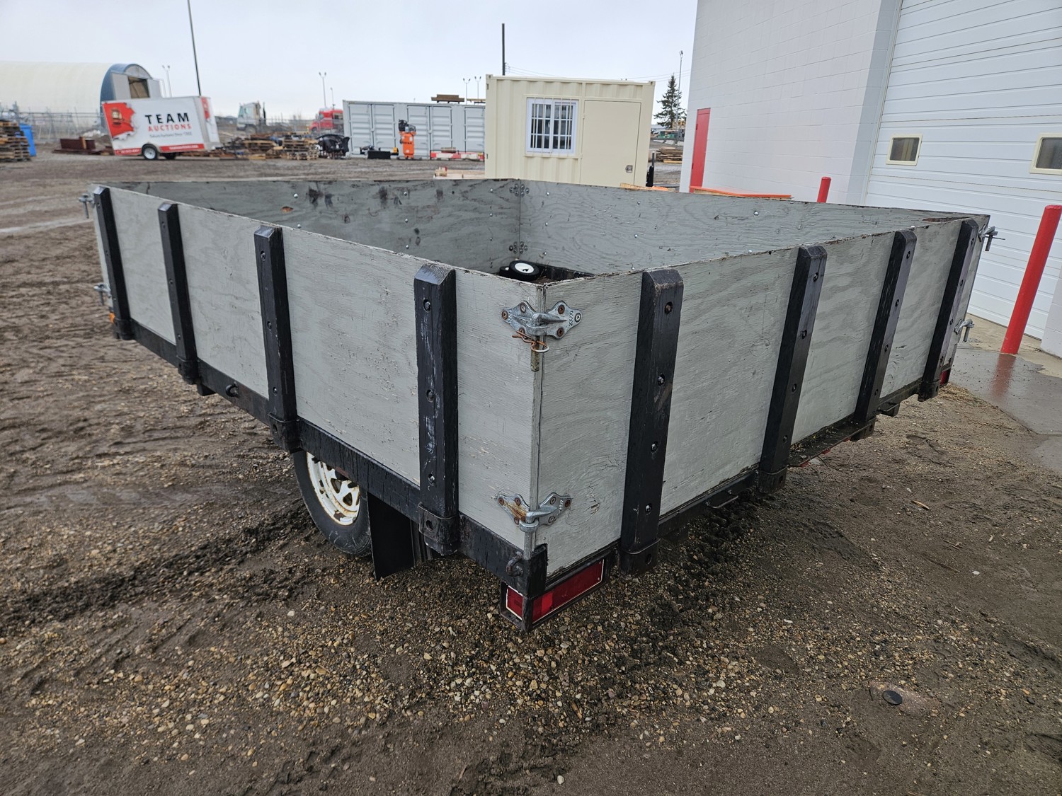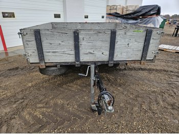 101 inch wide deck, 9 ft tilt deck, wood deck, spring suspension, ball hitch, stake pockets, 21" wooded box sides, 205/75R14 tires