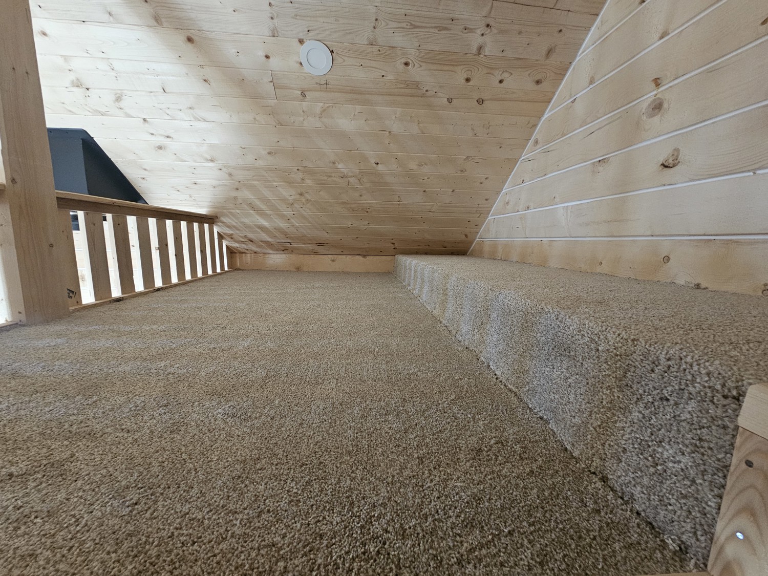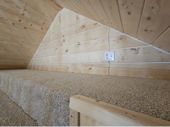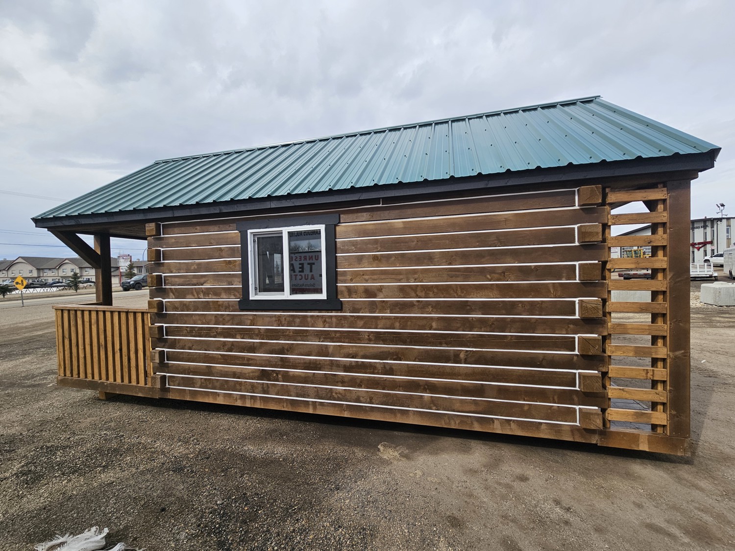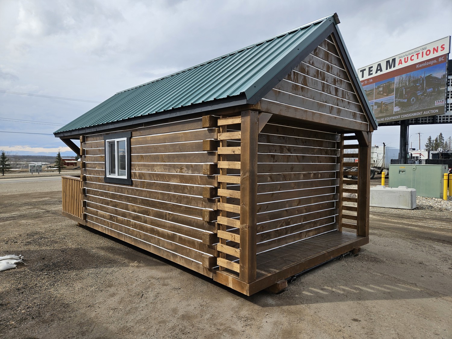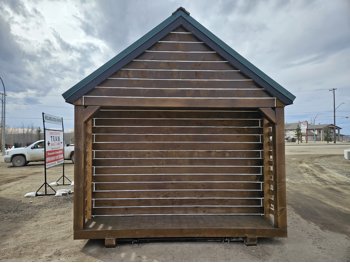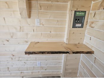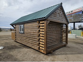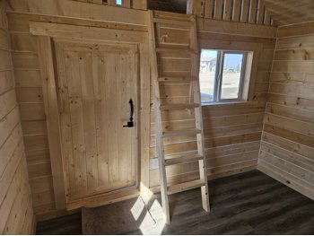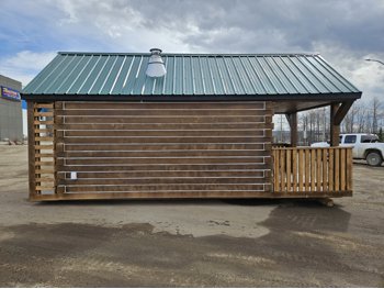 12 ft x 24 ft, dual lofts, tin roof, fully wired, receptacles, LED lighting, fan, plumbed for fireplace, front porch, lockable front door, on skids